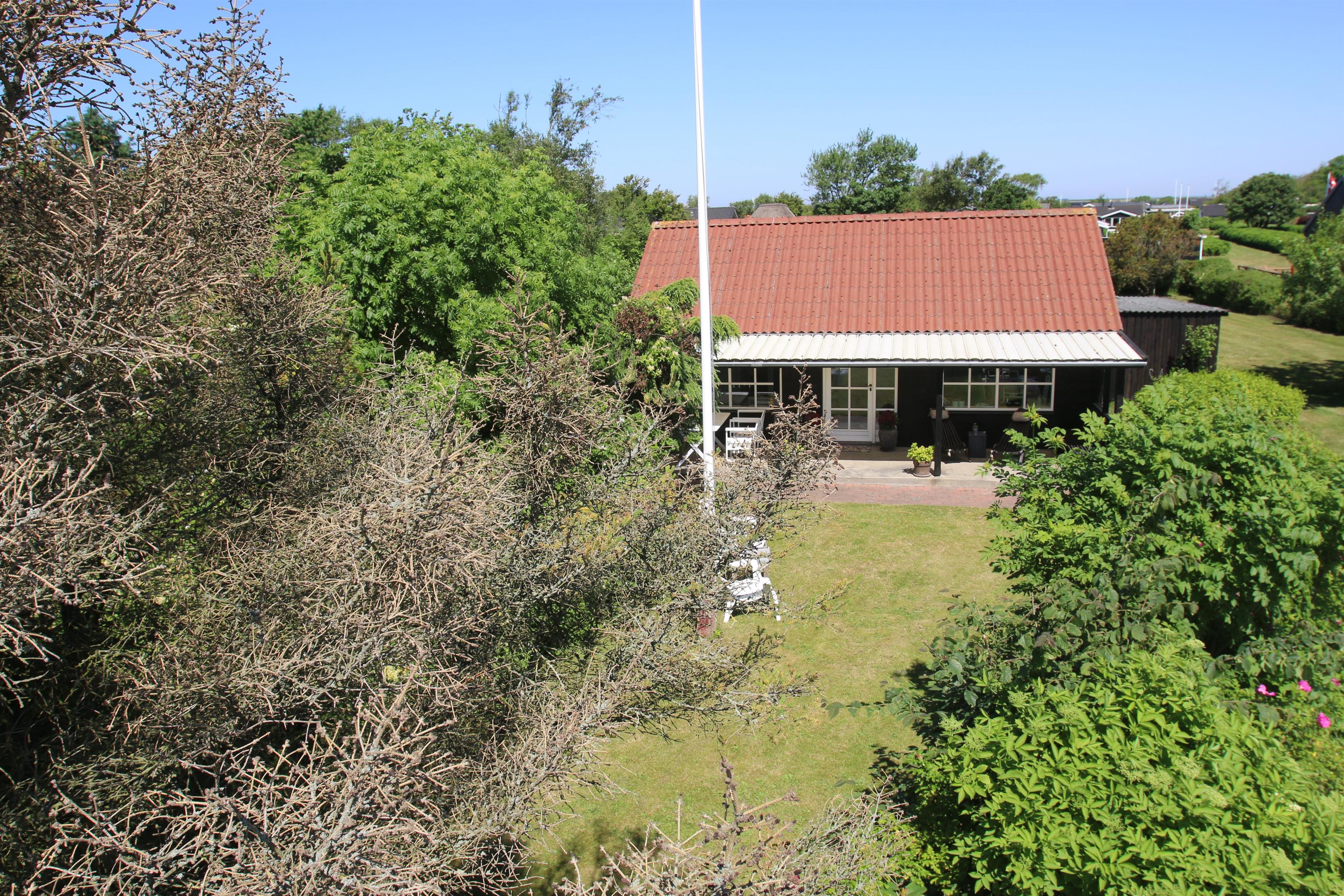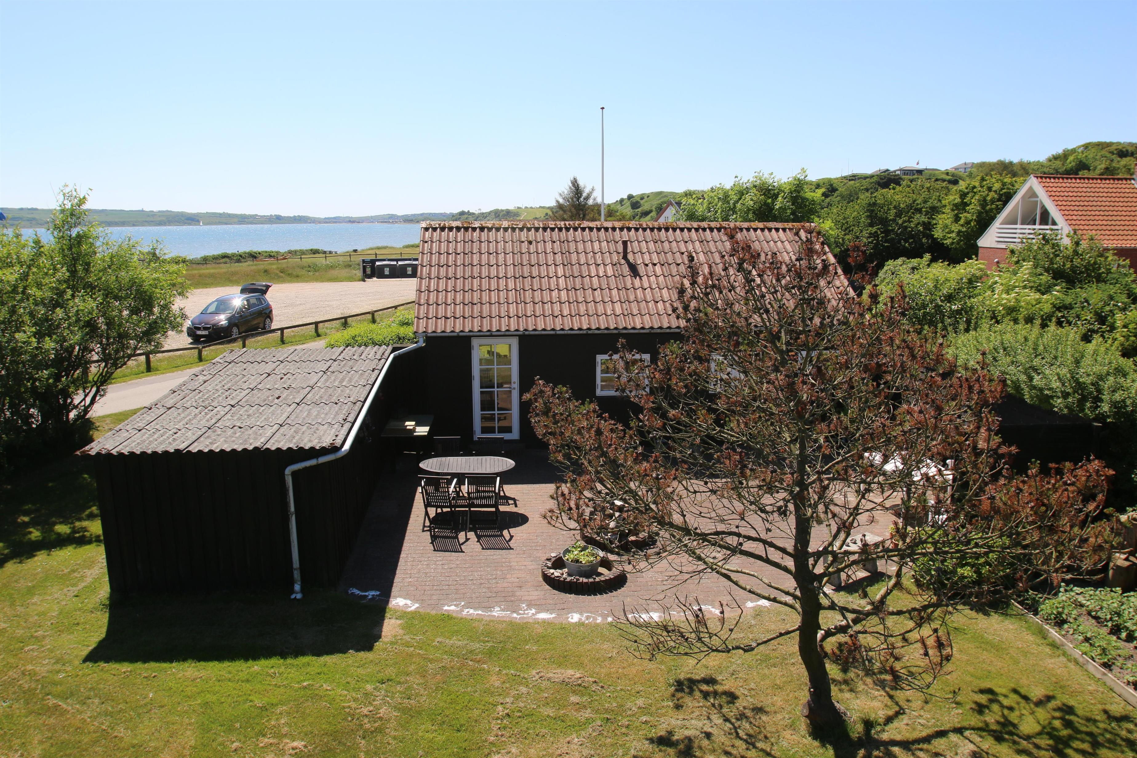 Efter at have parkeret bilen på P-pladsen overfor huset, tager en delvis overdækket terrasse imod. En fantastisk lukket have samt udsigt til Limfjorden, gør huset til noget helt særligt. Fra både terrasse og opholdsstue er der en fantastisk udsigt. På den 1.419 m2 store, velholdte grund er det altid muligt at finde en plads i solen. Masser af havemøbler. Solstole og havemøbler kan flyttes rundt på grunden efter behag. Beliggende i et roligt feriehusområde.Fra huset er der ca 20 meter til en ladeplads til el-biler. Der findes også et dejligt stisystem, hvor der er mulighed for nogle gode traveture tæt ved vandet. Der er kun fire km til Lemvig by, som er en livlig handelsby med mange butikker, fiskerestaurant, museum mm.