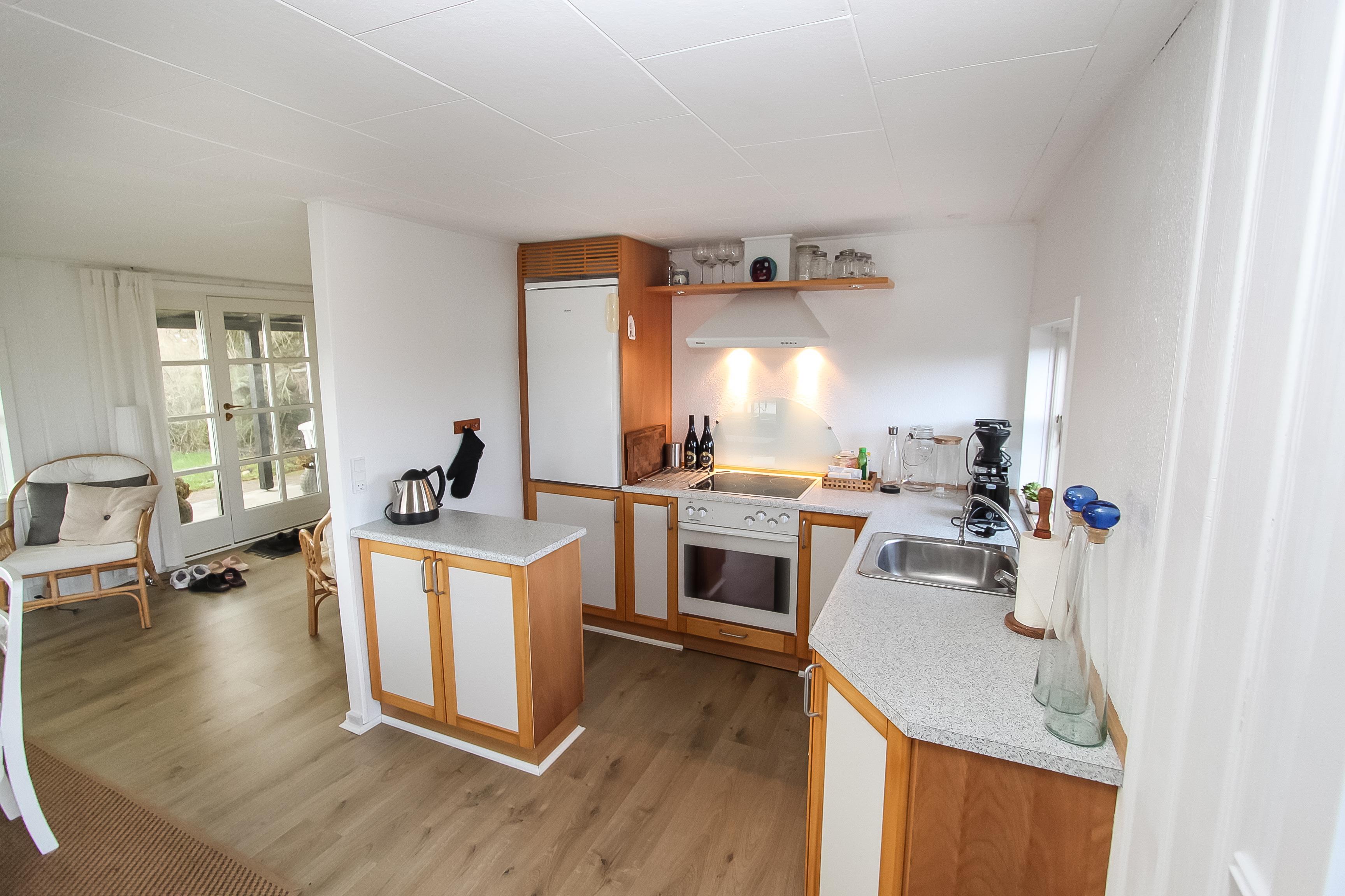 Skønt lille feriehus på ca. 49 m2. Huset er hyggeligt indrettet med bl.a. pæne polstermøbler og praktiske trægulve i hele huset. 1 soveværelse (1DS). Opholdsstue med TV (danske og tyske kanaler), DVD-afspiller, bluetooth højtaler til streaming af musik og radiokanaler. Hyggeligt køkkenhjørne med keramiske kogeplader, emhætte, indbygningsovn og køleskab med fryseboks. Fra den kombinerede stue og køkkenhjørne kan den flotte udsigt til vandet nydes. Lille badeværelse med toilet, bruser og håndvask. Rygning er ikke tilladt i huset. Husdyr ikke tilladt. Et rigtigt sommerhus som er utroligt hyggeligt, overskueligt og helt fantastisk beliggende.