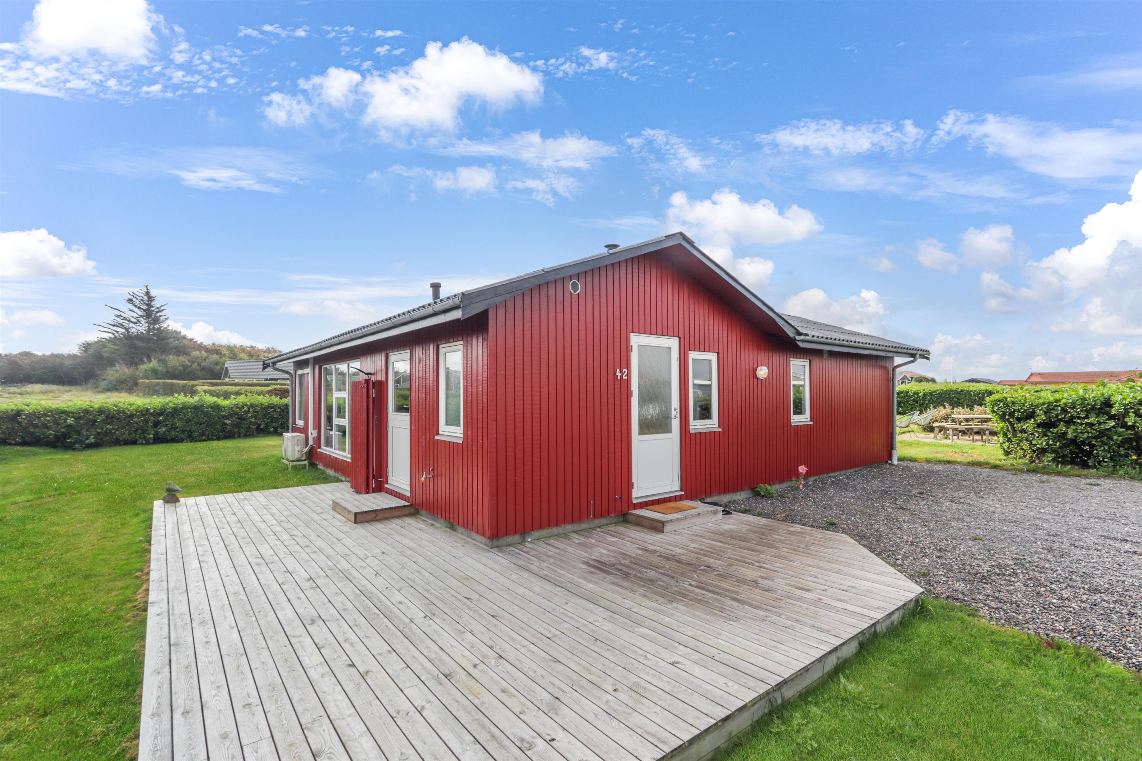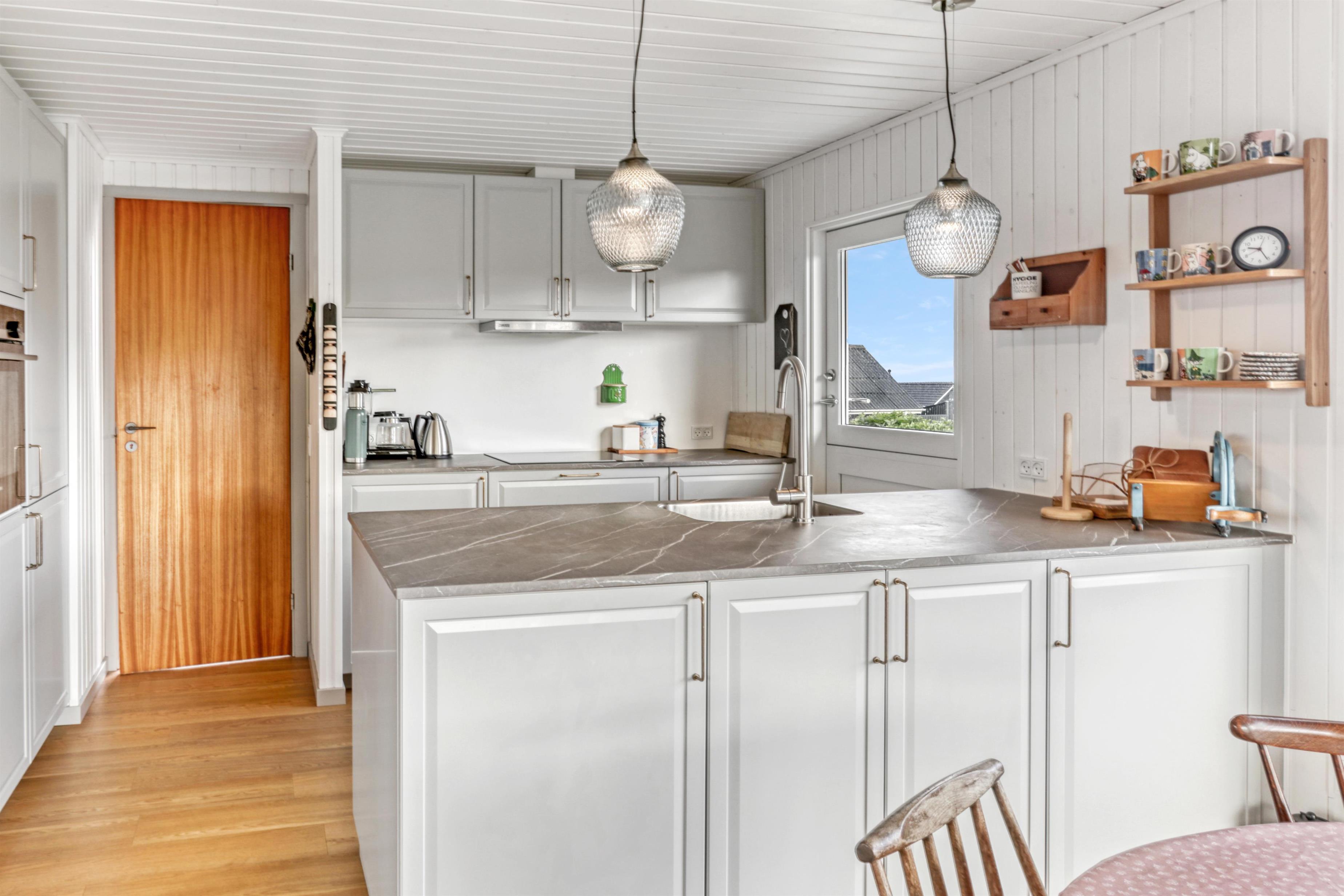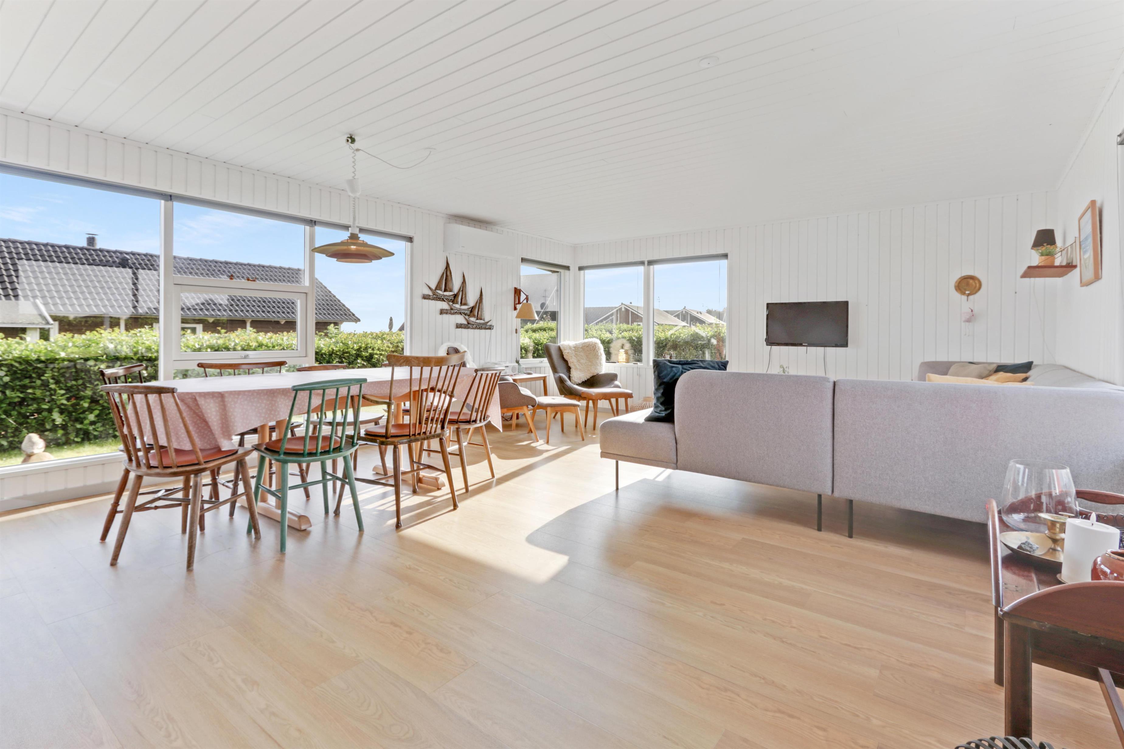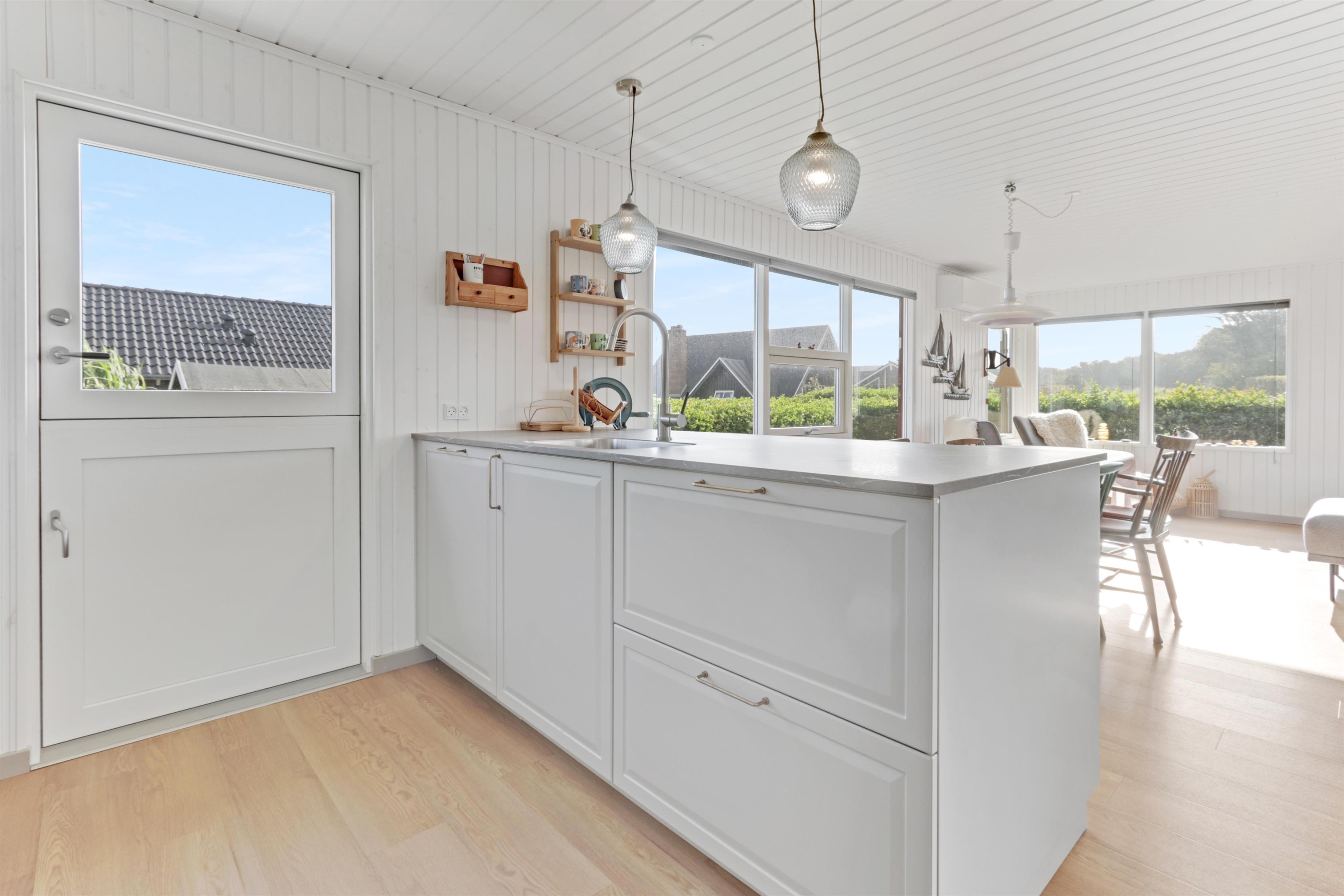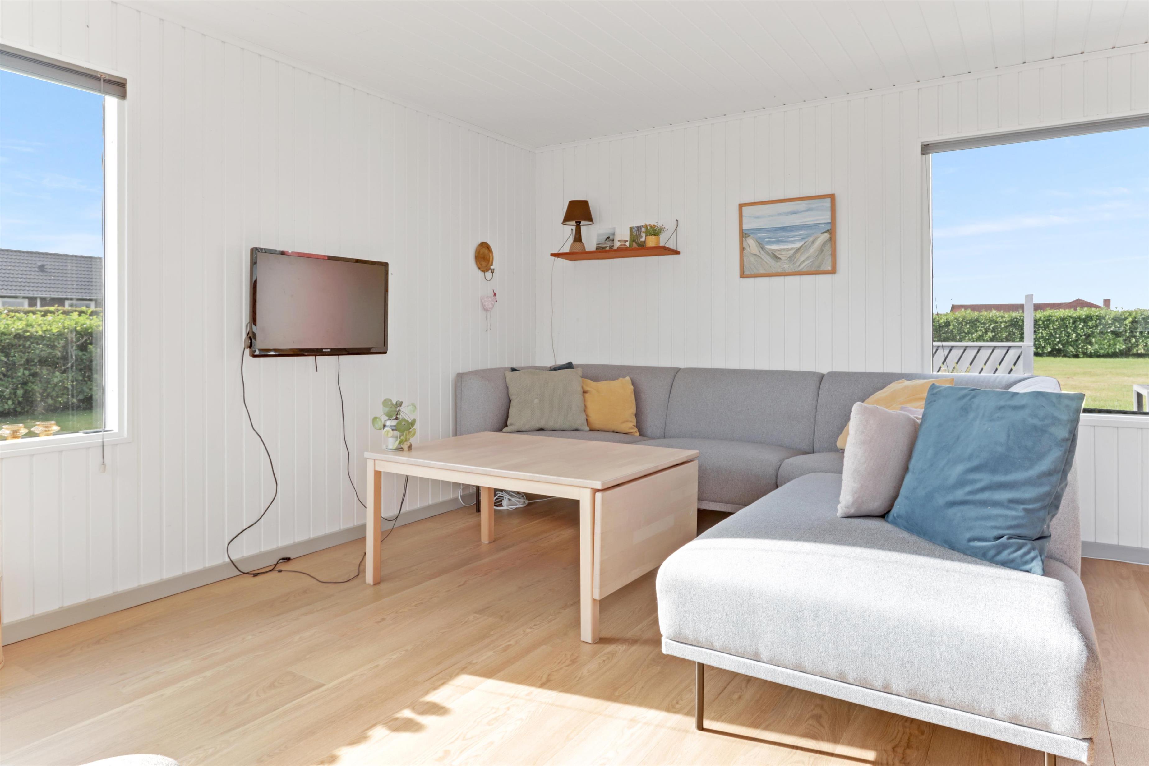 Dejligt feriehus på 73 m2 med 3 gode soverum (1DS, 1DS, 2KS). En lille entré byder velkommen. Kombineret opholdsstue og køkkenhjørne som er moderniseret i 2022. Det flotte køkkenhjørne er lyst og venligt og har alt i hårde hvidevarer: Glaskeramiske kogeplader, indbygningsovn, køleskab med fryseboks og opvaskemaskine. Opholdsstuen med gode polstermøbler, spisebord, TV kun med Chromecast og HDMI -stik, som giver mulighed for streamings tjenester. Så har du en mobiltelefon eller et andet device med kan du streame hvad du har abonnement til. Der er kun mulighed for at se TV via det tilsluttede Chromecast. Der er også CD / Radio. Ny, lækker brændeovn som sammen med varmepumpen hjælper med at reducere udgiften til varmeregningen. Praktiske hårde gulve i opholdsstue og køkkenhjørne. Lille badeværelse med bruser, toilet og håndvask. Husdyr er ikke tilladt. Ikke-ryger hus.