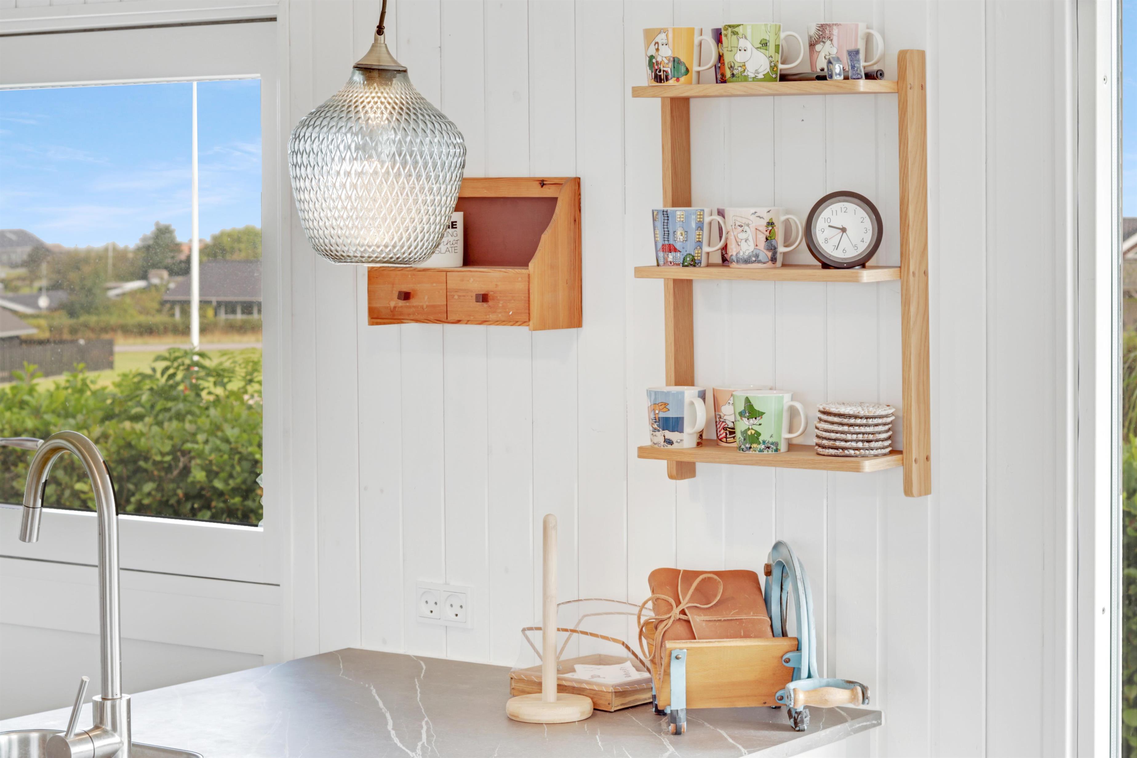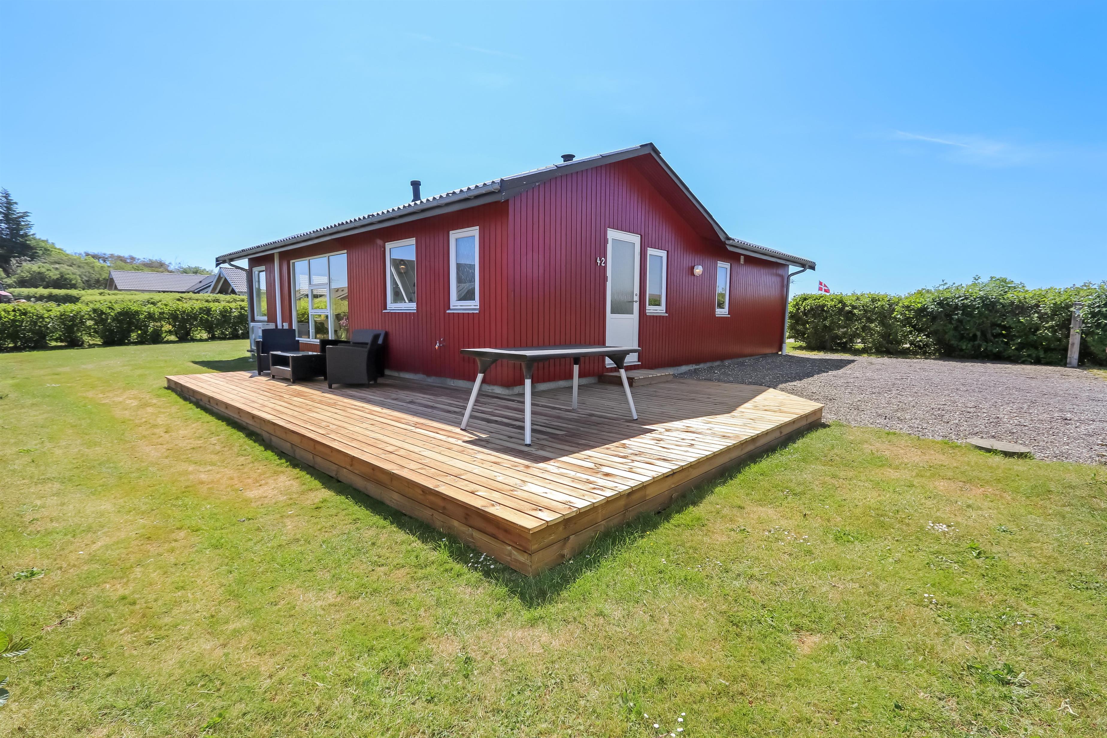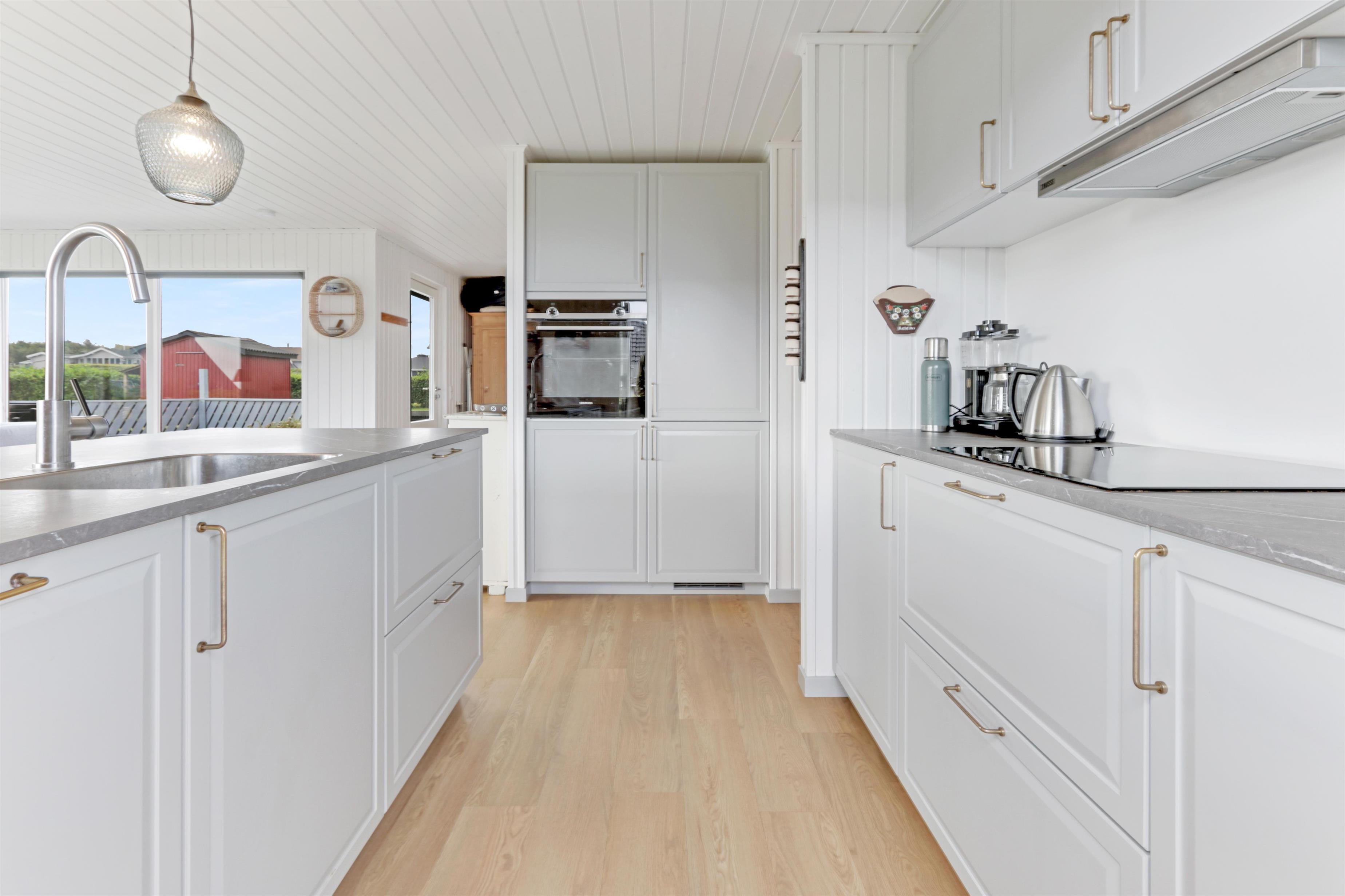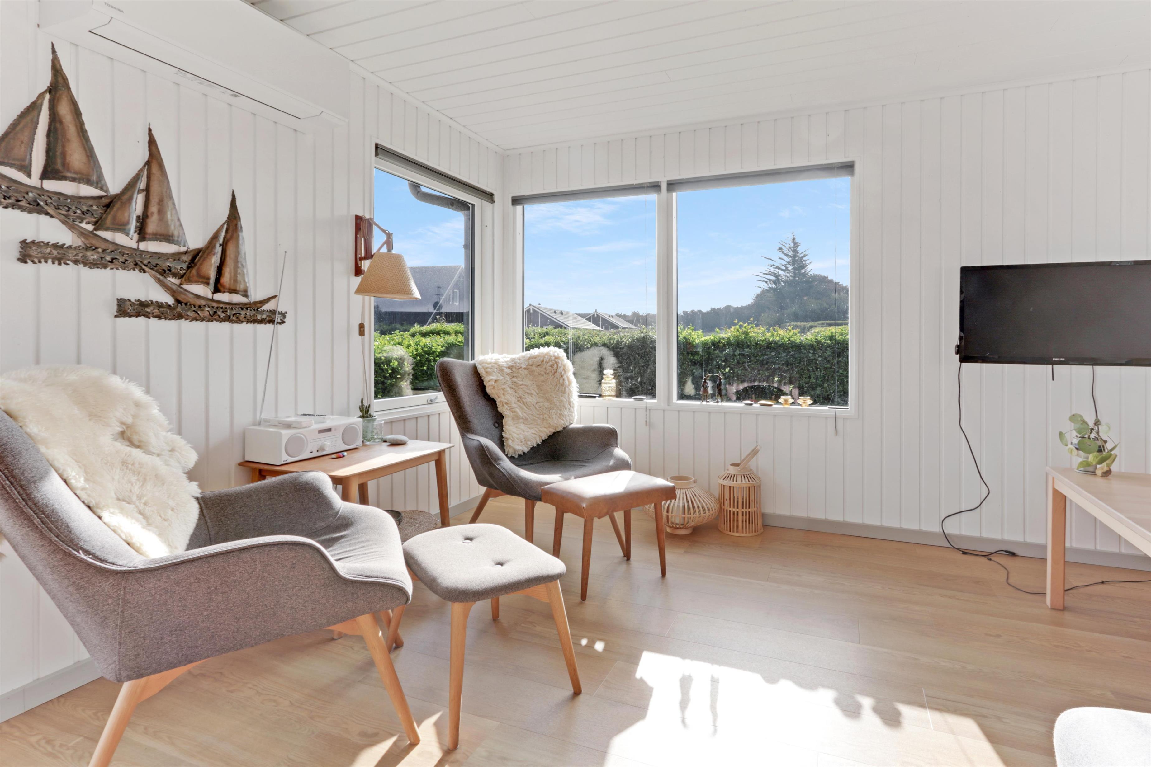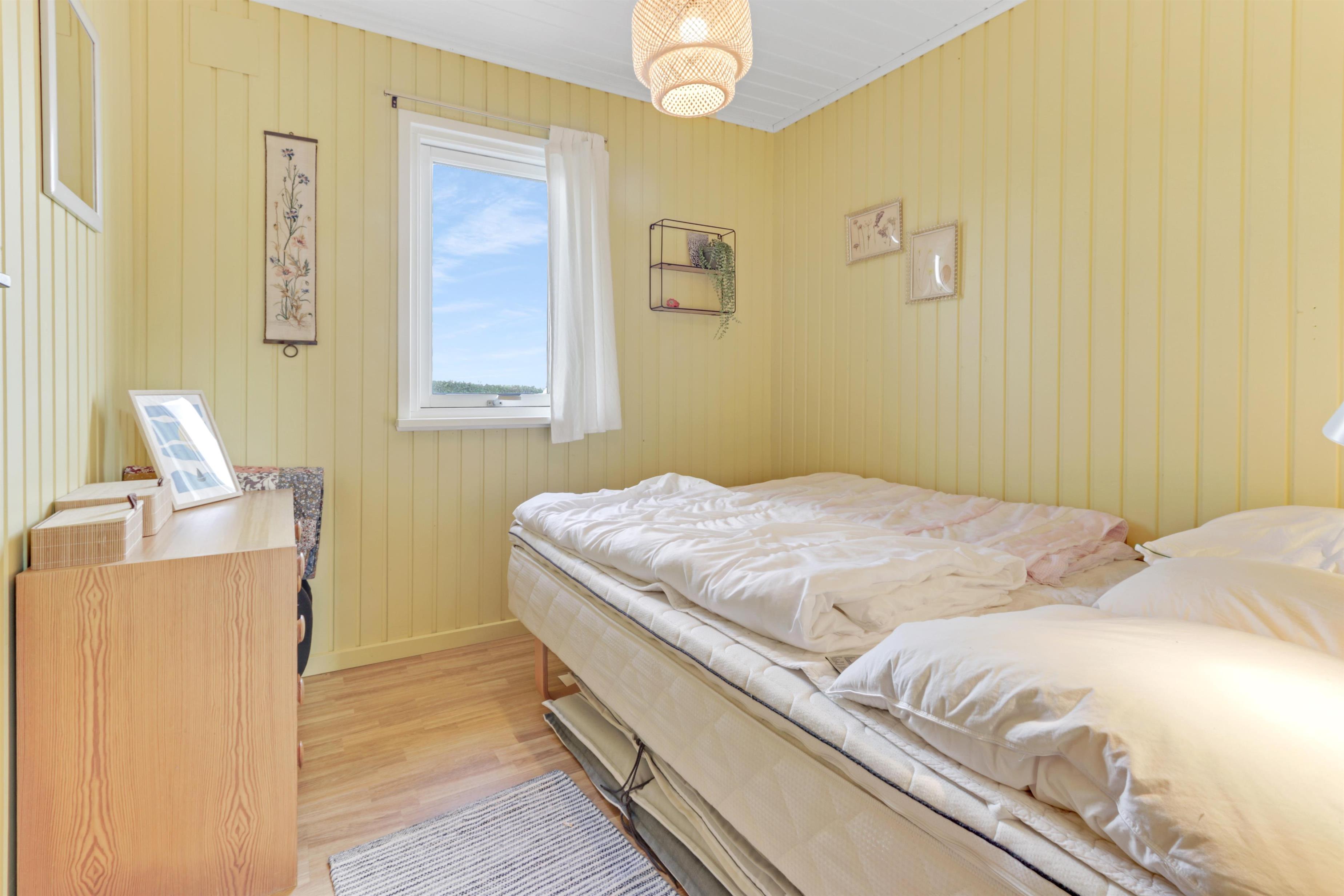 Dejligt feriehus på 73 m2 med 3 gode soverum (1DS, 1DS, 2KS). En lille entré byder velkommen. Kombineret opholdsstue og køkkenhjørne som er moderniseret i 2022. Det flotte køkkenhjørne er lyst og venligt og har alt i hårde hvidevarer: Glaskeramiske kogeplader, indbygningsovn, køleskab med fryseboks og opvaskemaskine. Opholdsstuen med gode polstermøbler, spisebord, TV kun med Chromecast og HDMI -stik, som giver mulighed for streamings tjenester. Så har du en mobiltelefon eller et andet device med kan du streame hvad du har abonnement til. Der er kun mulighed for at se TV via det tilsluttede Chromecast. Der er også CD / Radio. Ny, lækker brændeovn som sammen med varmepumpen hjælper med at reducere udgiften til varmeregningen. Praktiske hårde gulve i opholdsstue og køkkenhjørne. Lille badeværelse med bruser, toilet og håndvask. Husdyr er ikke tilladt. Ikke-ryger hus.