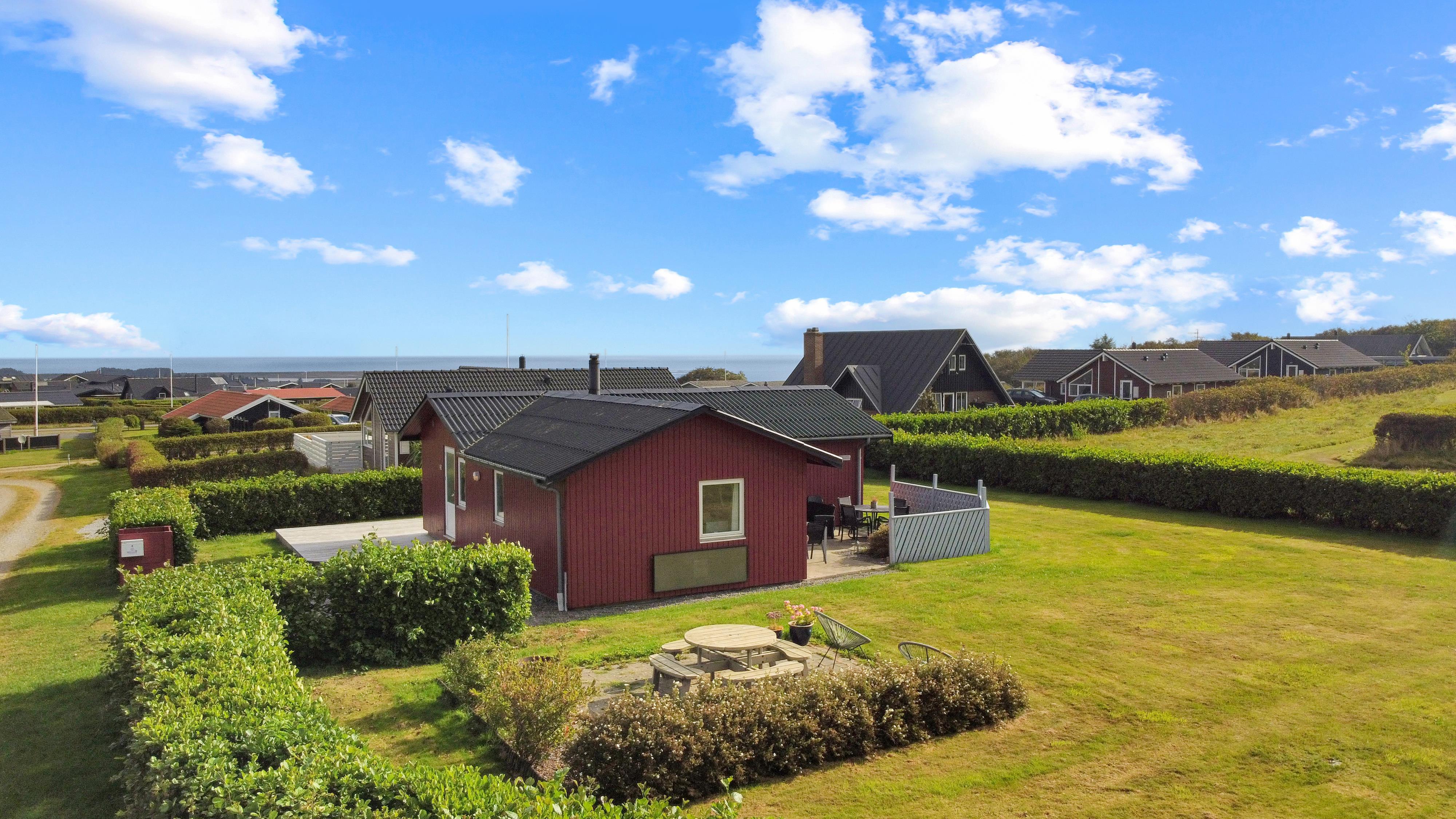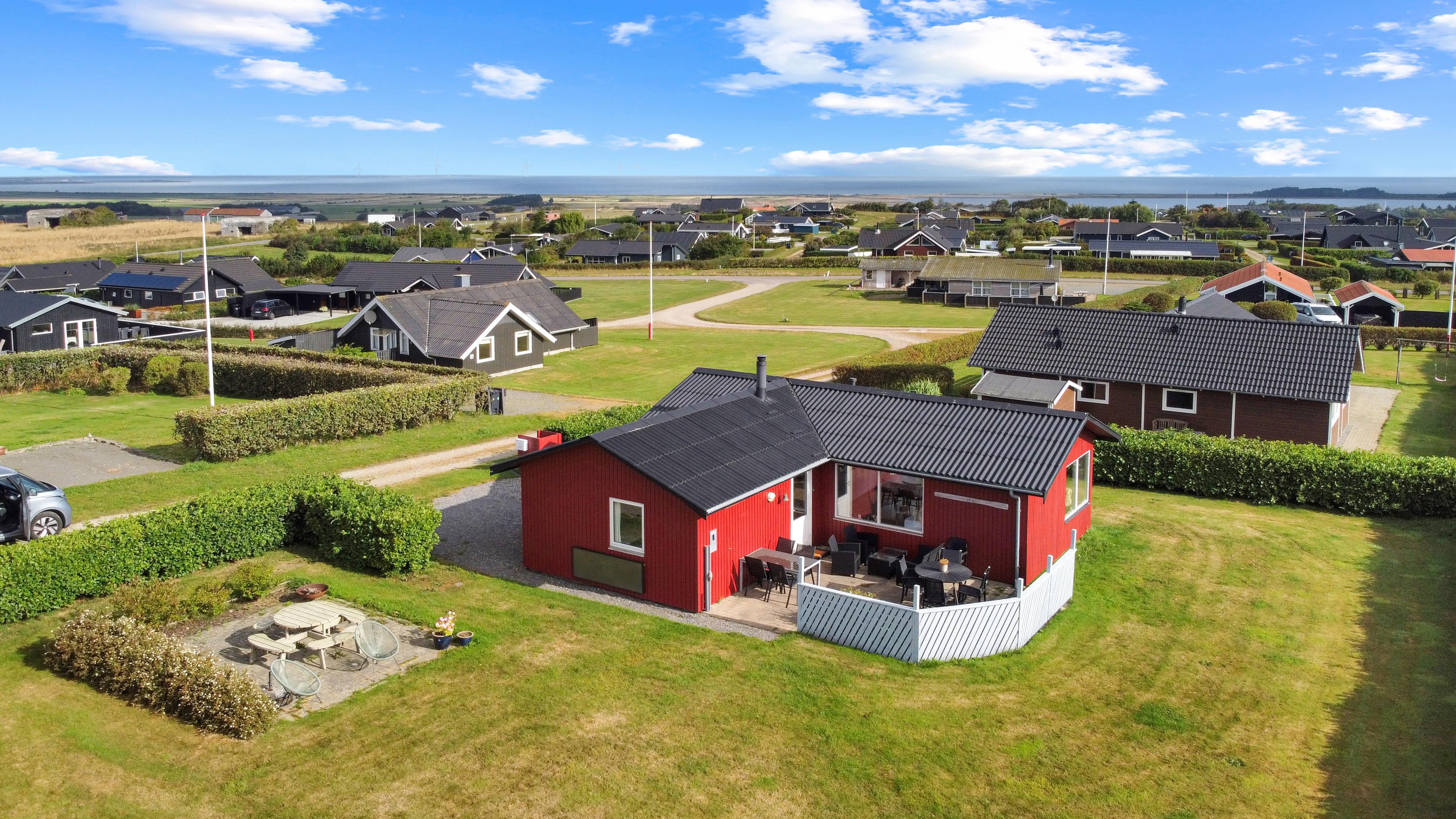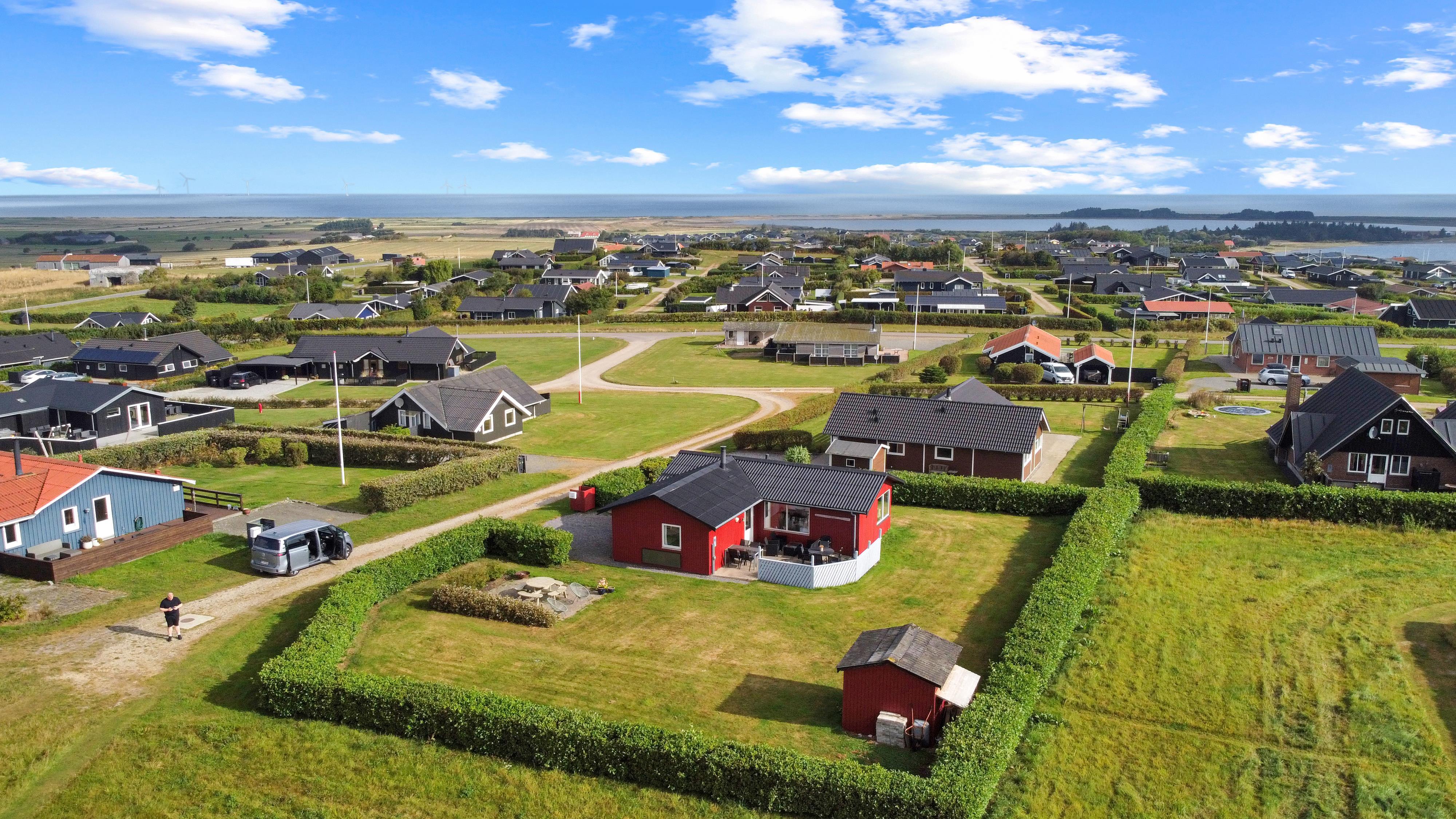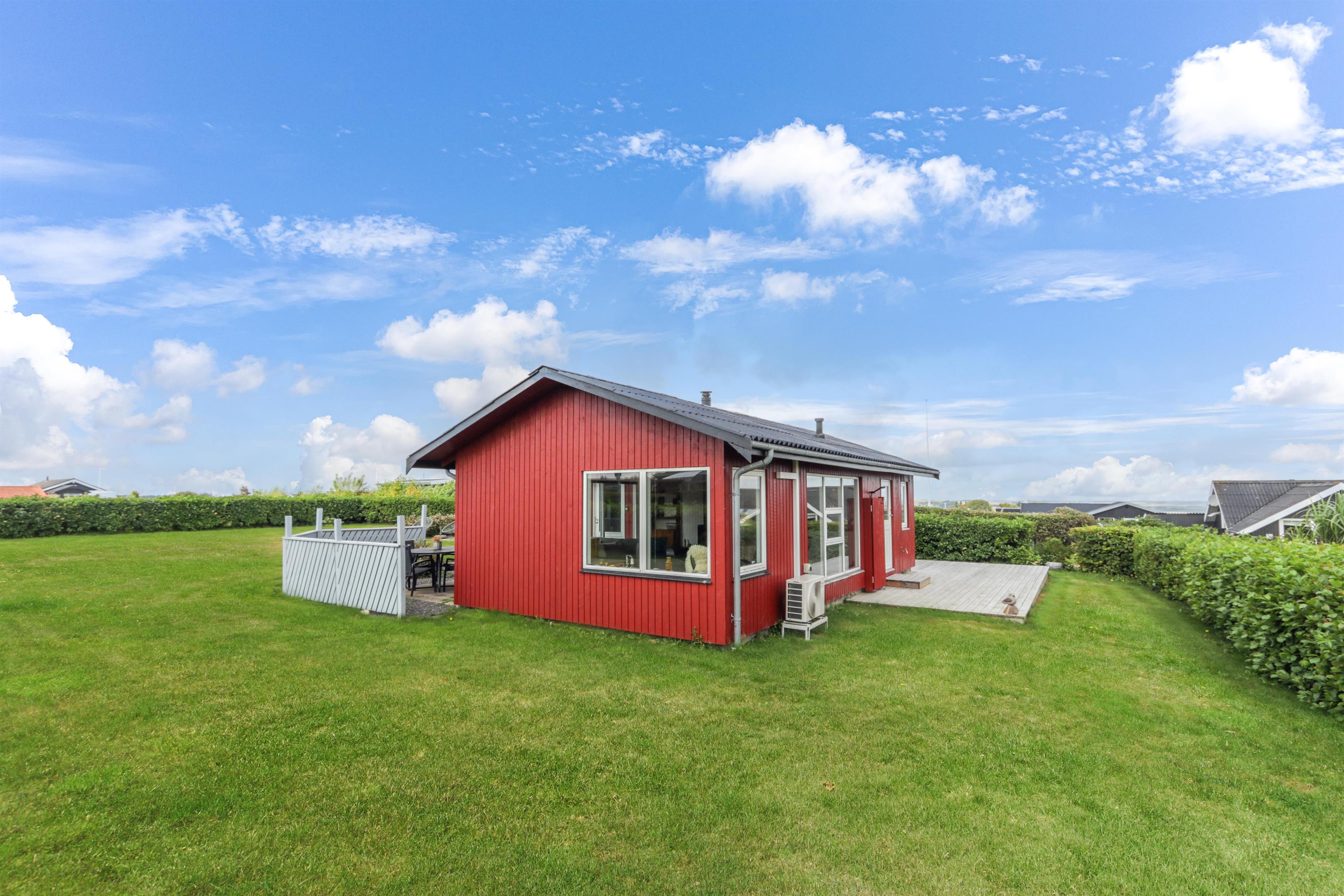 Beliggende på en ca. 895 m2 stor, velholdt grund for enden af en blind vej og ved sien af en ikke bebygget nabogrund. Der er flot udsigt over landskabet med Limfjorden i baggrunden. Dejlig indhegnet terrasse / gårdhave med havemøbler, solsenge og grill På den anden side af huset er er en nyanlagt terrasse med loungesæt samt udsigt til landskabet / Limfjorden. Fra huset findes der er dejligt stisystem som fører direkte ned til vandet på få minutter. Ca. 400 m fra huset ligger den nye flotte naturlegeplads i træ med fodboldbane og rutsjebane. Der er kun fire km til Lemvig, som er en livlig handelsby med mange butikker, fiskerestaurant, museum m.m. Tager man bilen er en tur til Thyborøn en oplevelse i sig selv og klares på 20 min. Her er der flere forskellige aktiviteter som fiskeriauktion, Sea War Museum eller besøg det spændende Jyllandsakvarie, hvor børnene kan se og røre ved fisk og krabber, eller besøg det helt unikke Sneglehus. Dagen sluttes af med is i hånden, mens at I går tur langs havnekajen og ser på alle fiskekutterne.
