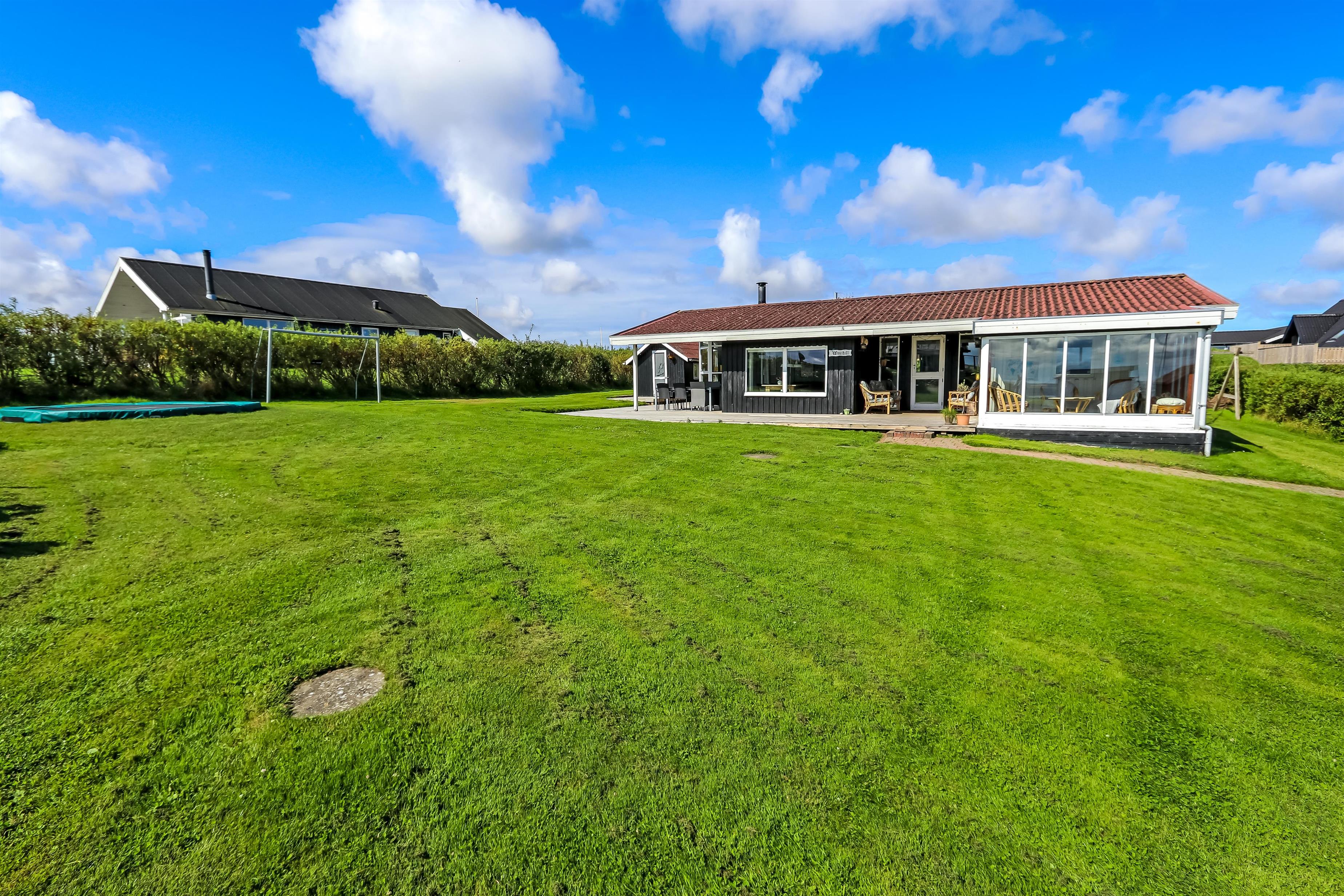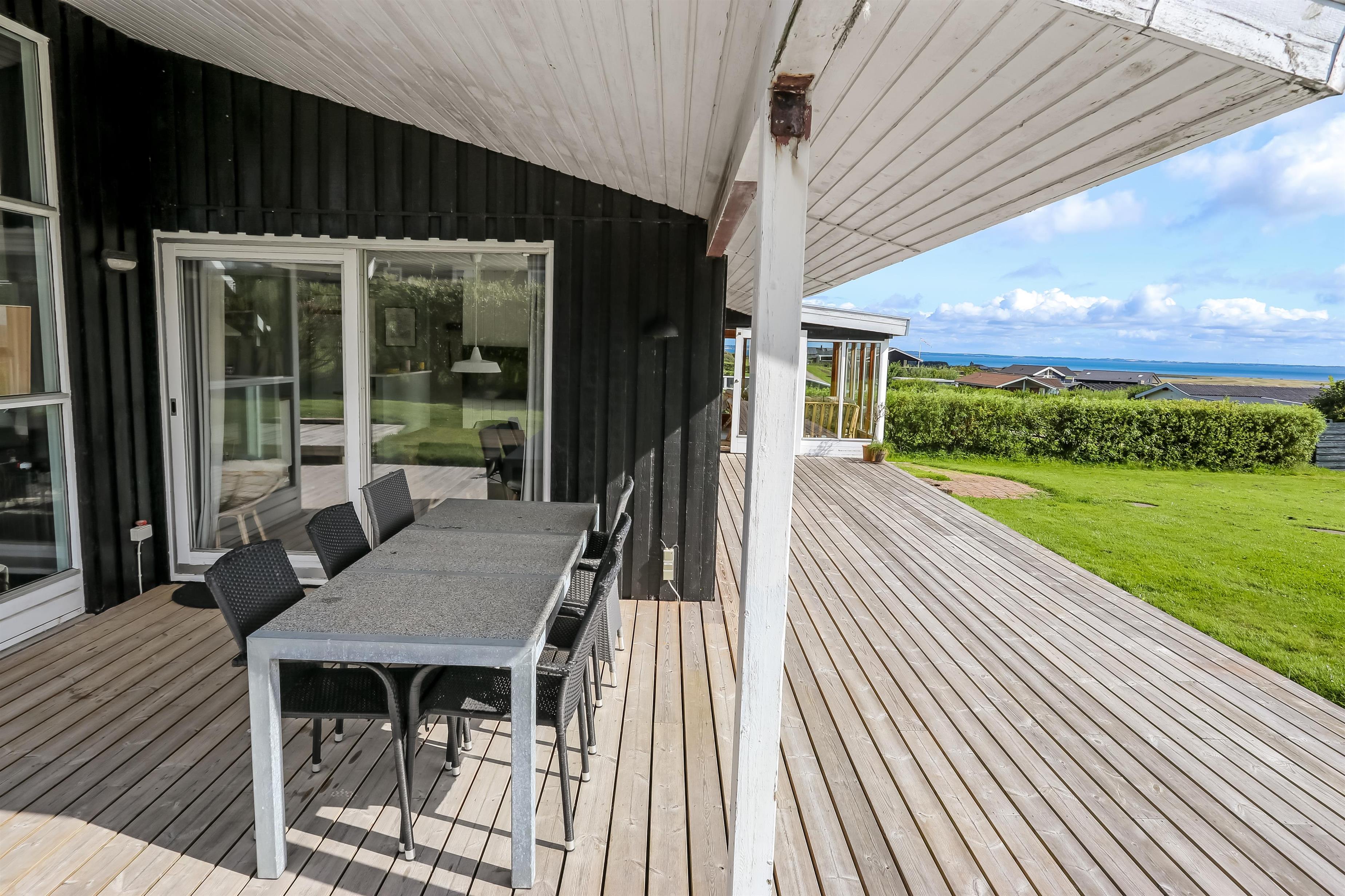 Huset ligger på en ca. 820 m2 stor grund. Fantastisk, delvist overdækket og nyanlagt terrasseanlæg med havemøbler, grill og liggestole. Her kan der altid findes en plads i solen. Havemøbler, solvogn og grill kan flyttes rundt på terrassen efter behag. Fra terrassen er der adgang til en pragtfuld udestue med kurvemøbler og kig til Limfjorden. Også på bagsiden af huset er der en dejlig, delvis overdækket træterrasse med havemøbler og udsigt over landskabet. Højt, ugeneret beliggende på en rolig stikvej. Velholdt grund med trampolin og kun 300 m fra Limfjorden. Fra huset findes der stisystemer, som på få minutter fører direkte ned til fjord, badestrand og badebroer. Nær ved huset ligger også den nye flotte naturlegeplads i træ med rutsjebaner, gynger og meget andet. Her findes også iskiosk og restaurant, som har åbnet i sæsonen. Der er i øvrigt kun ca. fire km til Lemvig by, som er en livlig handelsby med mange butikker, fiskerestaurant, biograf, skaterbane, museum mm.