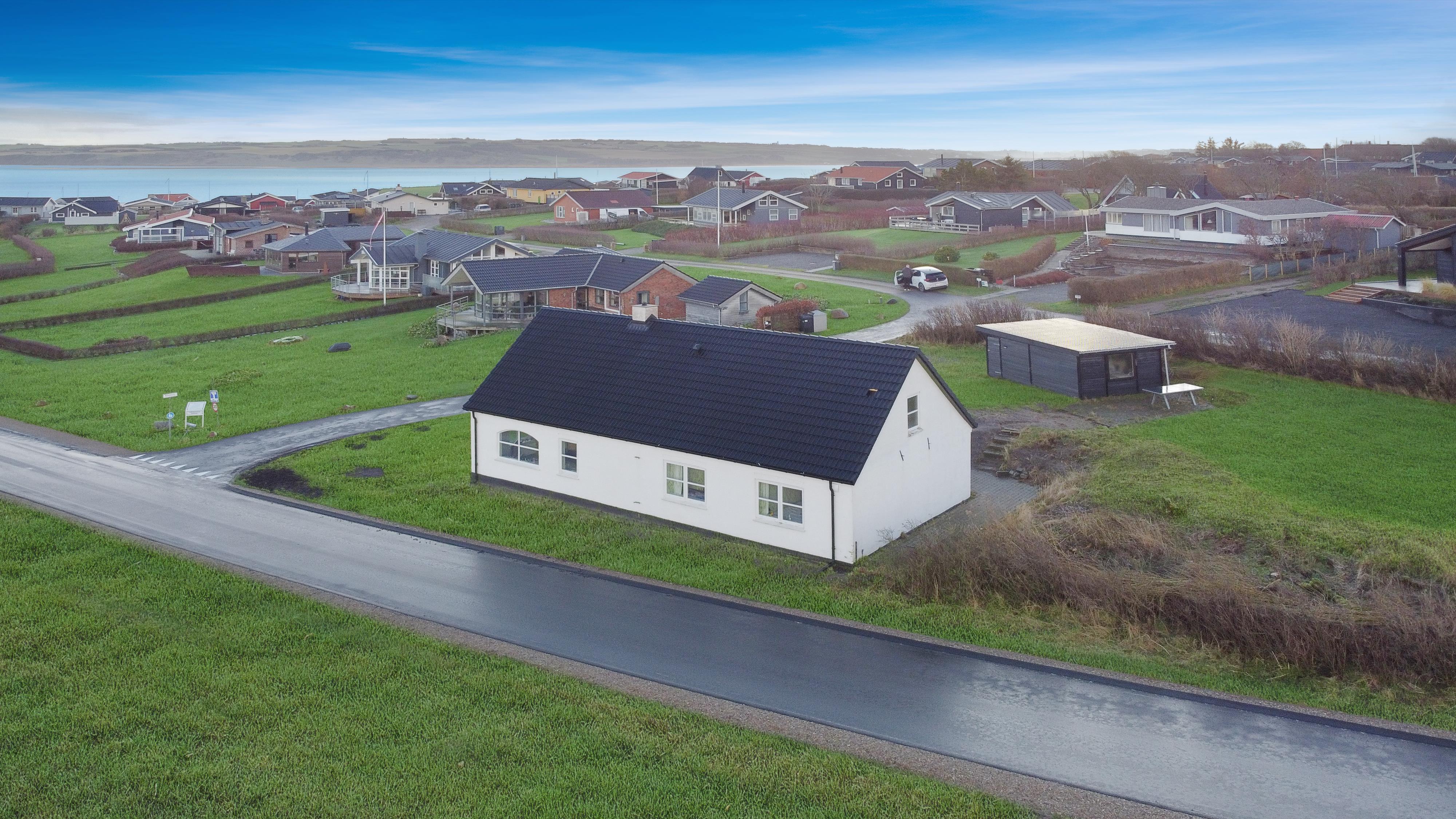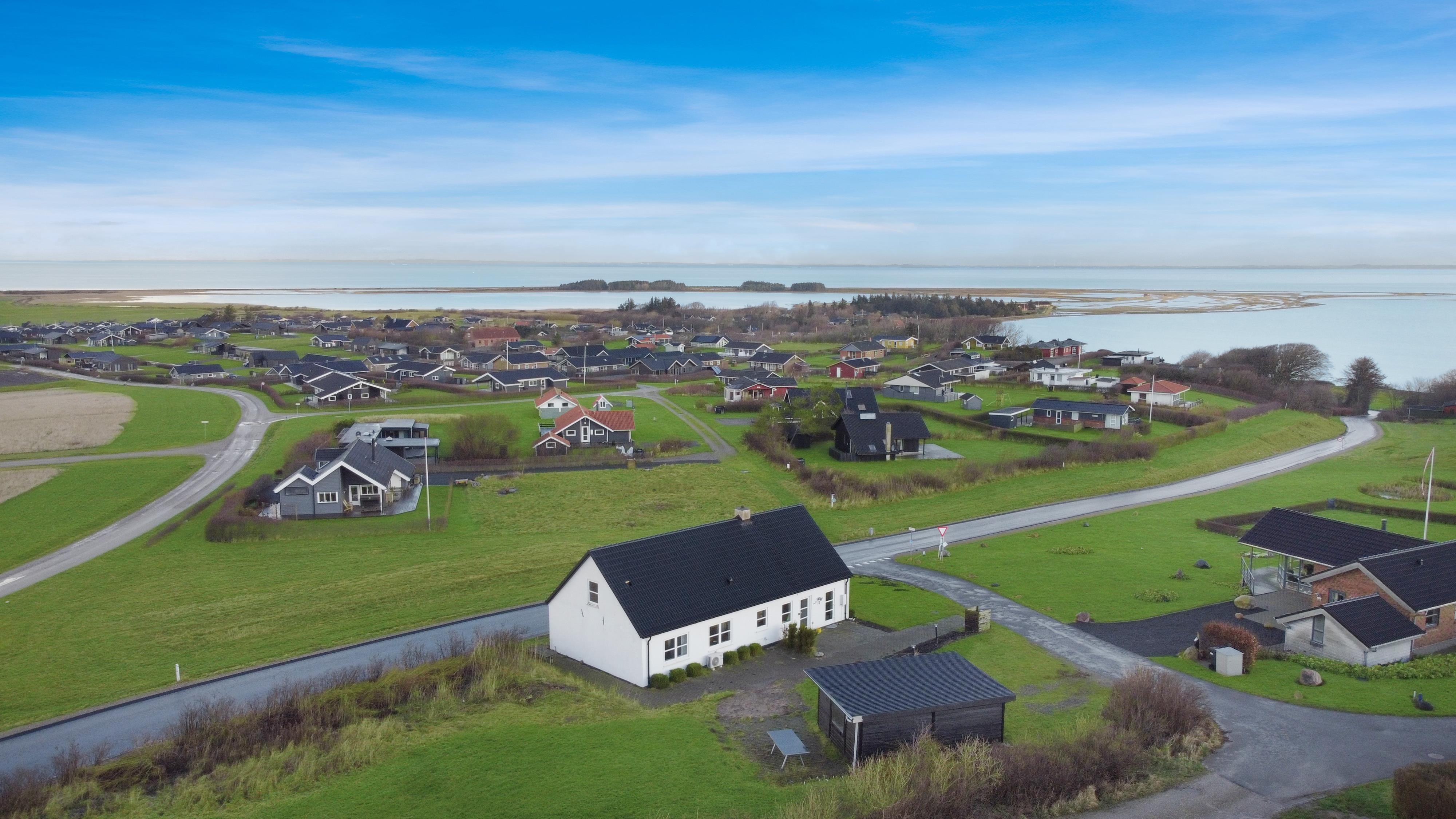 Huset er beliggende på en naturgrund med større træer og buske og med en fantastisk udsigt til Limfjorden. På grunden er der anlagt et par dejlige terrasser med havemøbler, grill og solvogne. Dem kan I flytte rundt på ligesom det passer jer således, er der altid mulighed for, at finde et sted med læ eller en plads i solen, og samtidig sidde og nyde den flotte udsigt til Limfjorden. Huset er beliggende i gåafstand til den dejlige børnevenlige strand på Gjellerodde, desuden er der en naturlegeplads som man frit kan boltre sig på. Huset ligger ikke langt fra Lemvig ca. 3 km. Lemvig er en gammel handelsby, her er der en dejlig havnepromenade med legeplads og i sommersæsonen er pladsen fyldt op som et stort loppemarked hver mandag. Gågaden er hyggelig og har mange gode specialbutikker og flere gode restauranter. Et rigtig flot og hyggeligt hus for en familie eller hvis man er et eller to par som ønsker at holde ferien sammen.