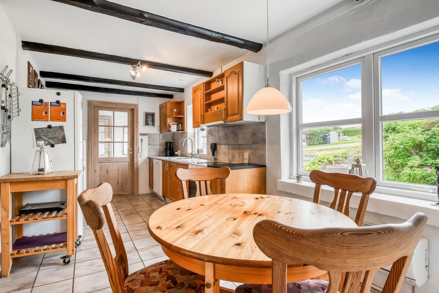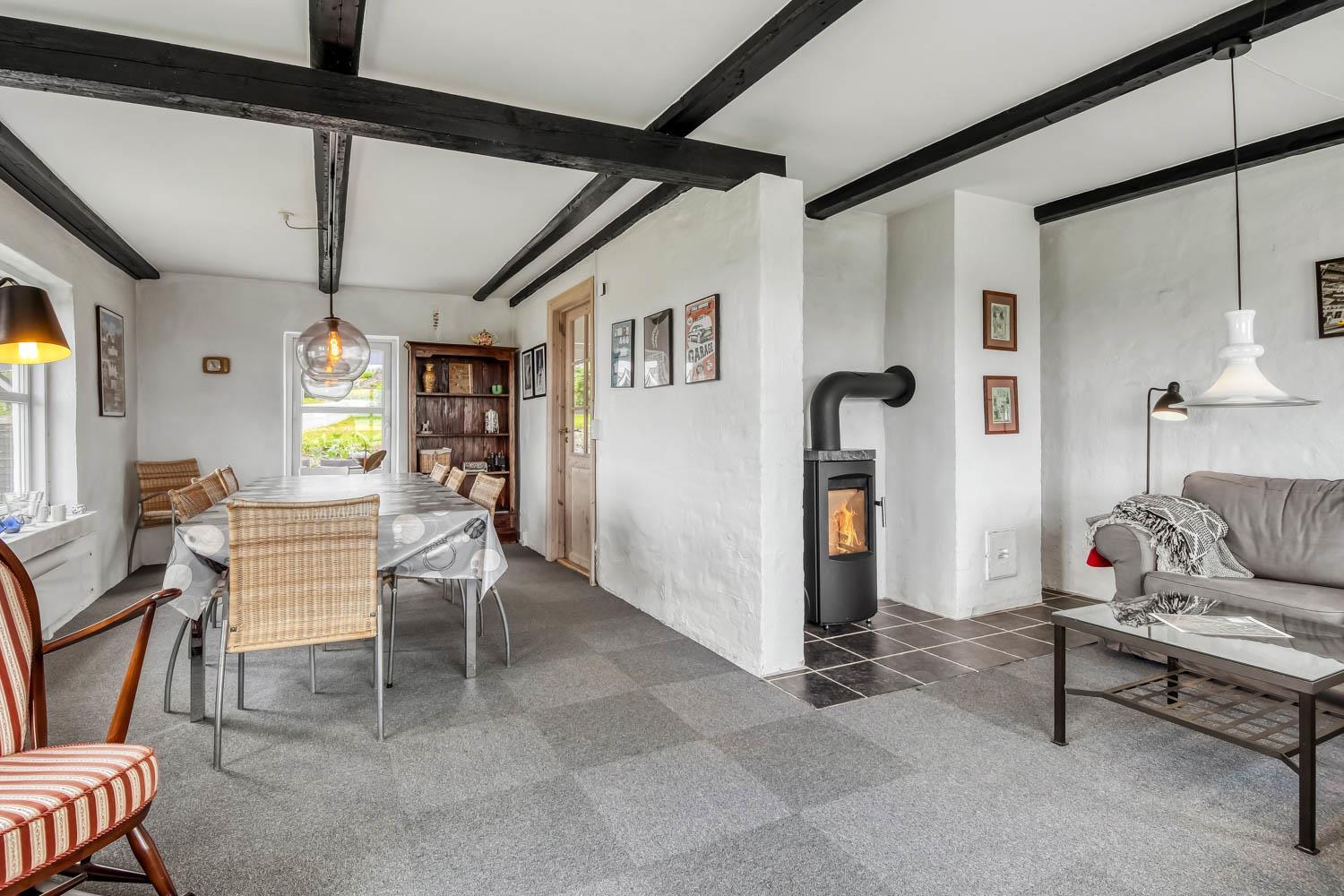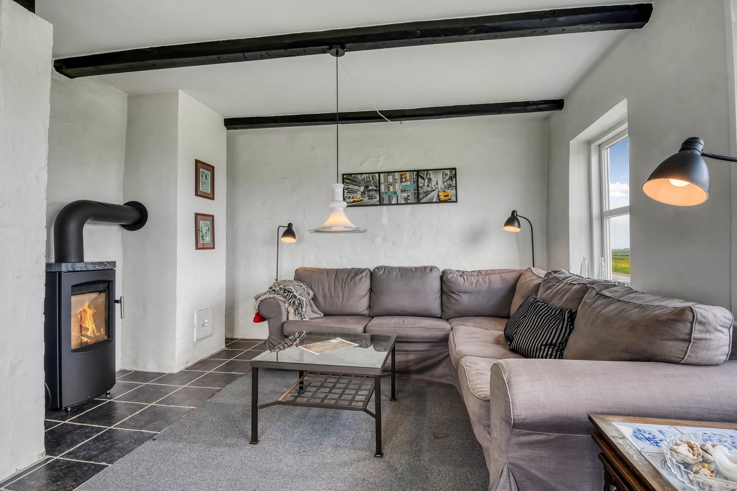 Allerede når I kører ind til huset og parkerer bilen, kan I se den fantastiske beliggenhed huset har. Når I kommer ind i entreen, er der energivenlig vaskemaskine og tørretumbler, desuden er der god aflægge plads. Entreen er fordeler gang, hvorfra kan man komme ind i stuen, som er indrettet med fjernsyn med Chromecast så der kan streames TV / Radio / Apps som I selv har et abonnement til. Huset varmes op af brændeovn og varmepumpe, som giver en behagelig varme også på de kolde vinterdage. Varmepumpen hjælper til at holde elregningen lav. Går man ind ad den modsatte dør i gangen kommer man ind i et dejligt køkken/alrum som er indrettet med glaskeramisk komfur, emhætte, køle-/fryseskab, opvaskemaskine og mikroovn, i køkkenet er der også et lille spisebord. Fra alrummet er der adgang til husets 3 soveværelser som er indrettet med DS + DS + 1ES/1KS. Badeværelse med toilet, håndvask, bruser, spa, puslepude samt adgang til sauna. Overalt i huset er der synlige bjælker, som hører sig til i et hus fra 1910 de bidrager også til hygge. Ikke rygerhus. Max 1. hund er tilladt. Et helt igennem hyggeligt og pænt indrettet feriehus med en fantastisk beliggenhed.