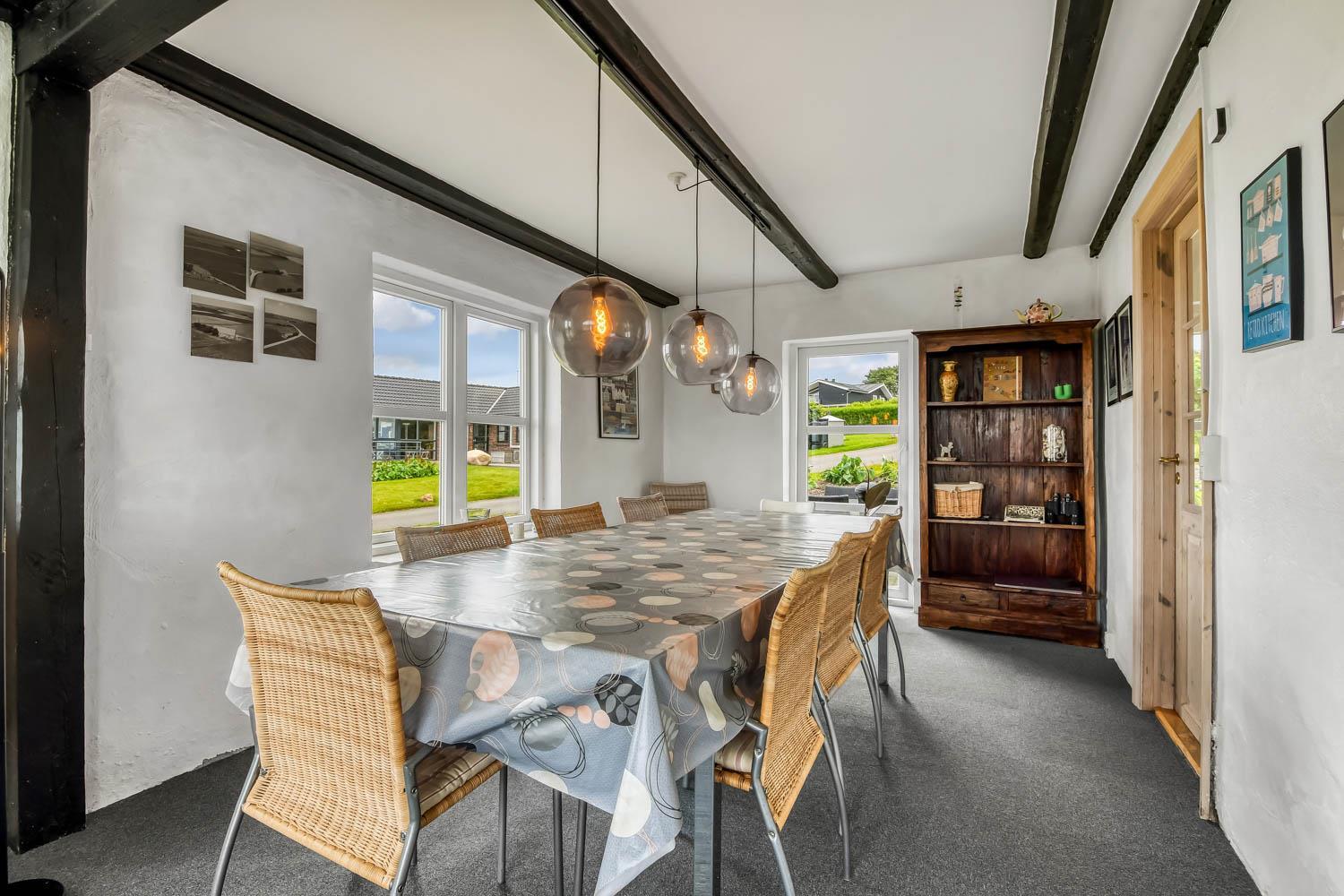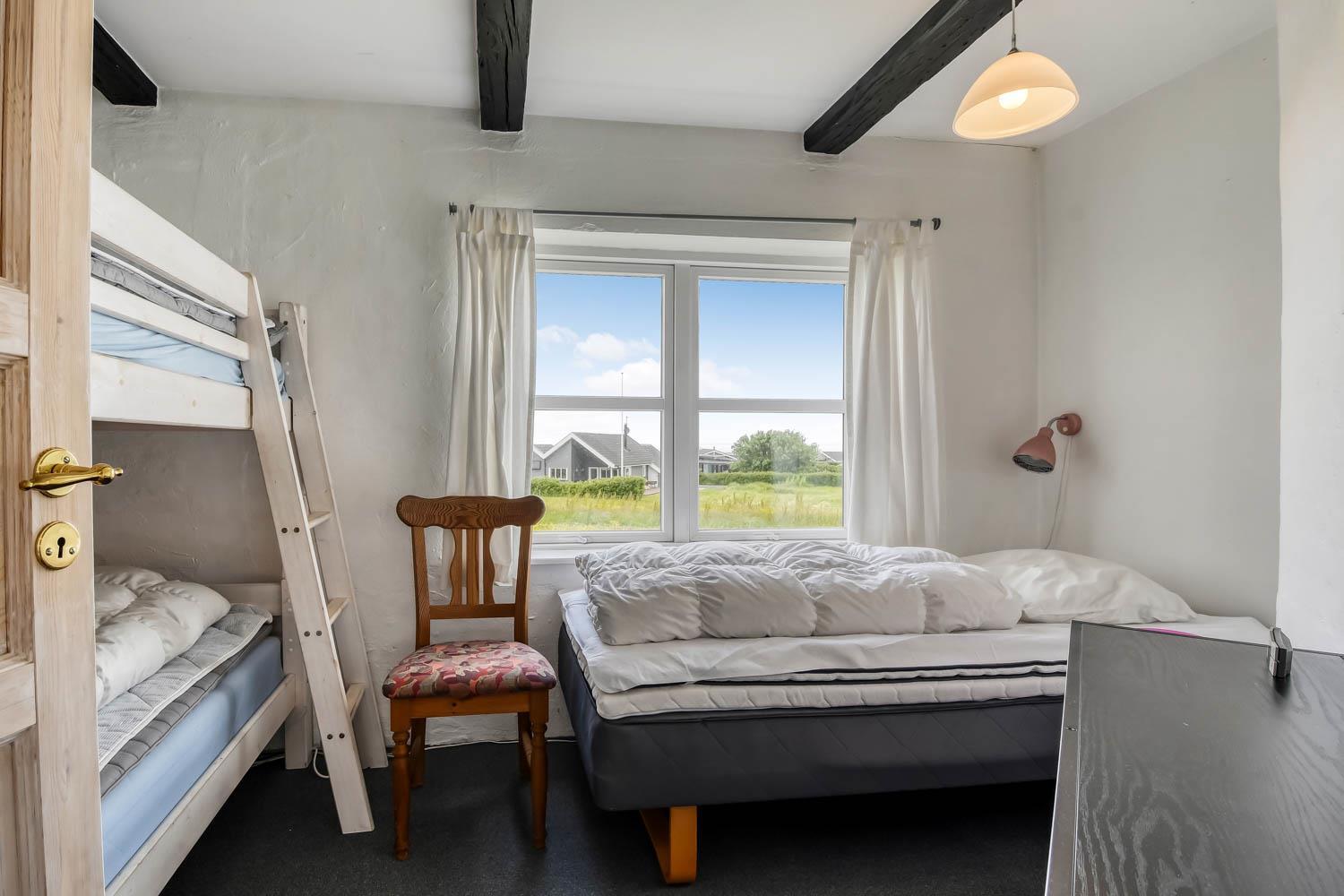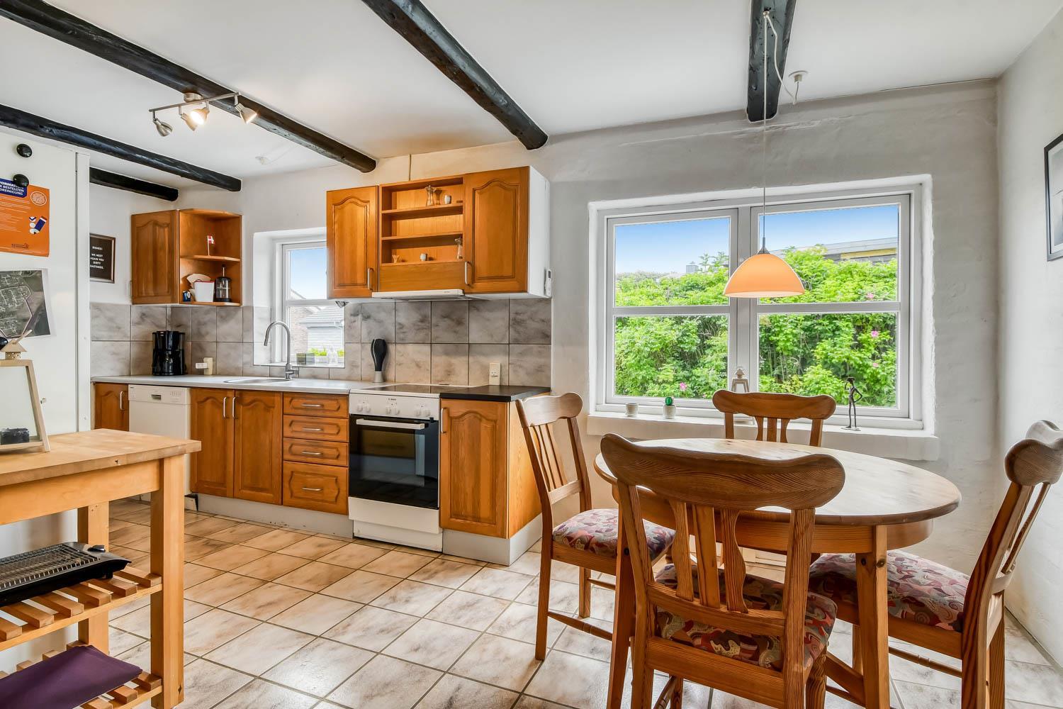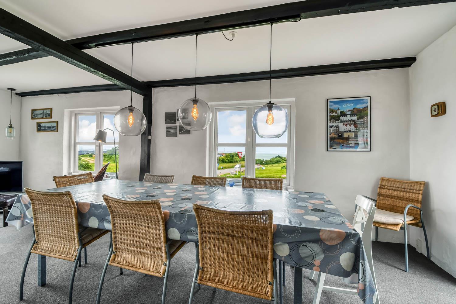 Allerede når I kører ind til huset og parkerer bilen, kan I se den fantastiske beliggenhed huset har. Når I kommer ind i entreen, er der energivenlig vaskemaskine og tørretumbler, desuden er der god aflægge plads. Entreen er fordeler gang, hvorfra kan man komme ind i stuen, som er indrettet med fjernsyn med Chromecast så der kan streames TV / Radio / Apps som I selv har et abonnement til. Huset varmes op af brændeovn og varmepumpe, som giver en behagelig varme også på de kolde vinterdage. Varmepumpen hjælper til at holde elregningen lav. Går man ind ad den modsatte dør i gangen kommer man ind i et dejligt køkken/alrum som er indrettet med glaskeramisk komfur, emhætte, køle-/fryseskab, opvaskemaskine og mikroovn, i køkkenet er der også et lille spisebord. Fra alrummet er der adgang til husets 3 soveværelser som er indrettet med DS + DS + 1ES/1KS. Badeværelse med toilet, håndvask, bruser, spa, puslepude samt adgang til sauna. Overalt i huset er der synlige bjælker, som hører sig til i et hus fra 1910 de bidrager også til hygge. Ikke rygerhus. Max 1. hund er tilladt. Et helt igennem hyggeligt og pænt indrettet feriehus med en fantastisk beliggenhed.