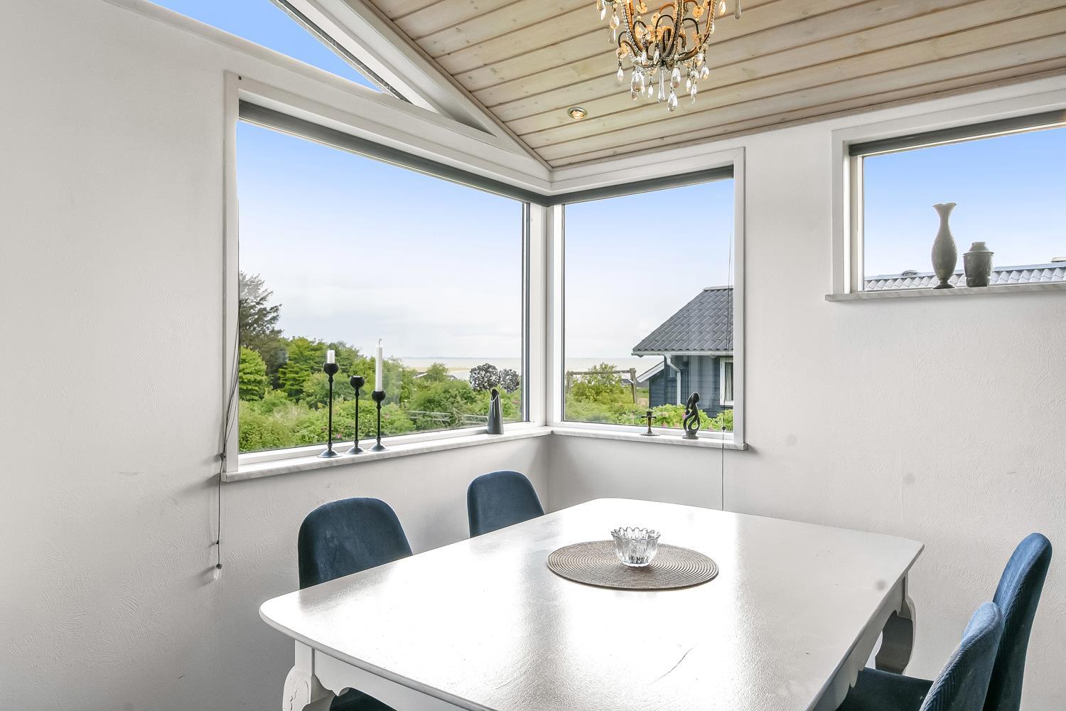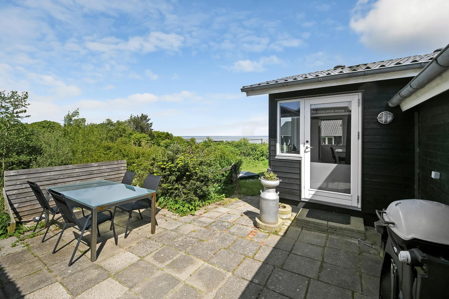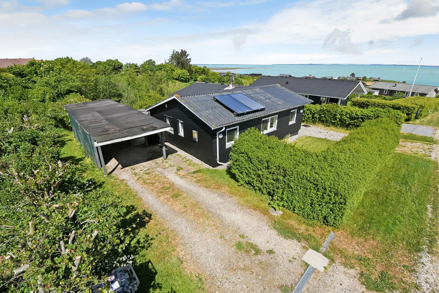 Huset er beliggende på en ca. 972 m2 stor, kuperet naturgrund. Fra spisestuen er der udgang til en terrasse med havemøbler og solvogne. Via en lille trappesti på den fra terrassen er der adgang til en udsigtsplatform, hvorfra man kan nyde den flotte panorama udsigt over landskabet og Limfjorden. Ved huset er det flere muligheder for parkering, bla. i husets carport. Fra huset findes der er et dejligt stisystem, som på få minutter fører direkte ned til vandet samt badebro. Her er der mulighed for at dyrke forskellige vandaktiviteter såsom paddelboard og kajak. Ca. 300 m fra huset ligger den nye flotte naturlegeplads i træ med fodboldbane og rutsjebane og der er heller ikke langt til golfbane, indkøb eller til stranden.