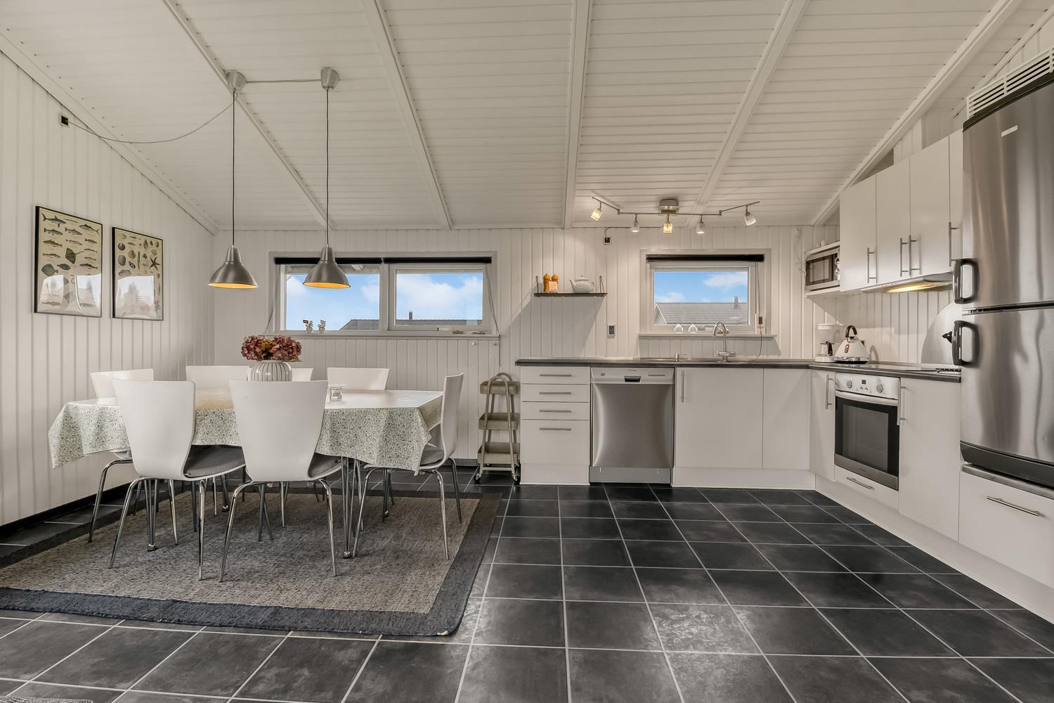 Kombineret opholdsstue og veludstyret køkkenhjørne med mikroovn, opvaskemaskine og separat fryser. 3 soverum (1ds, 3s,), i et af værelserne er der Smart-TV med chromecast. Lyst og venligt indrettet opholdsstue med Smart TV med Chromecast og spillekonsol og gode lædermøbler. Pænt badeværelse med brusenische, toilet, håndvask, vaskemaskine, pusleplads og gulvvarme. Fri adgang til Lemvig Svømmehal. Ikke-ryger hus. Gulvvarme og el-besparende varmepumpe. Barneseng og højstol forefindes. Ikke rygerhus. Har man el-bil eller en Plug-In hybrid, så er der ved huset 3-faset 16amp CEE stik, der kan lade op til 11 kWh.