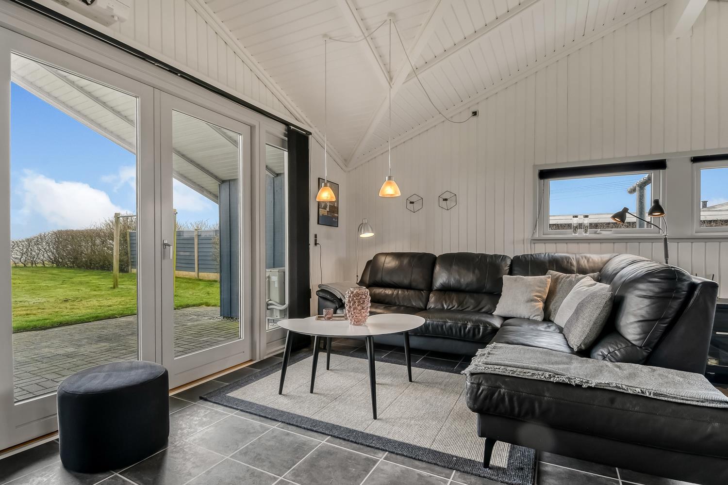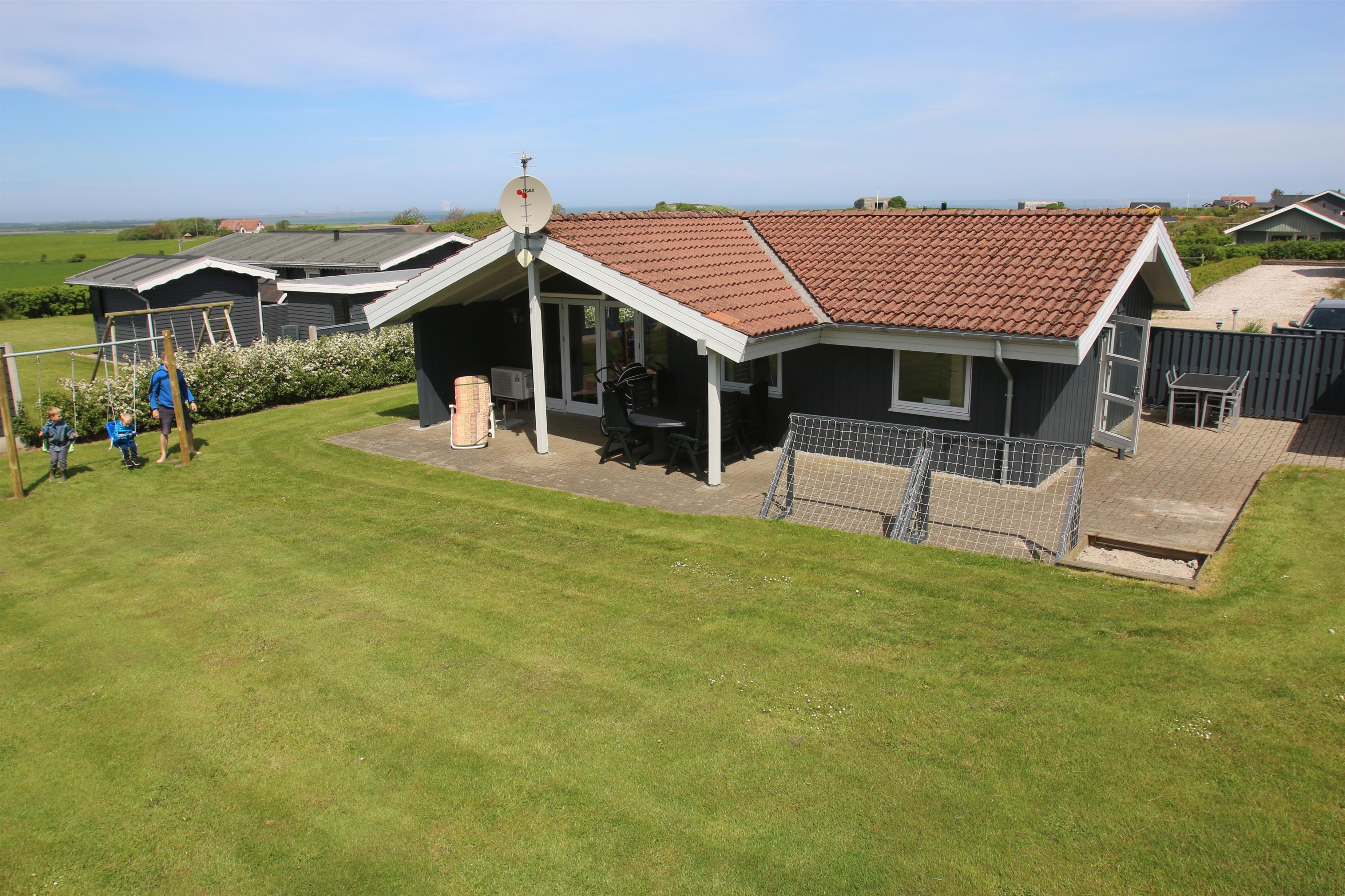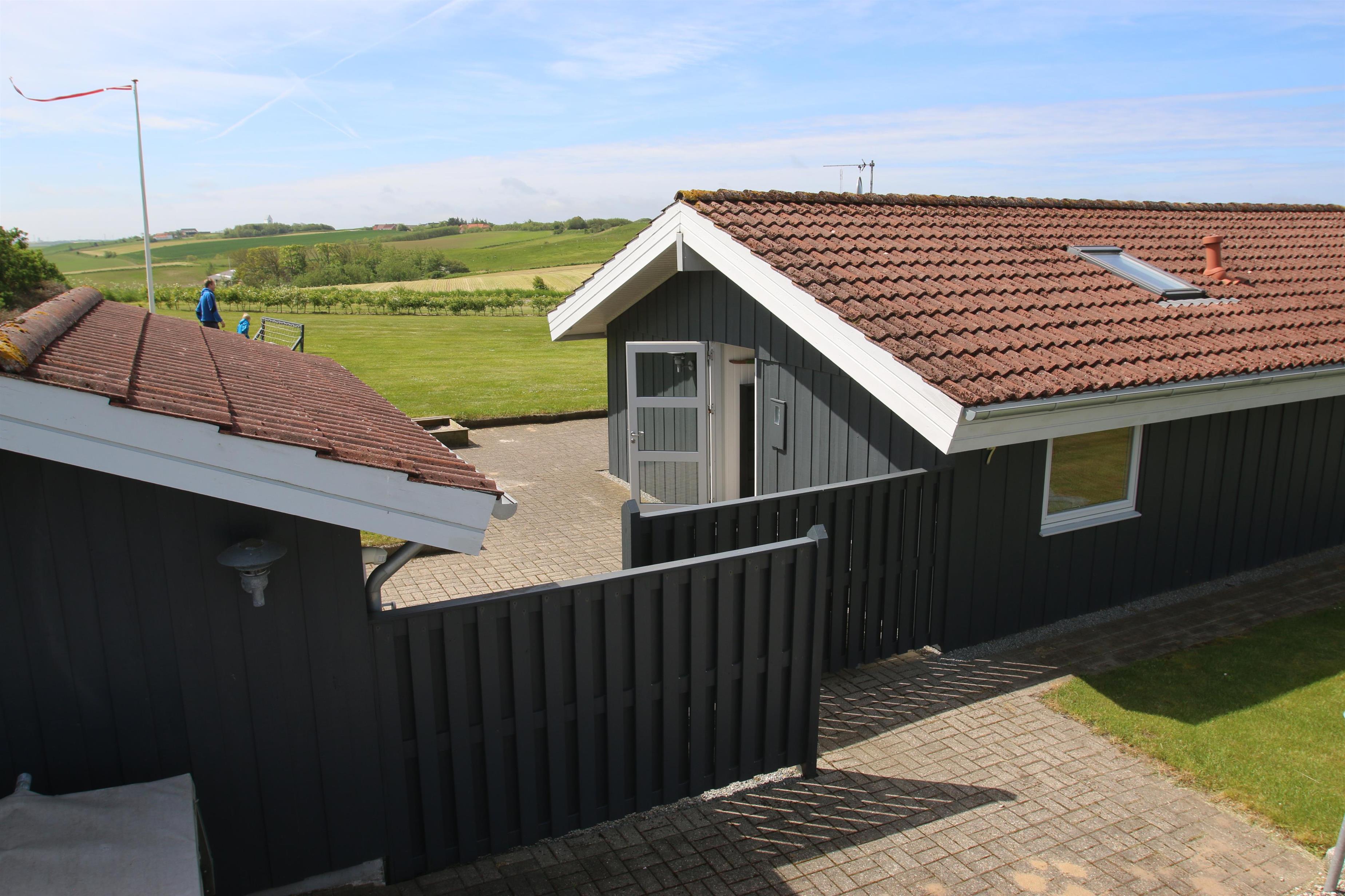 Udgang til dejlig anlagt, delvis overdækket terrasse med havemøbler, liggestole og grill. Roligt Beliggende på en flot velholdt grund med 2 fodboldmål. Sandkasse og gynge. Udhus med tørretumbler, havehynder m.m. Beliggende, tæt på indkøb i et dejligt område midt en fantastisk natur. Oplev den smukke handelsby i Lemvig med mange specialbutikker som ligger kun 5 km fra huset.