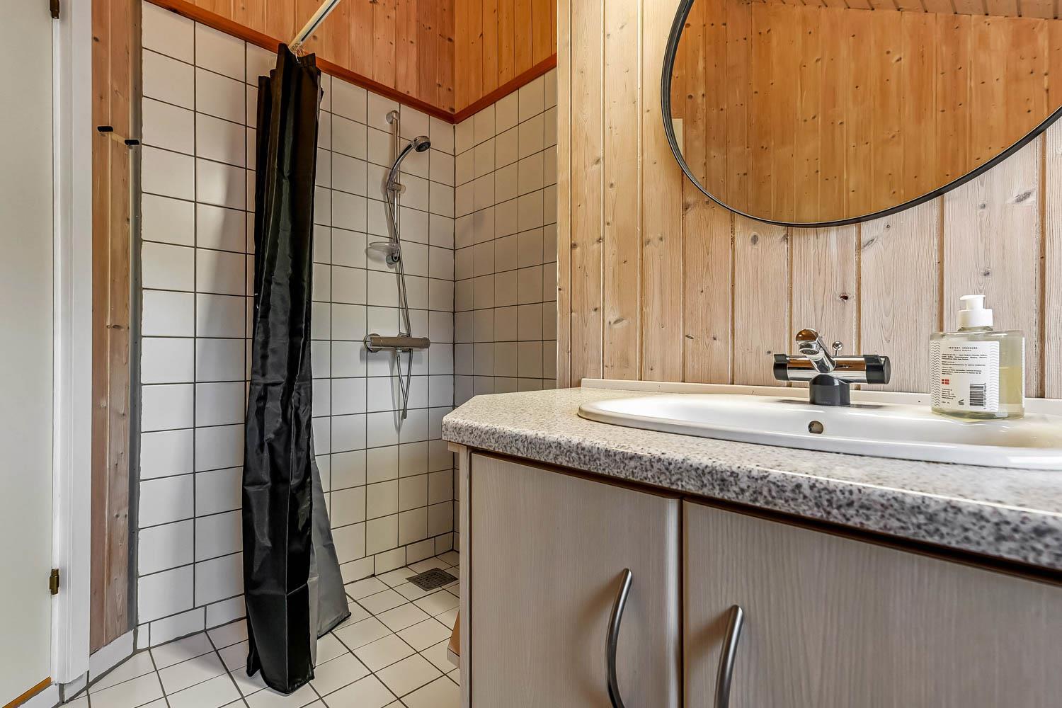 Huset er særdeles veludstyret med vaskemaskine, varmepumpe og brændeovn. Badeværelse og bryggers har klinkegulv.