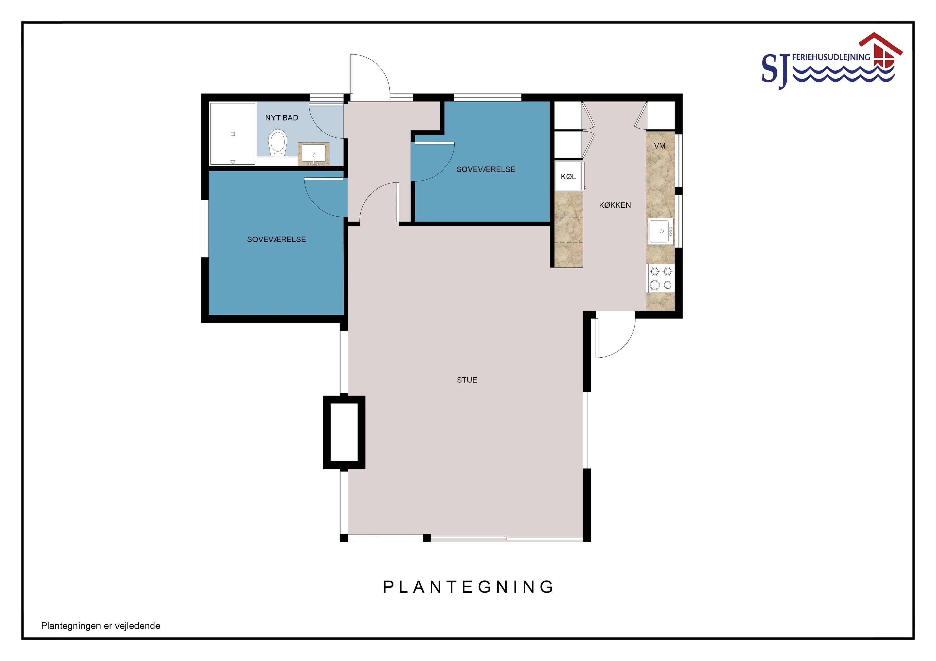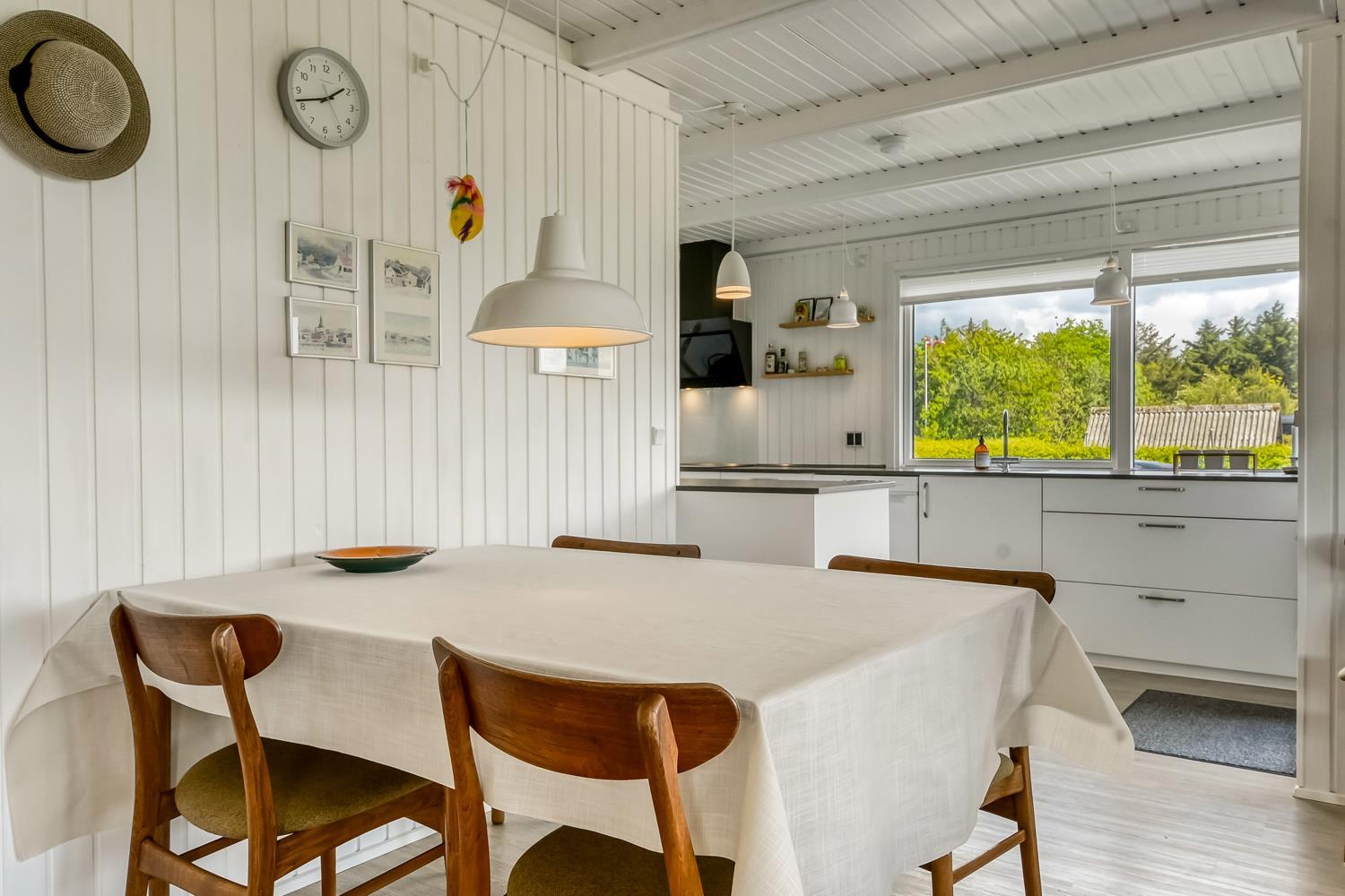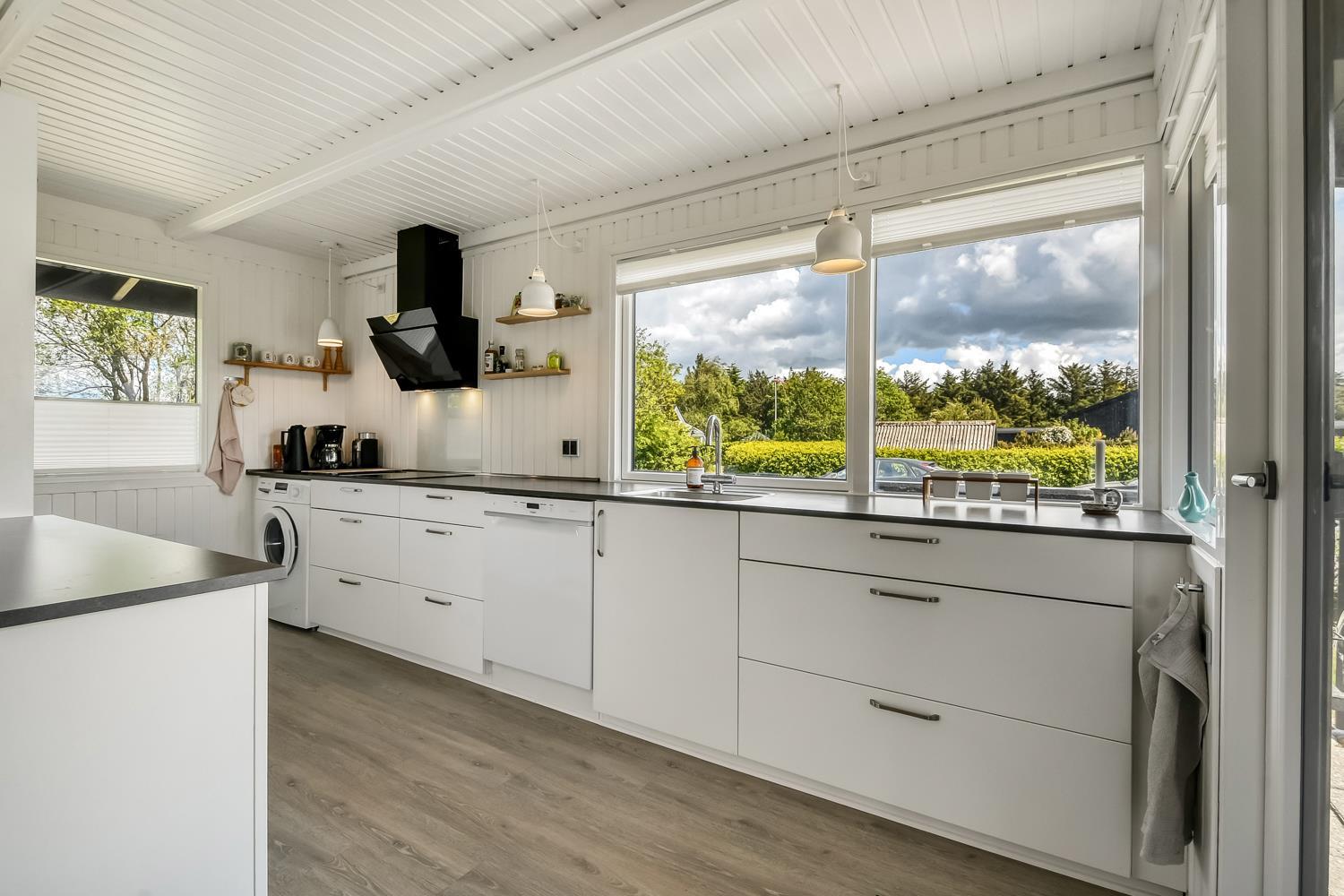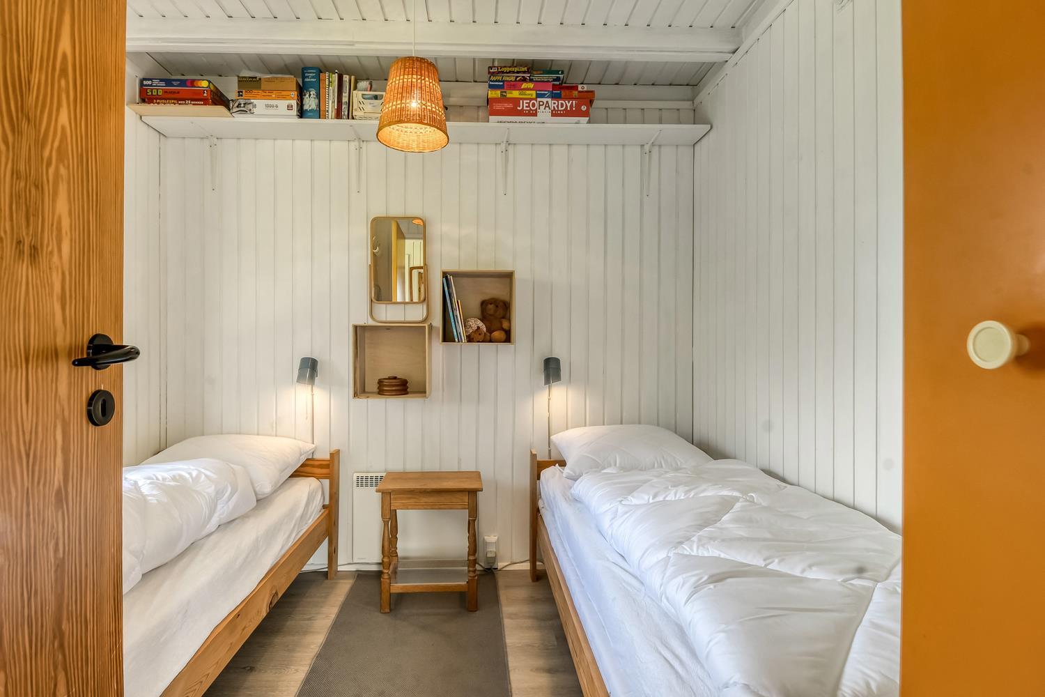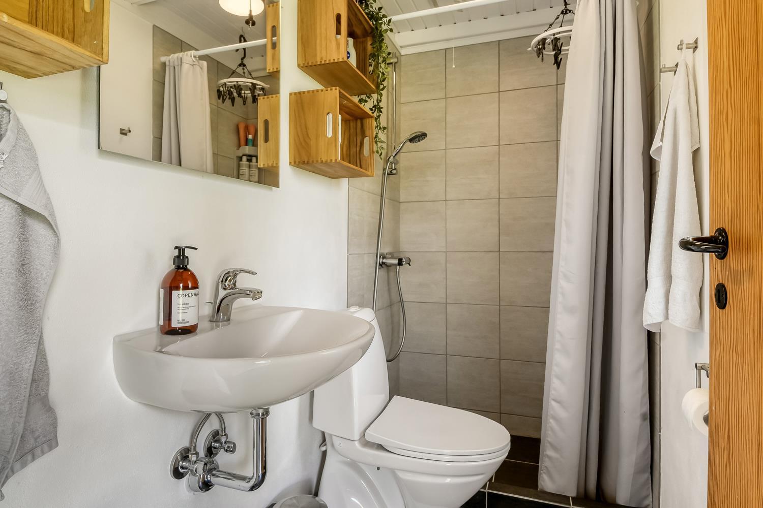 Huset rummer to hyggelige soveværelser, et moderne badeværelse med håndvask, bruser og behagelig gulvvarme samt et køkken med alle nødvendige faciliteter. Her er alt, du behøver for at nyde ferien i komfortable omgivelser.