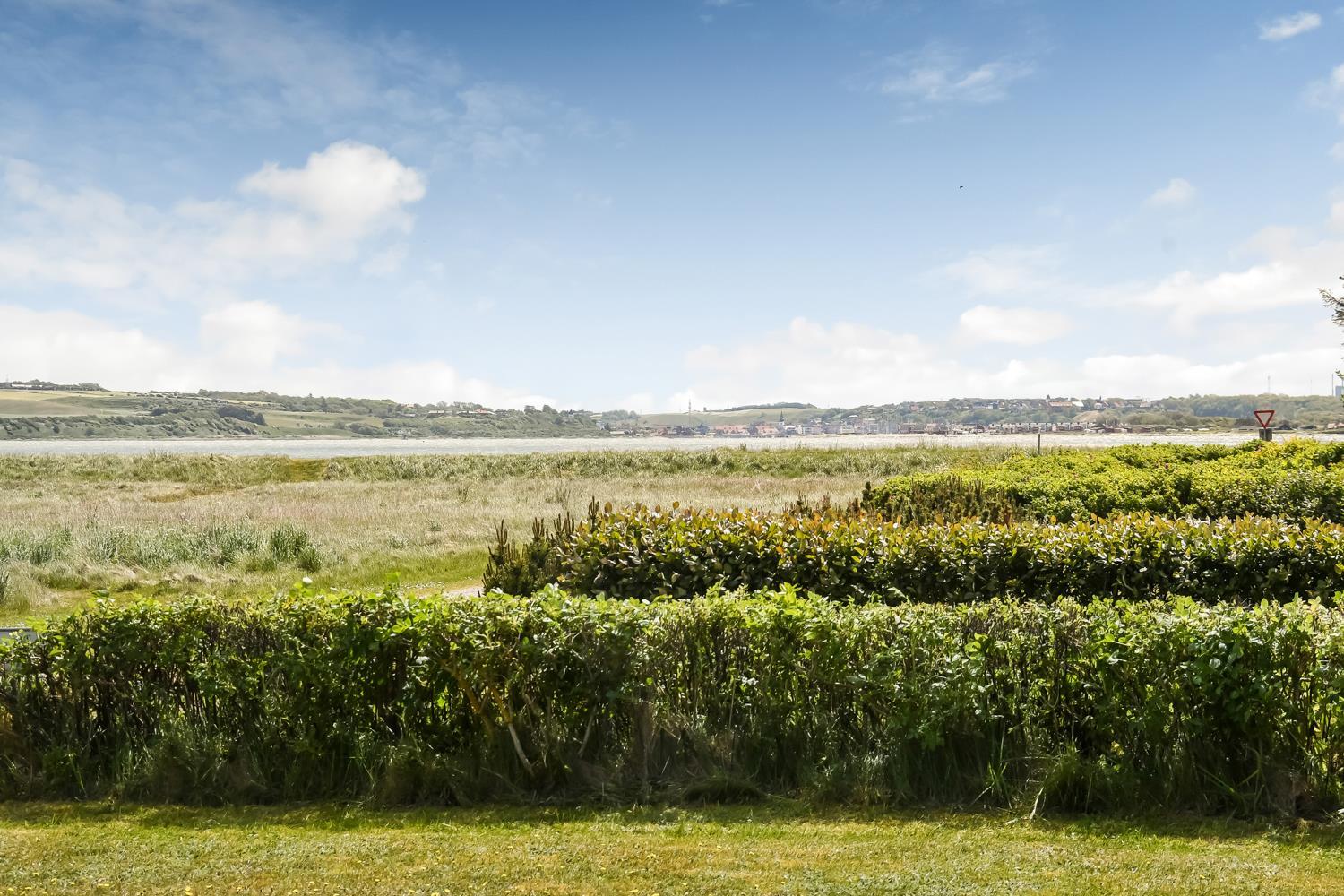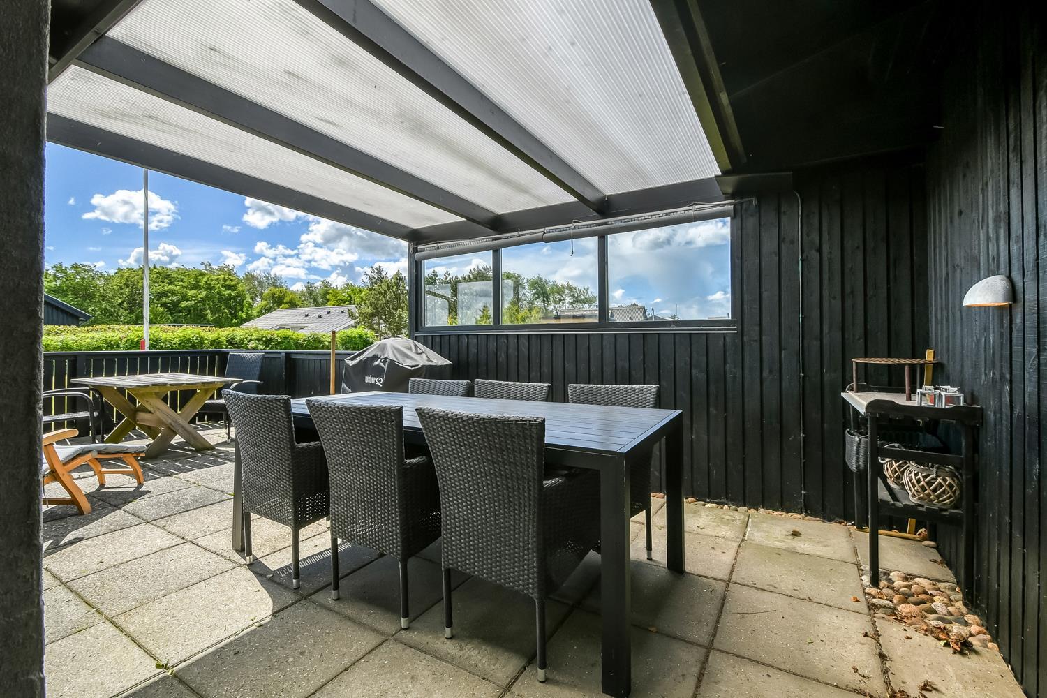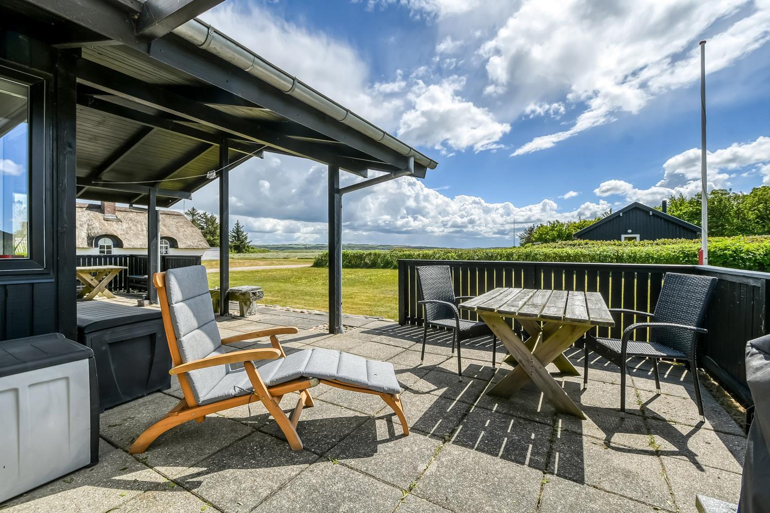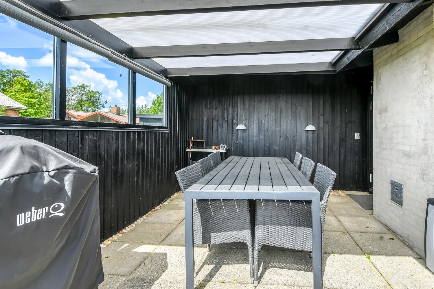 Huset grund på 824 m2 giver rig muligheder for boldspil og andet, desuden finder du både en overdækket og en åben terrasse med havemøbler, solvogne og gasgrill – oplagt til lange sommeraftener med mad på grillen og udsigt til fjorden. Grunden er omgivet af grønne områder og giver masser af plads til leg, ro og samvær.