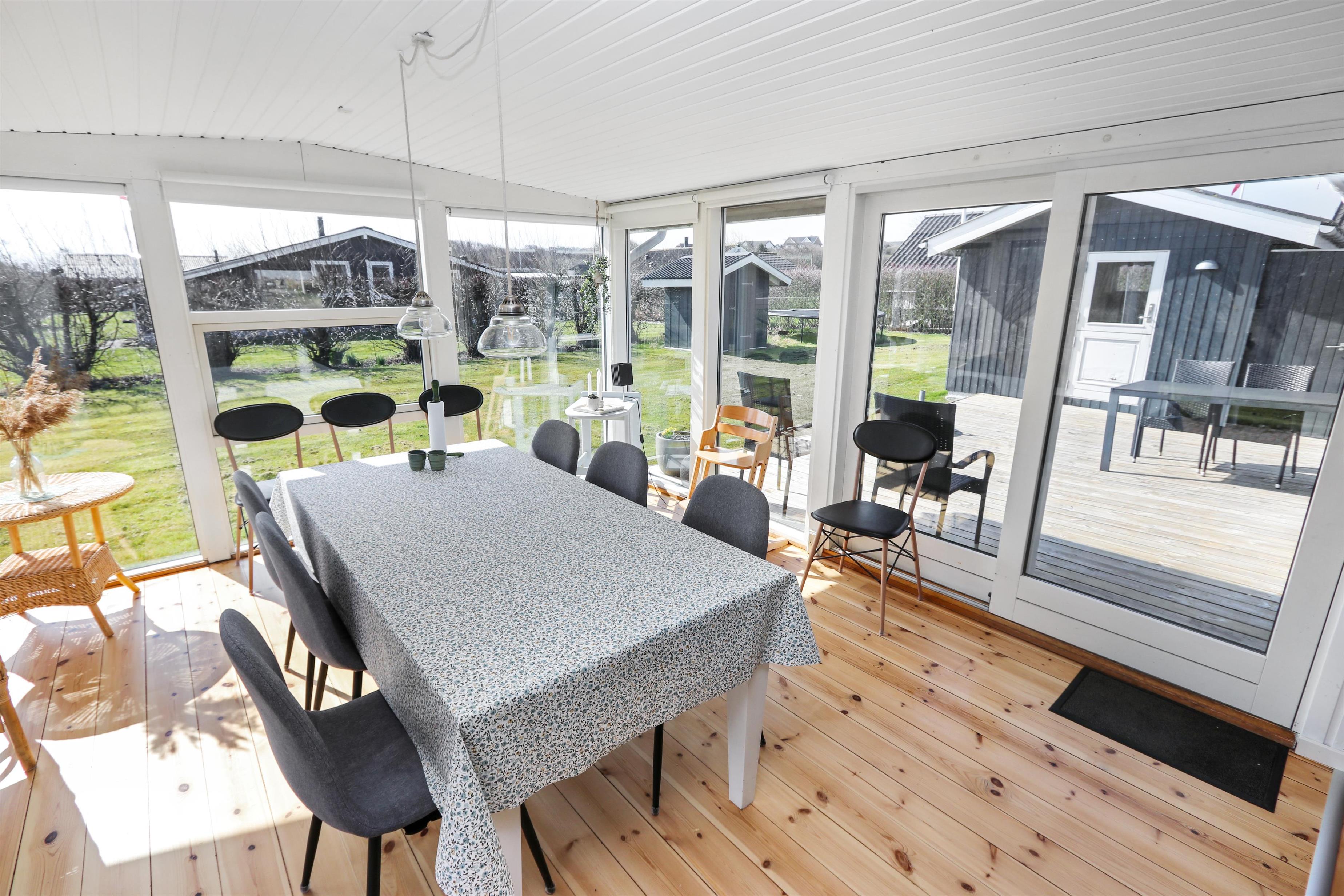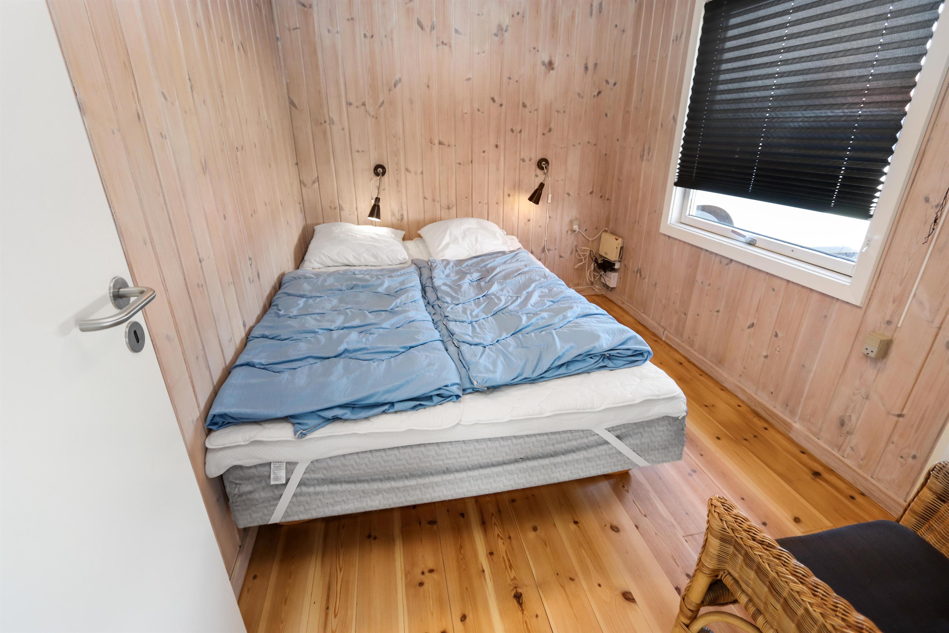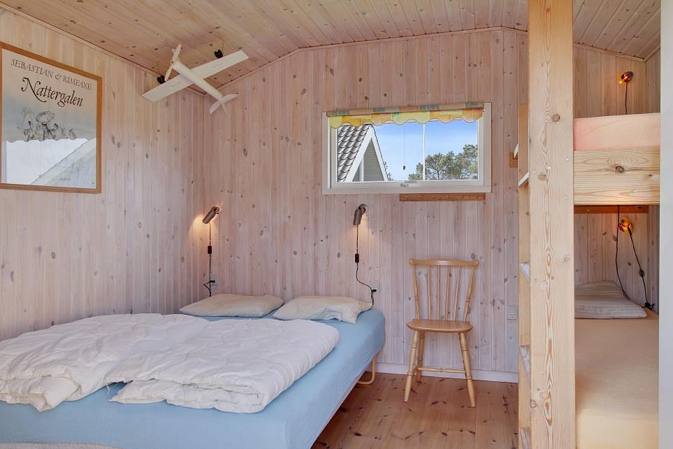Huset rummer to komfortable soveværelser med dobbeltsenge samt et anneks med både dobbeltseng og køjeseng – perfekt til børn eller ekstra gæster. Badeværelset er lyst og funktionelt med toilet, håndvask, bruser og gulvvarme, så man kan starte dagen dejligt varmt og frisk.