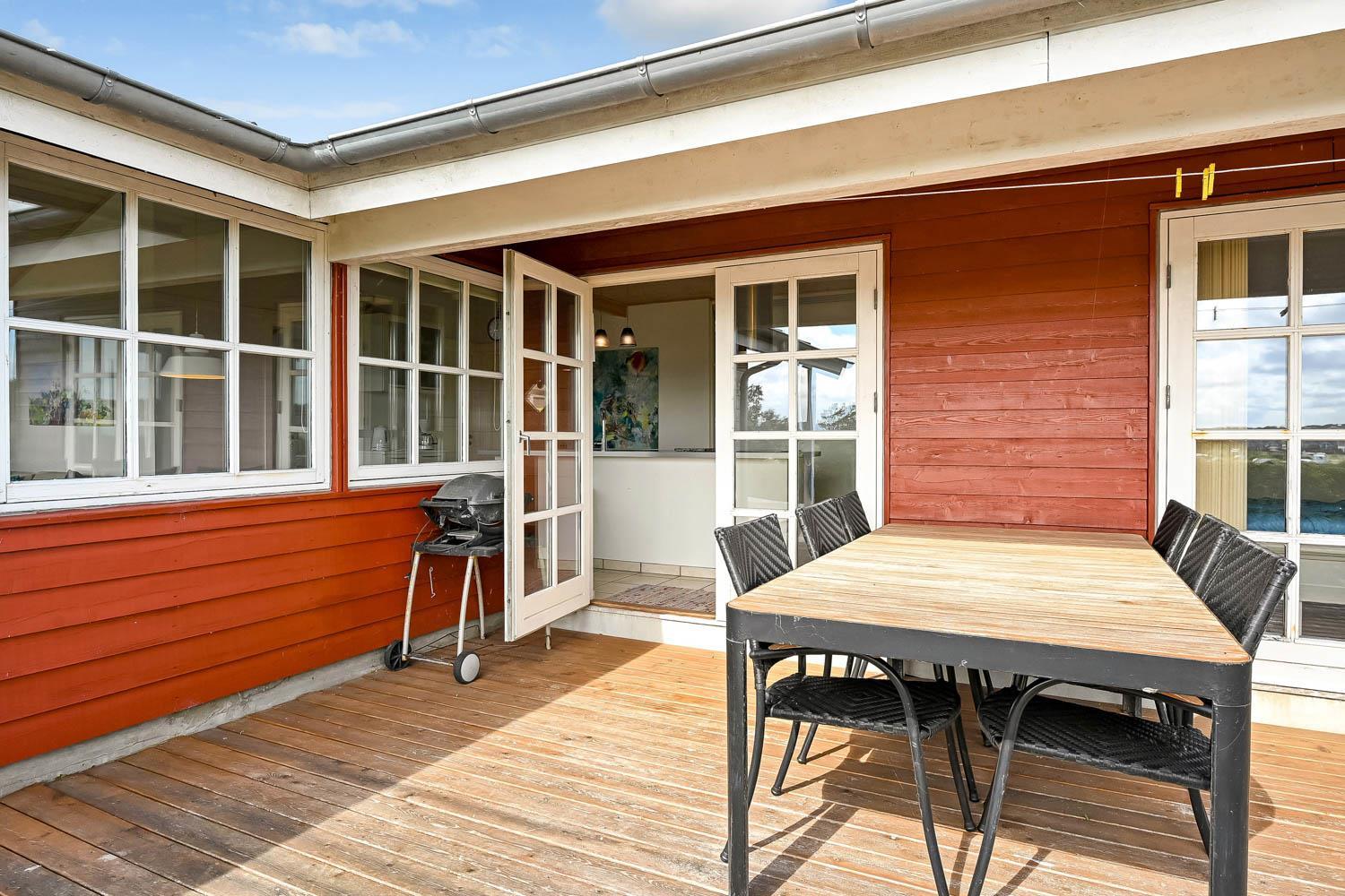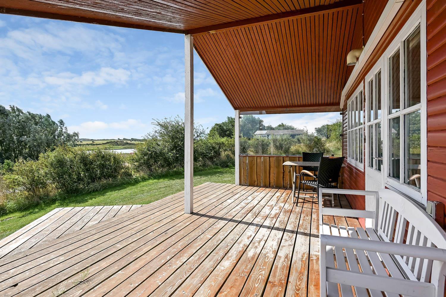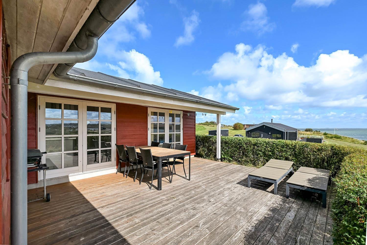 Huset er beliggende på en 1000 m2 panorama grundstykke med flot fri udsigt over landskabet. Huset er beliggende blot 150 m fra Limfjorden og Lemvig By ligger ca. 5300 m fra huset. Fra stuen er der udgang til 2 delvis overdækkede terrasser, med havemøbler og liggestole, fra begge terrasser der er ligeledes en fantastisk udsigt over vandet. Der er en bålplads. Huset er beliggende tæt på Lemvig by, hvor der er gode restauranter og butikker. Ønsker man at besøge fiskerbyen Thyborøn så ligger det også blot ca. 15 min kørsel i bil fra huset. Det perfekte hus for en familie som ønsker at bo med en fantastisk udsigt tæt på Limfjorden.