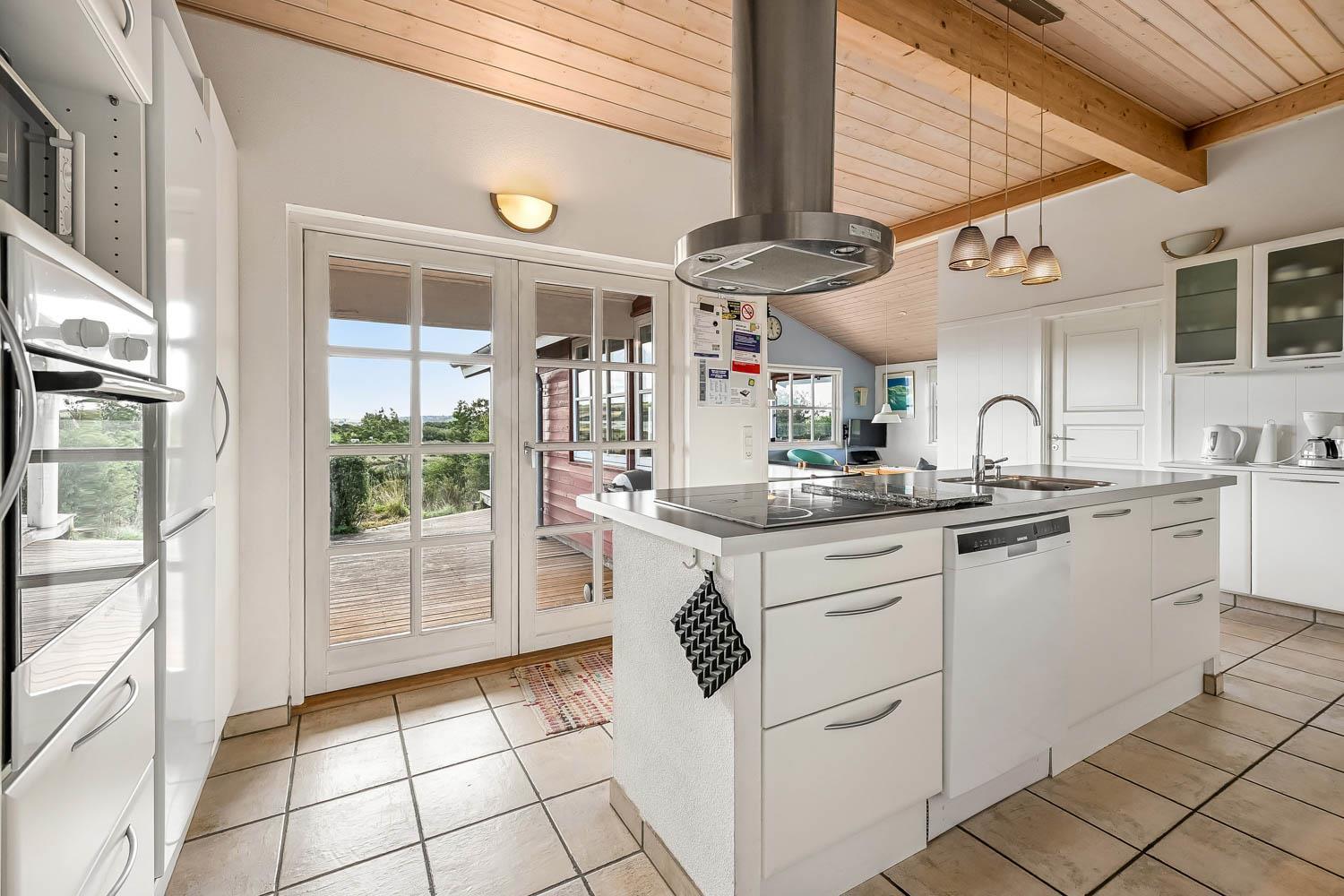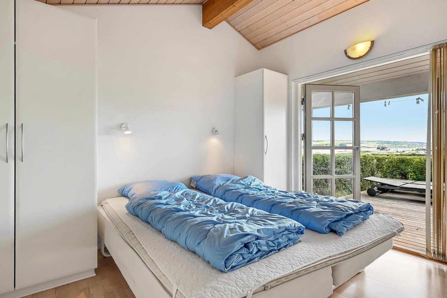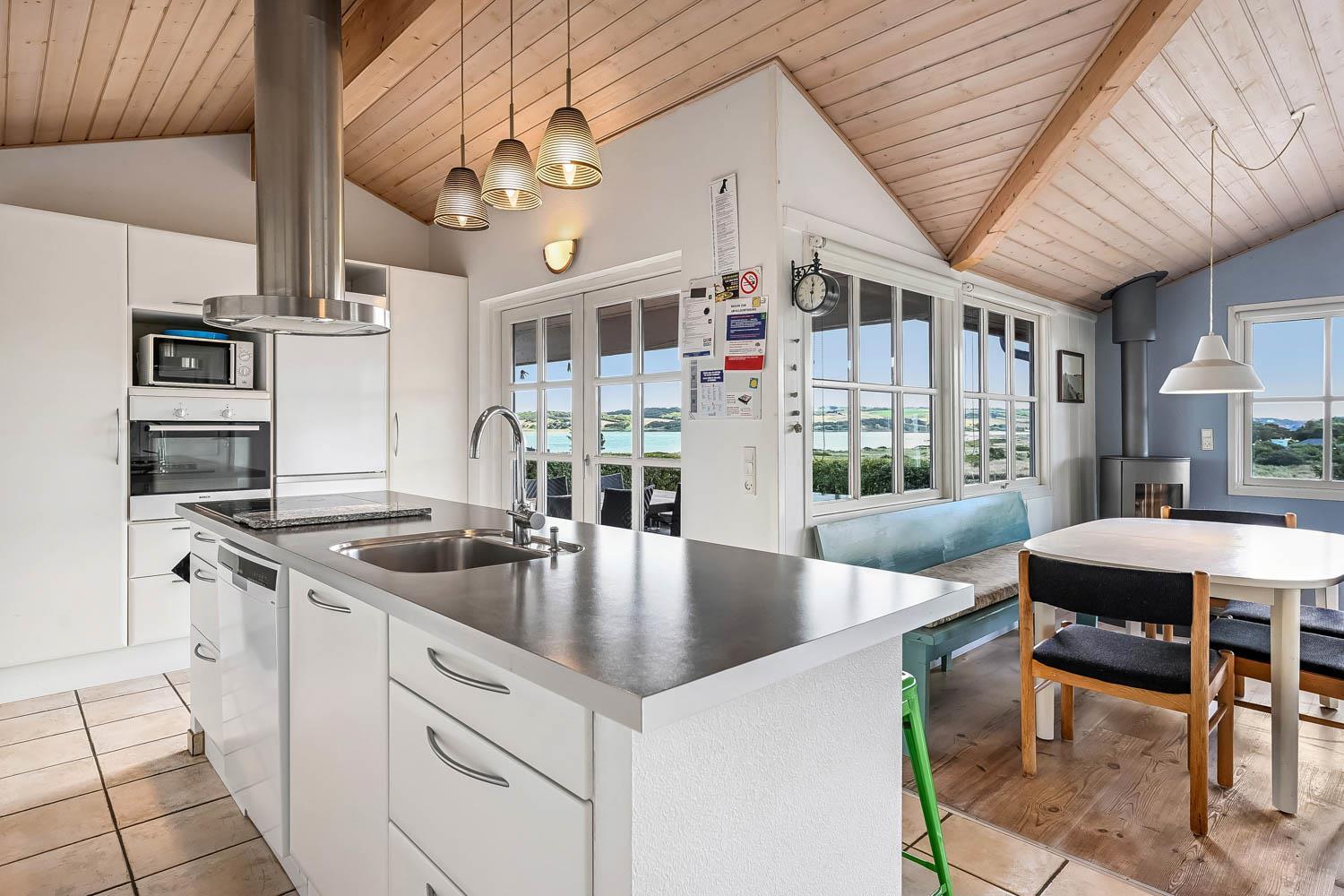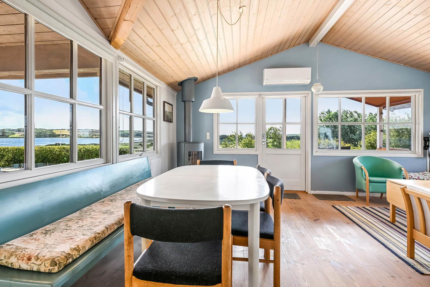 Dette flotte feriehus i træ er indrettet med store vinduespartier, og er lyst og venligt samt moderne indrettet, fra både køkken og stuen er der en skøn udsigt over Limfjorden og lystbådehavnen. I køkkenet er der klinkegulv og stuen er med trægulv. Badeværelset er indrettet med toilet, håndvask, bruser, spabad samt klinkegulv med gulvvarme. Huset er indrettet med 3 soverum: 1DS + 1DS + 2S. Køkkenafdelingen er indrettet med glaskeramisk komfur, køleskab med 90 l. separat fryser, opvaskemaskine og mikroovn. Stuen er indrettet med polstermøbler og TV med danske og tyske programmer, spisebord og stole som er placeret tæt på køkkenet, brændeovn som giver en behagelig varme uanset årstid, og sammen med varmepumpen er de begge medvirkende til at spare på forbrugsafregningen. Der er vaskemaskine og tørretumbler. Til de mindste gæster er der en barneseng. Gratis Internetadgang. 1 husdyr er tilladt. Ikke rygerhus.