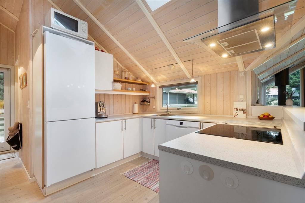 Sommerhus i Grenå Strand, Østjylland, med plads til 6 voksne og 4 børn. Der er en hyggelig indretning med bl.a. brændeovn, og du finder desuden vaskemaskine, opvaskemaskine og tørretumbler i boligen.