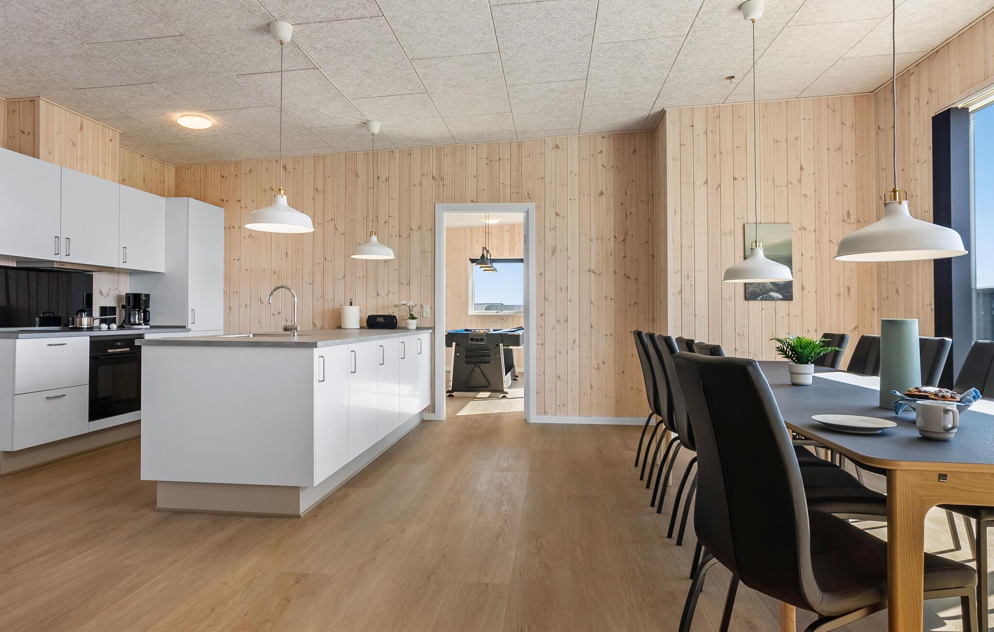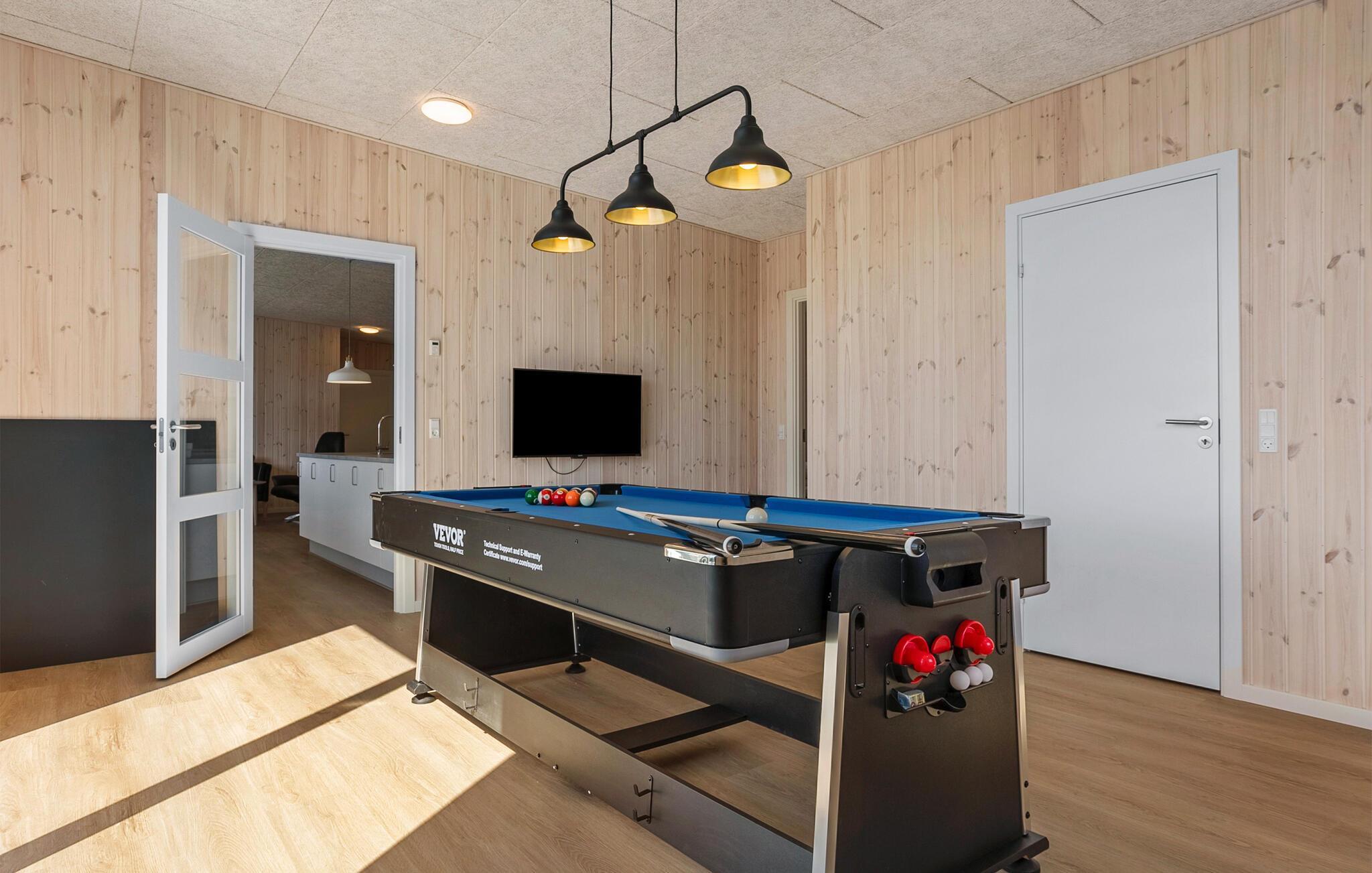 Dette lyse og stilfuldt indrettede feriehus byder på masser af plads og er perfekt til en større familie eller en gruppe venner, der ønsker en afslappende pause. Glæd jer til hyggelige madlavningsaftener, fælles måltider og rolige stunder i saunaen. Slap af i indendørsspabadet, tag en dyst ved billardbordet, og afhold hyggelige spilleaftener i den indbydende stue.