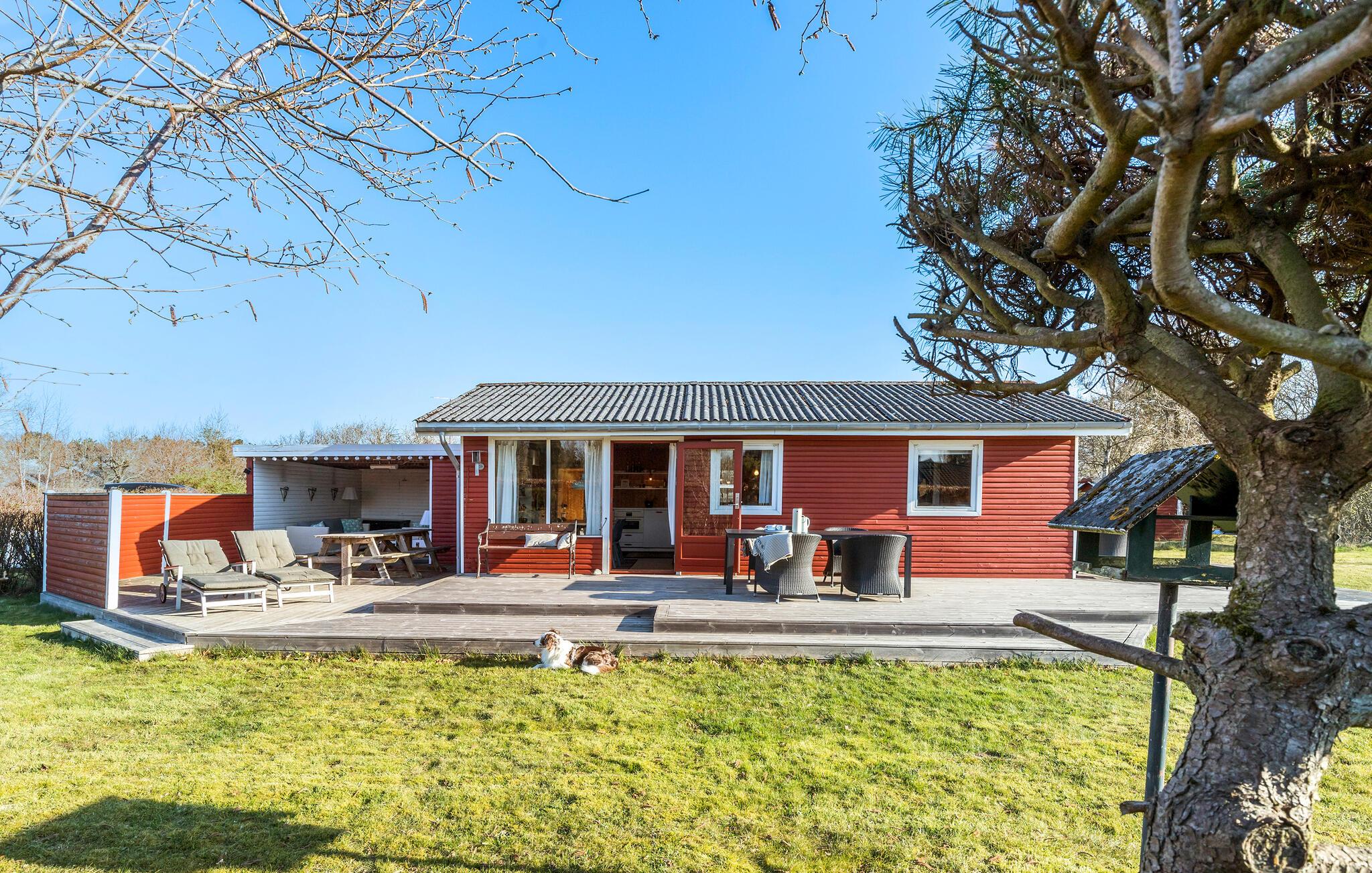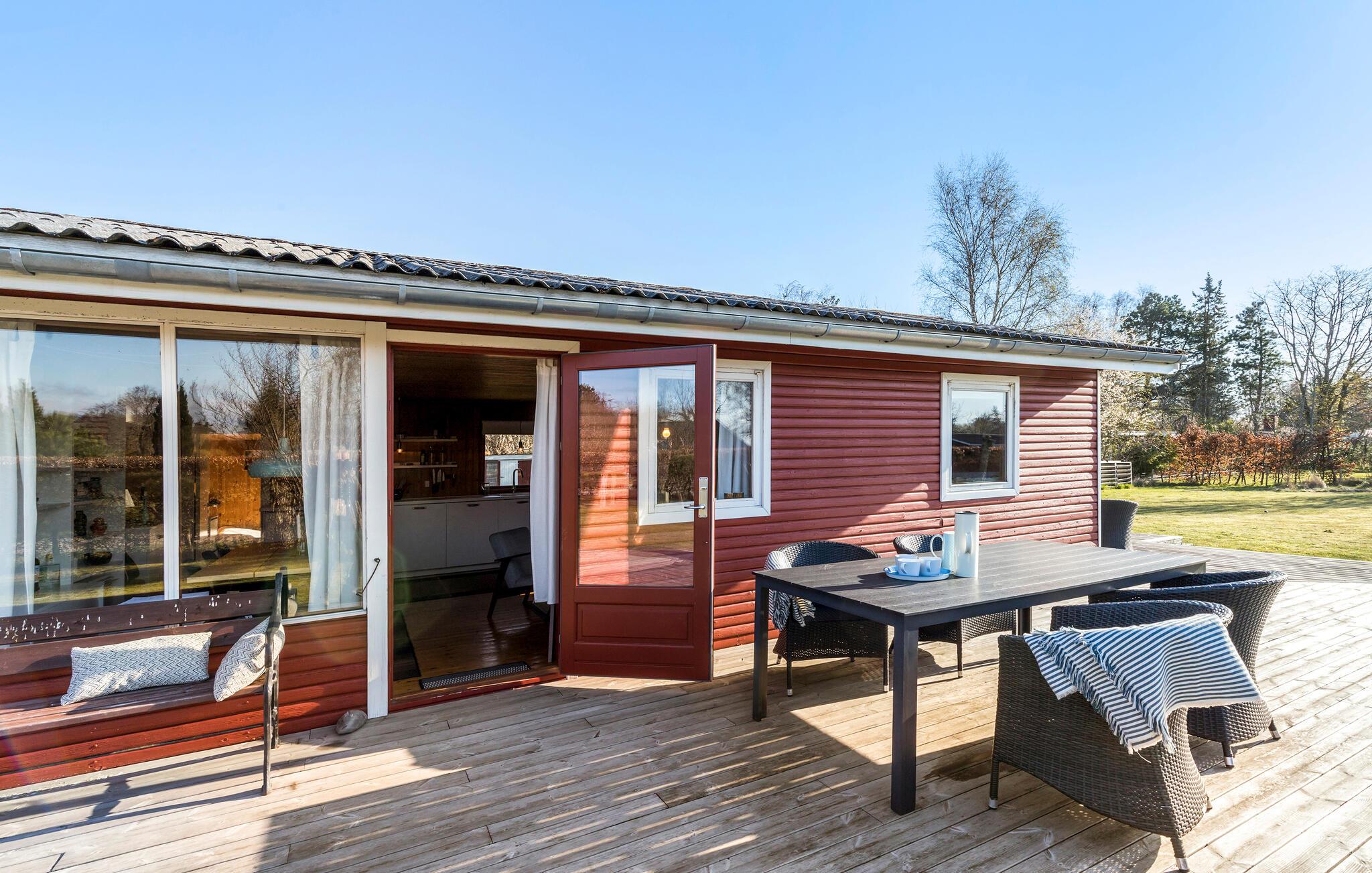 Hyggeligt sommerhus tæt på børnevenlig strand med stor terrasse og smuk natur i Gjerrild Strand.