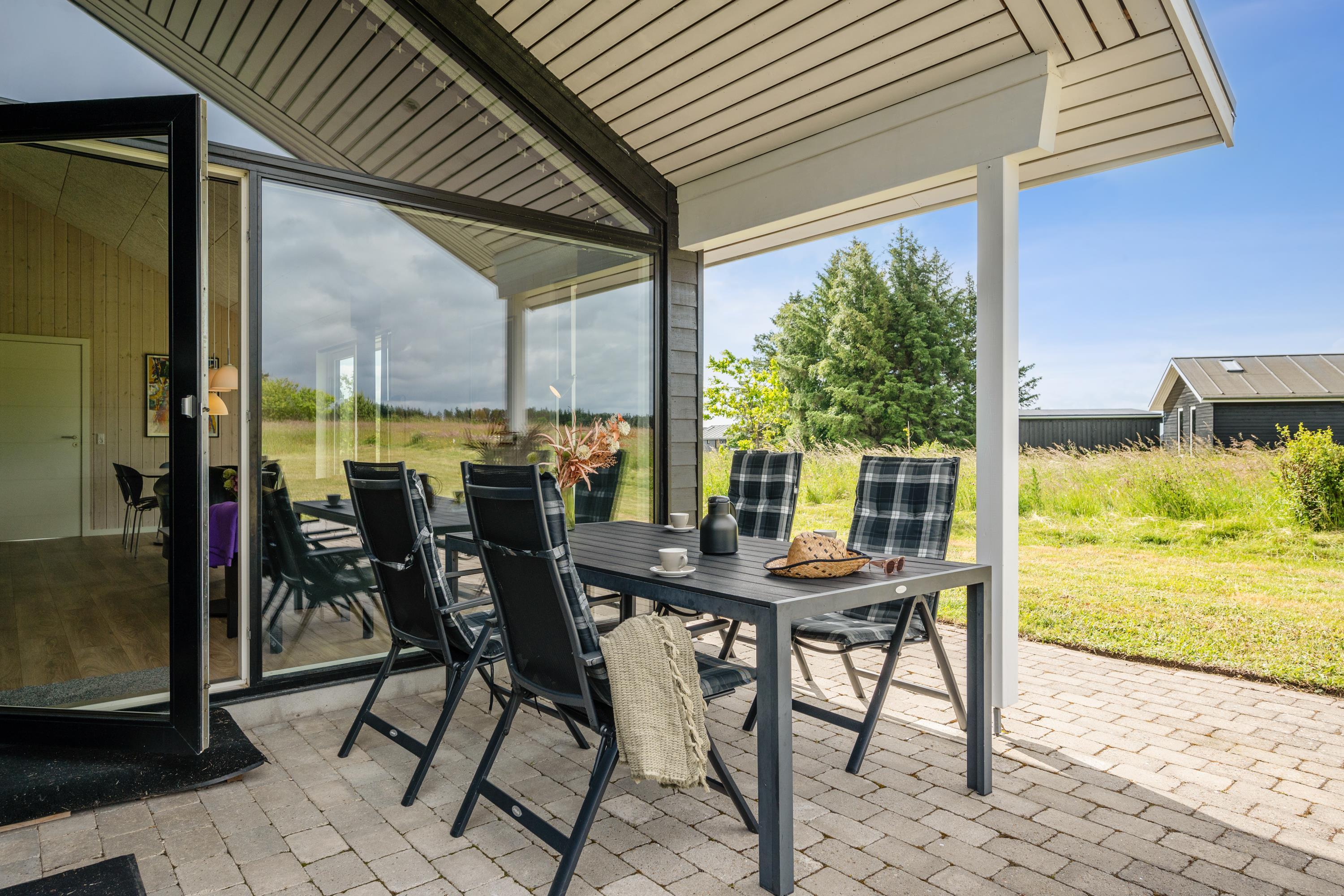 På den åbne og overdækkede terrasse kan I nyde lækre grillretter og slappe af i havemøblerne. Her finder I også det skønne udendørs spabad, hvor I kan slappe af og nyde det varme vand og den skønne udsigt, uanset årstiden. Til de små feriegæster er der trampolin, et fodboldmål og diverse havespil til rådighed. Der er internetforbindelse og TV ses via chromecast. Her er virkelig alt hvad der er behov for, for at holde en skøn ferie og er man flere familier afsted, så udlejer vi også nabohuset 58022.
