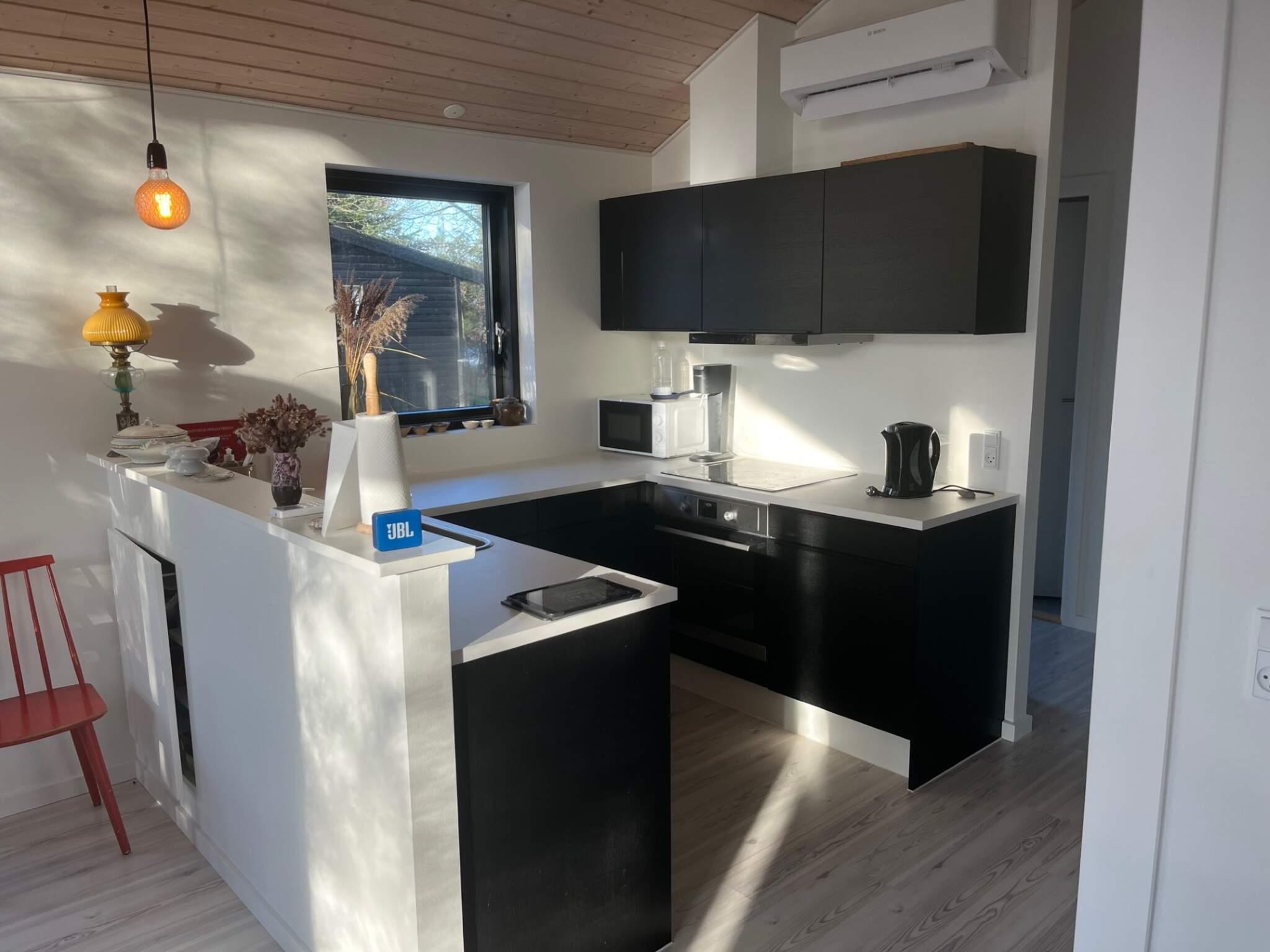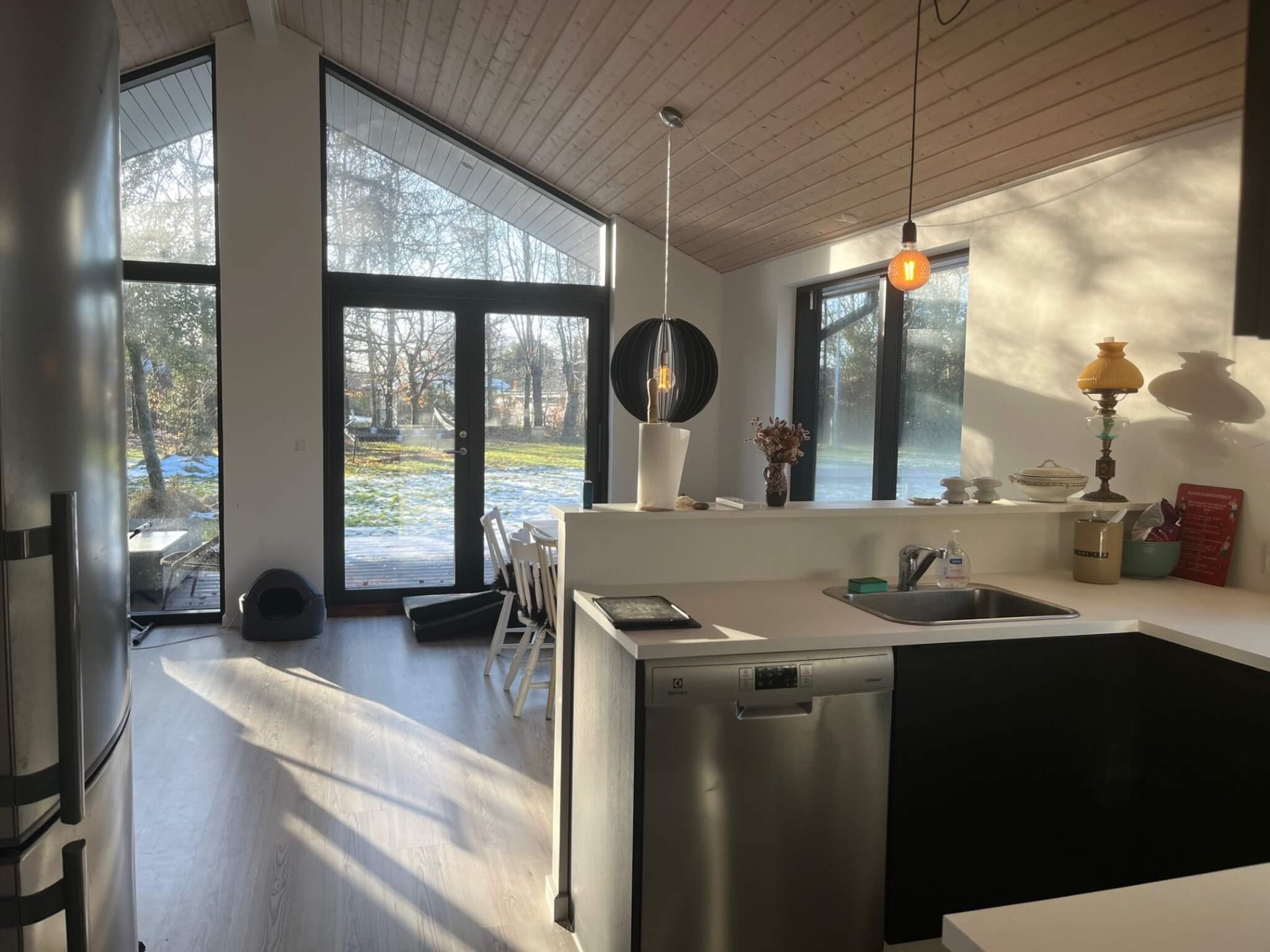 Huset byder på et åbent og veludstyret køkken med induktionskomfur, separat ovn, mikroovn, køle-/fryseskab og opvaskemaskine – perfekt til både hverdagsmad og feriemiddage.