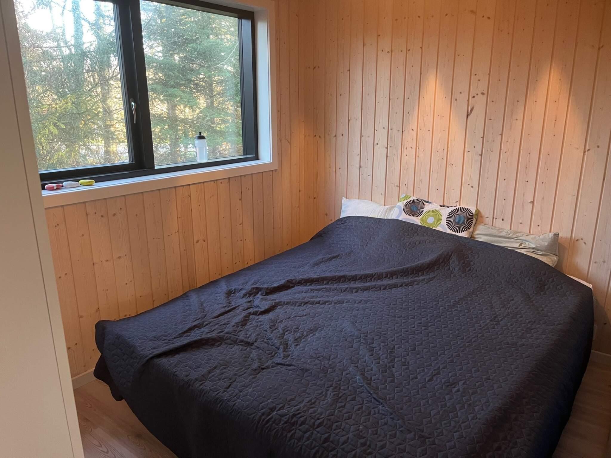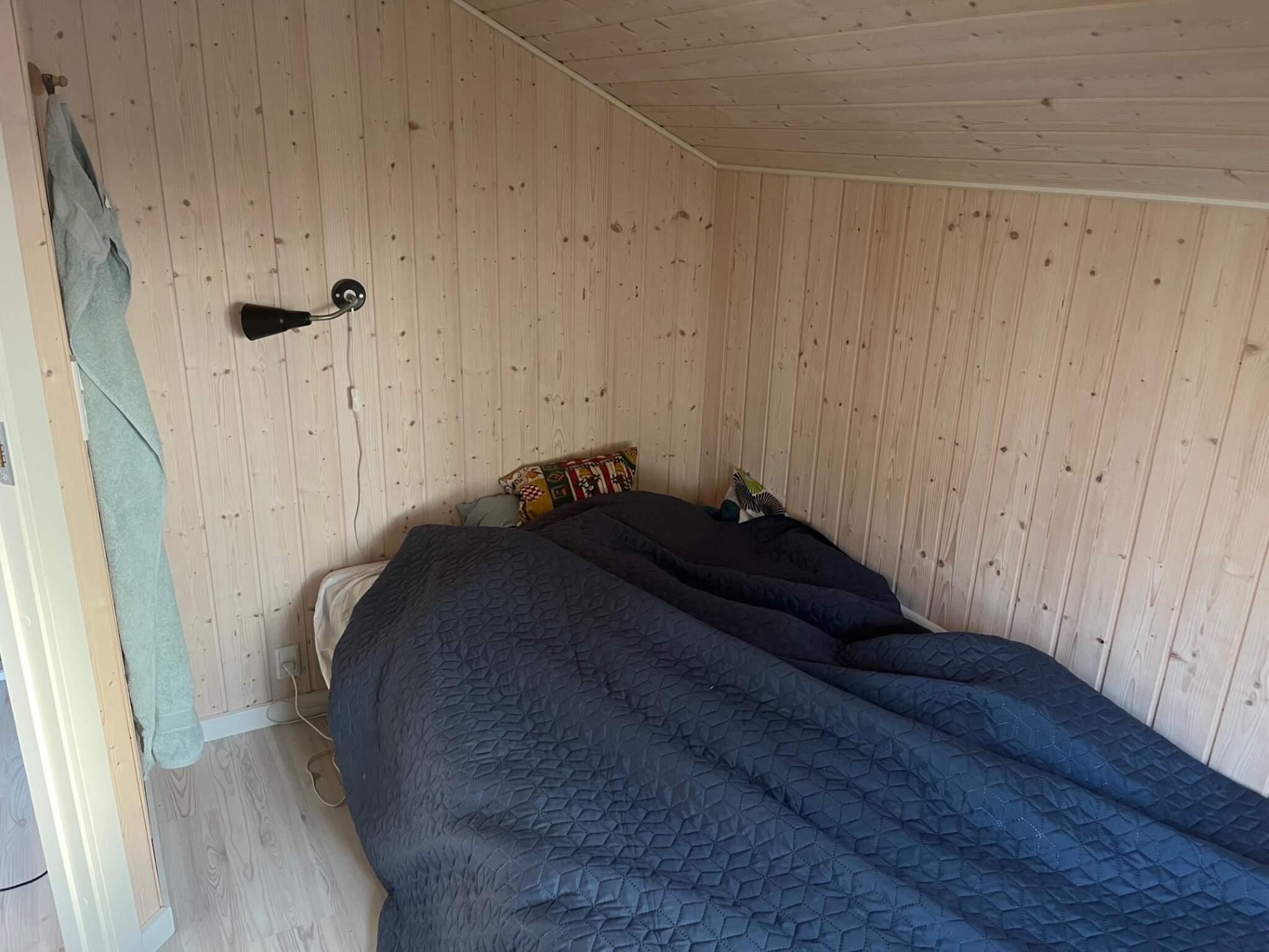 Ét værelse med dobbeltseng.