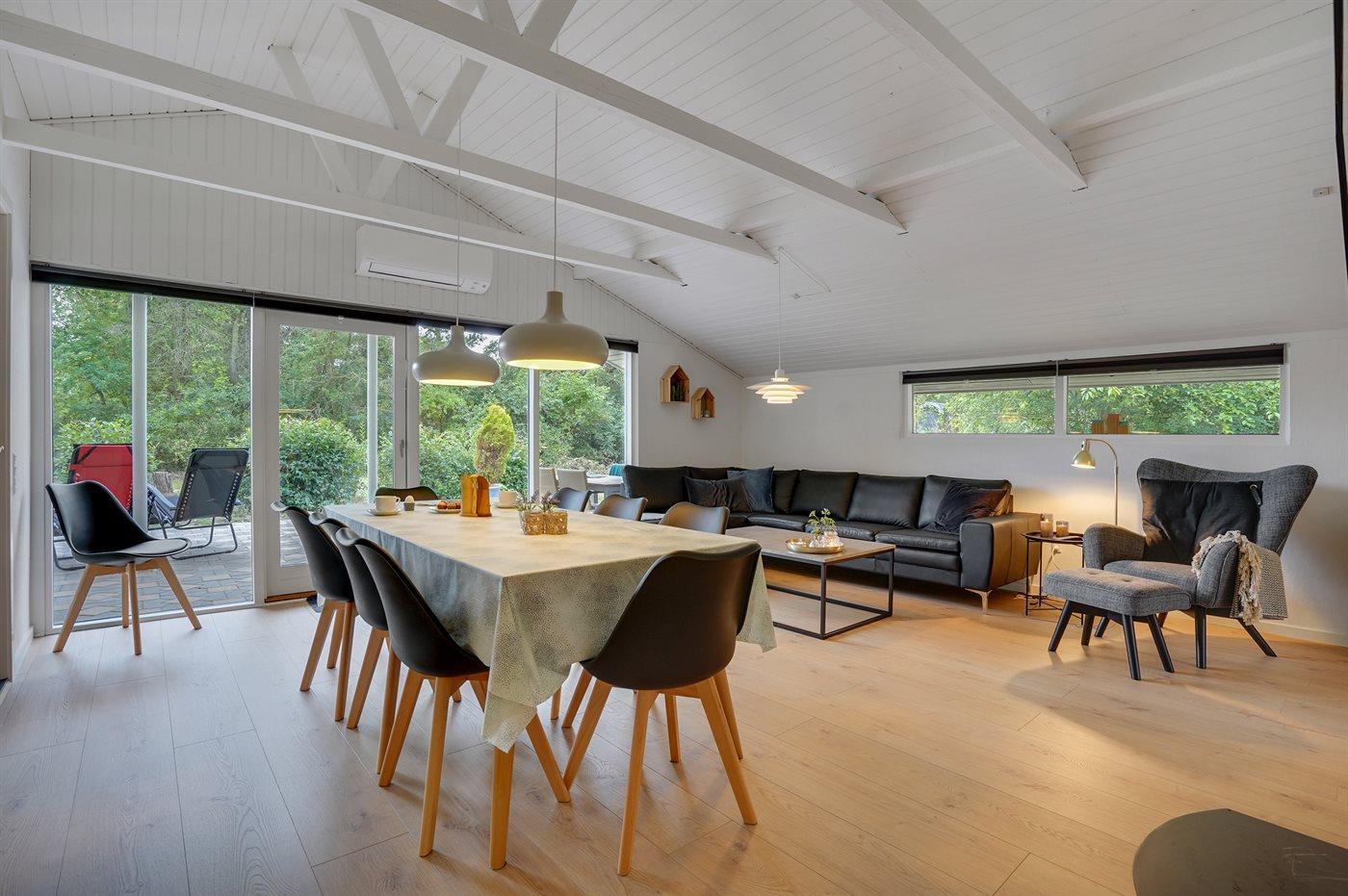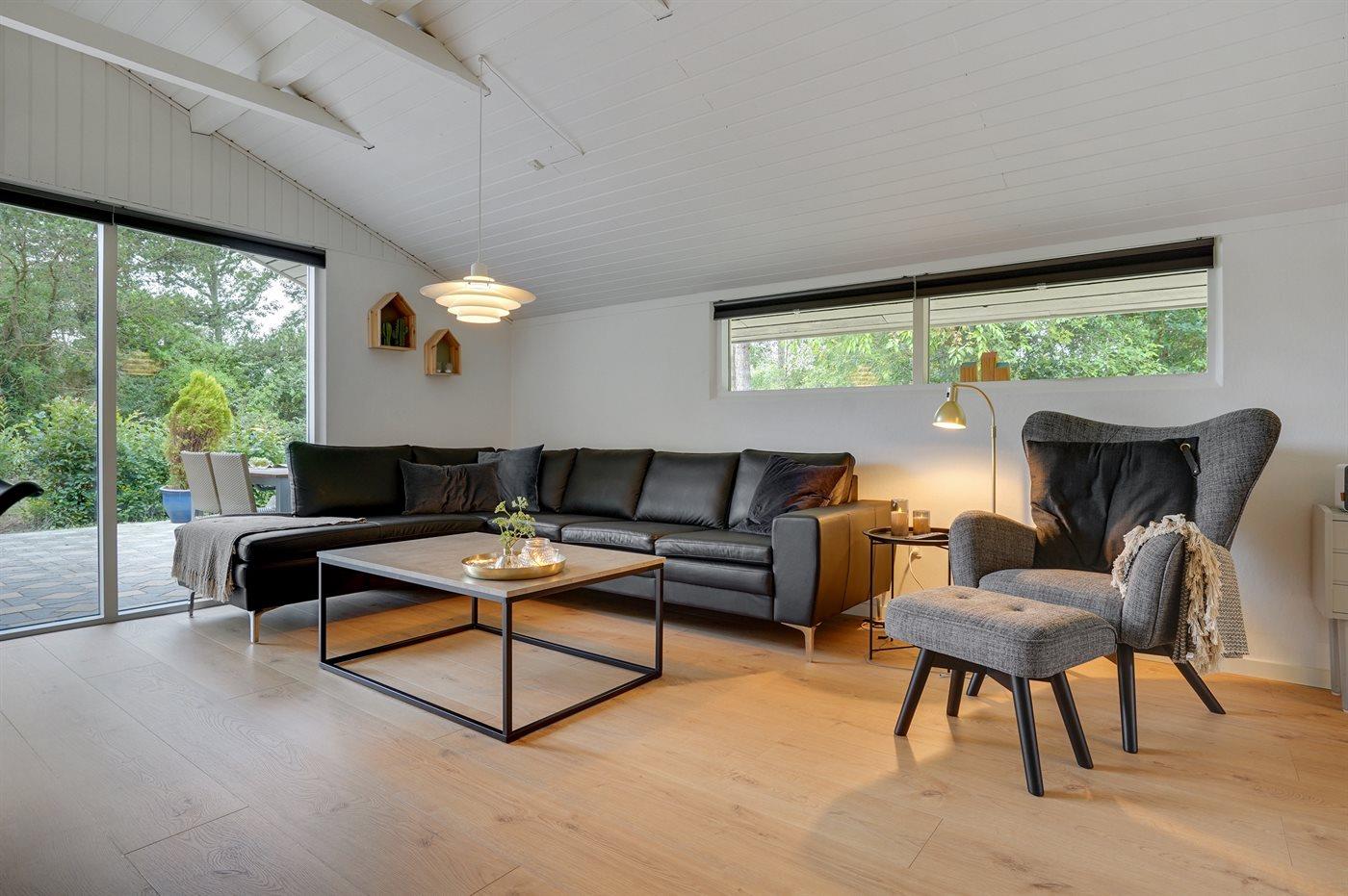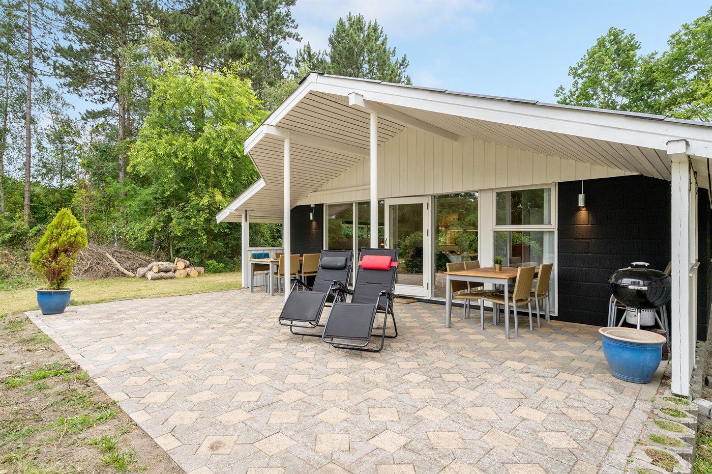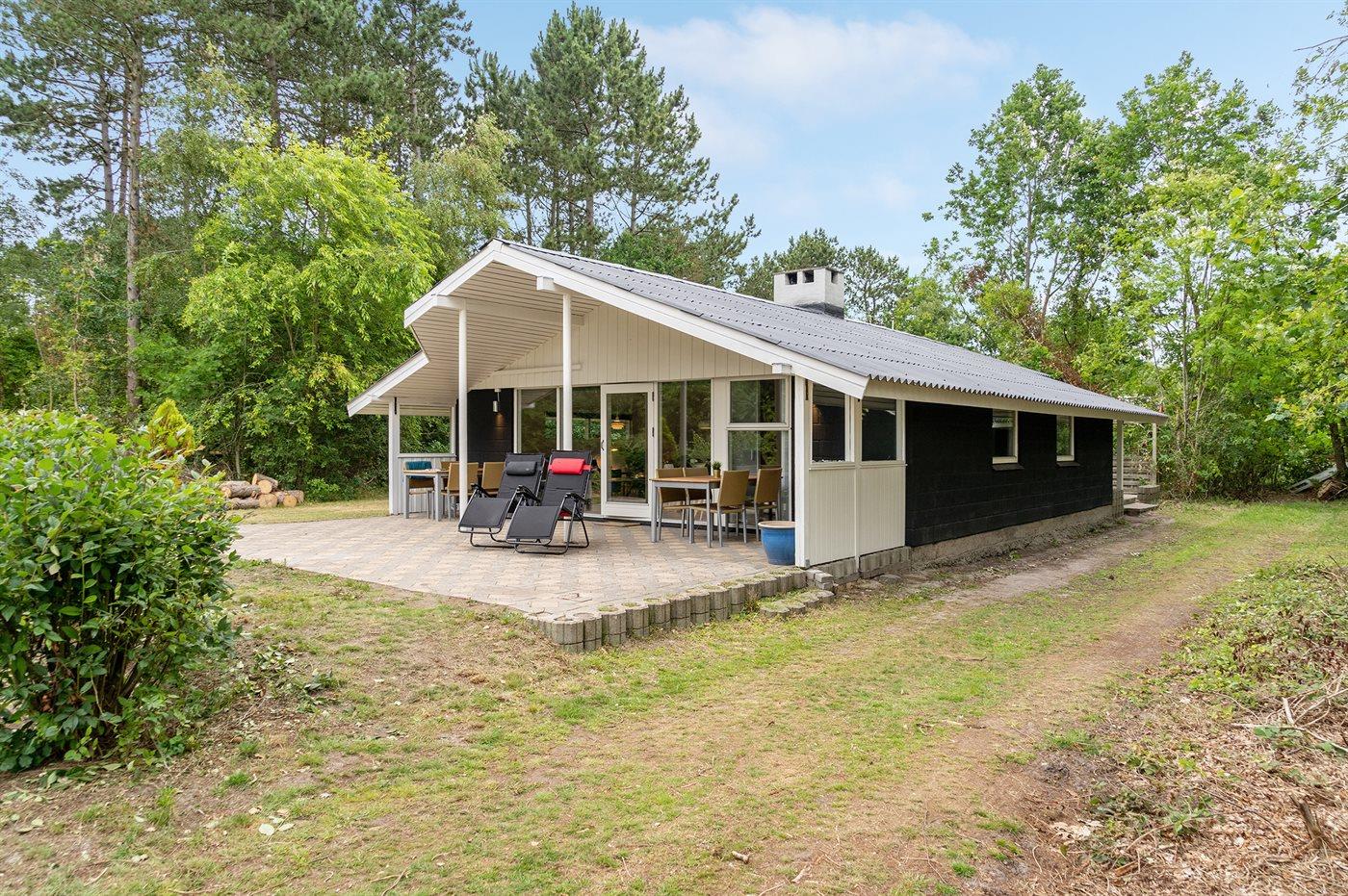 Skønt sommerhus i naturskønne omgivelser nær badestrand med store terrasser og plads til hele familien.
