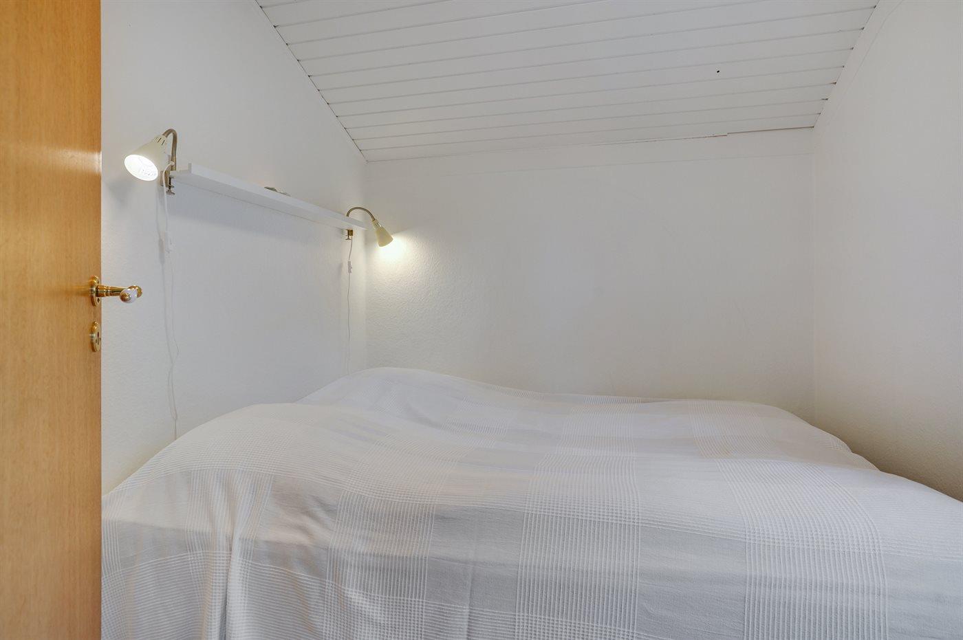Der er i alt 4 soveværelser. Sovepladserne fordeler sig på: 6 sovepladser i dobbeltsenge. 2 sovepladser i køjeseng. Derudover er der 1 stk. barneseng.