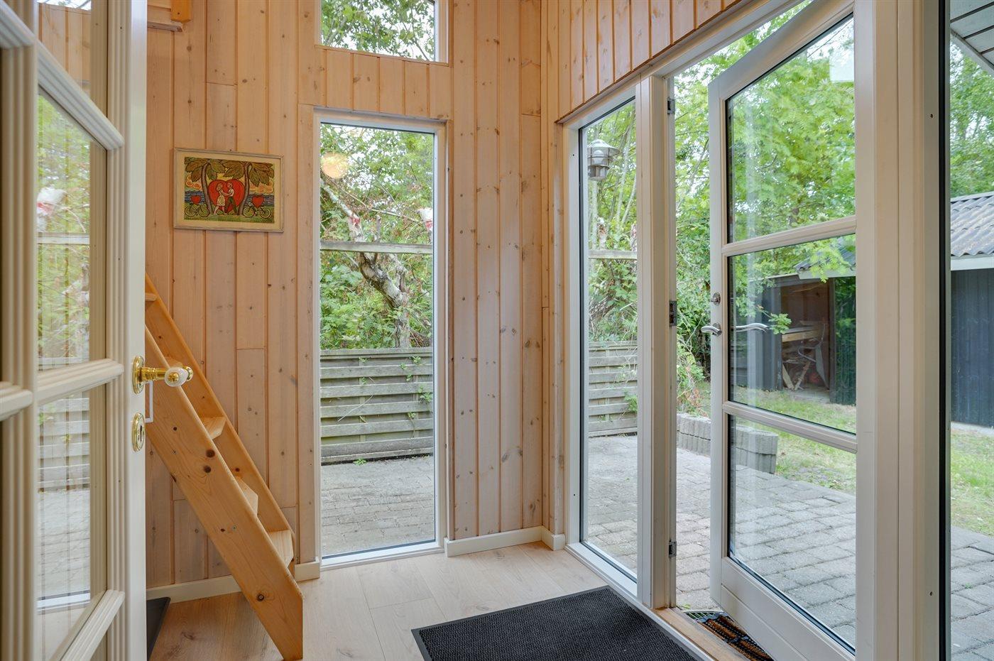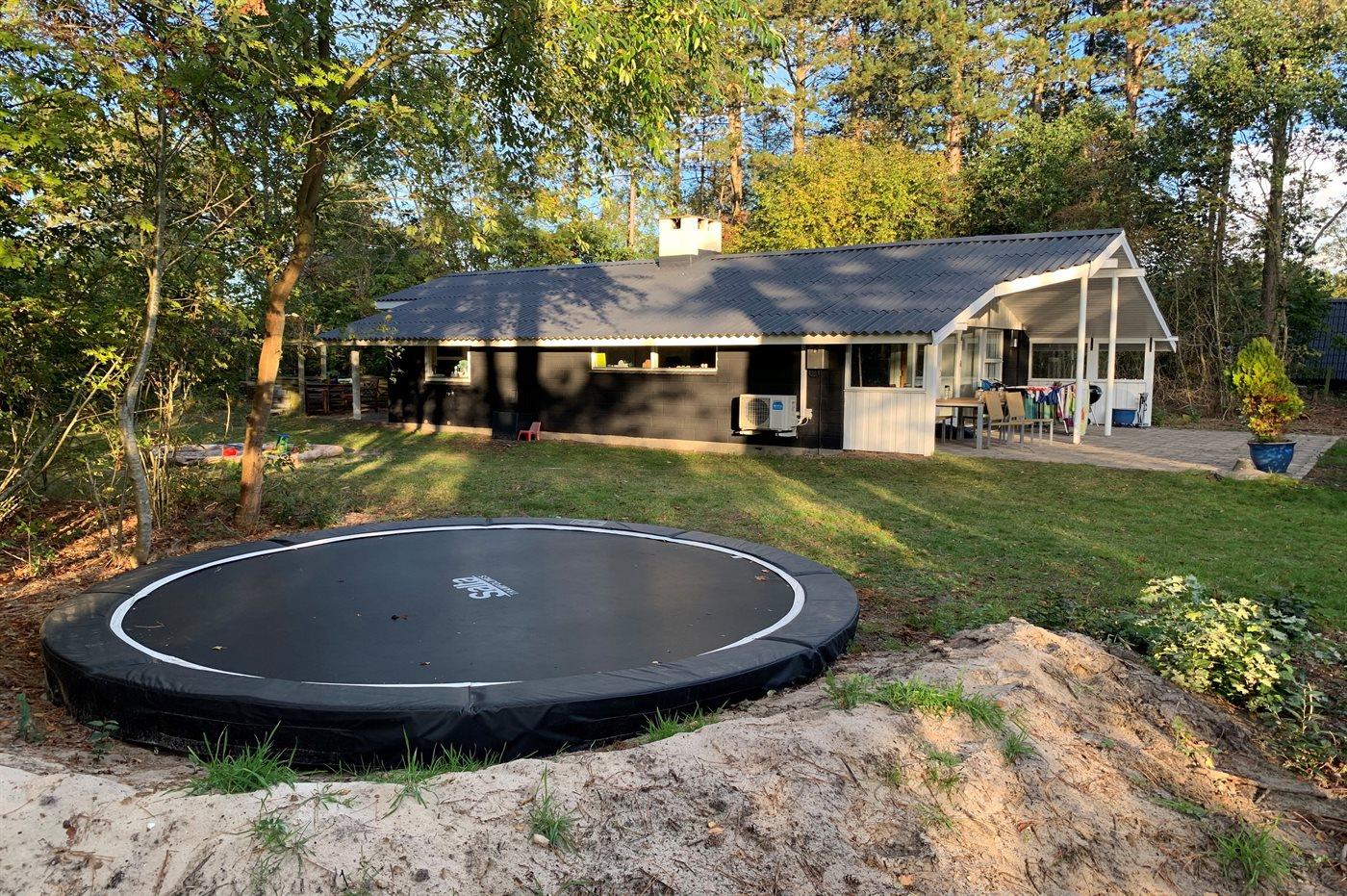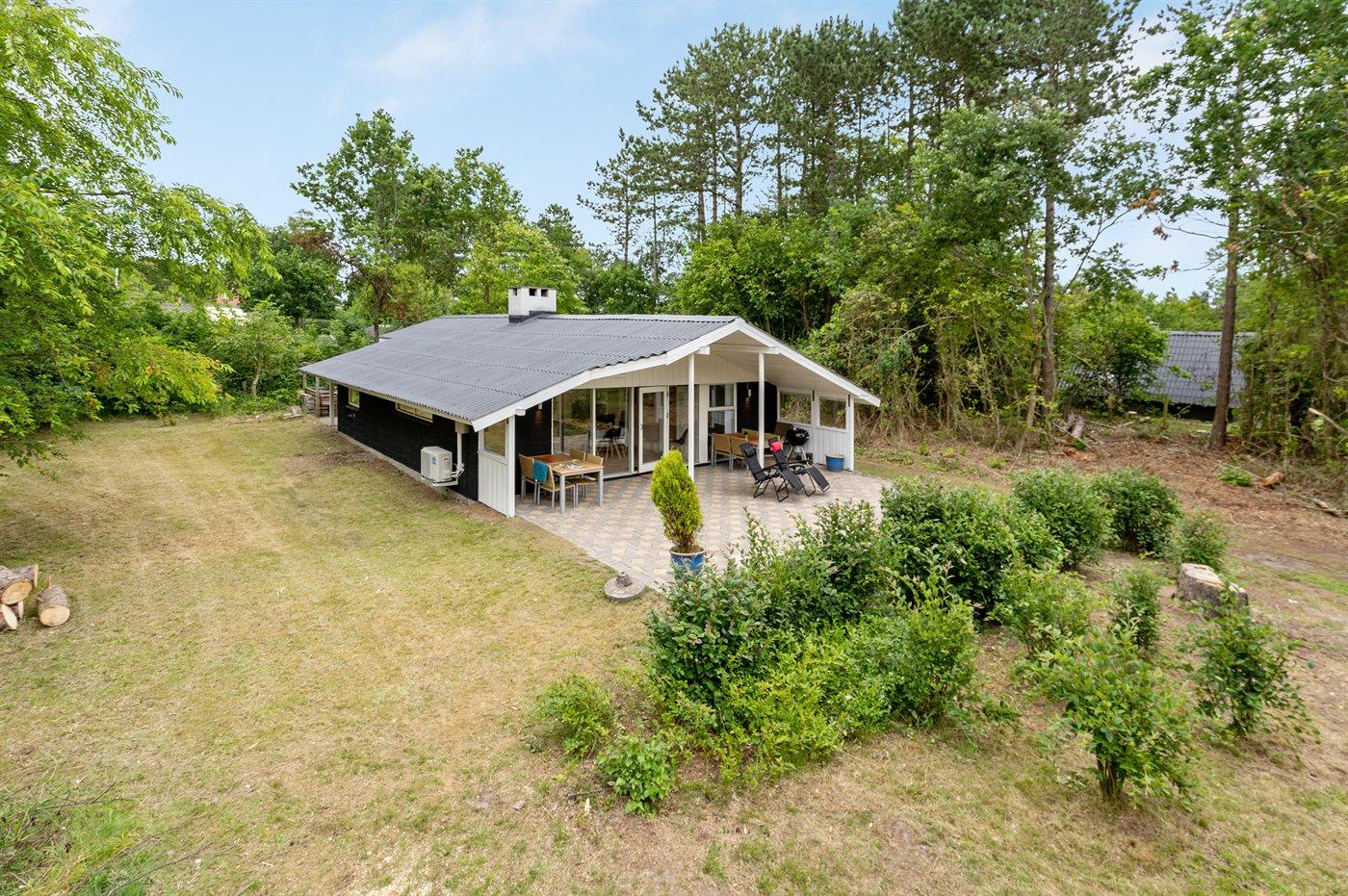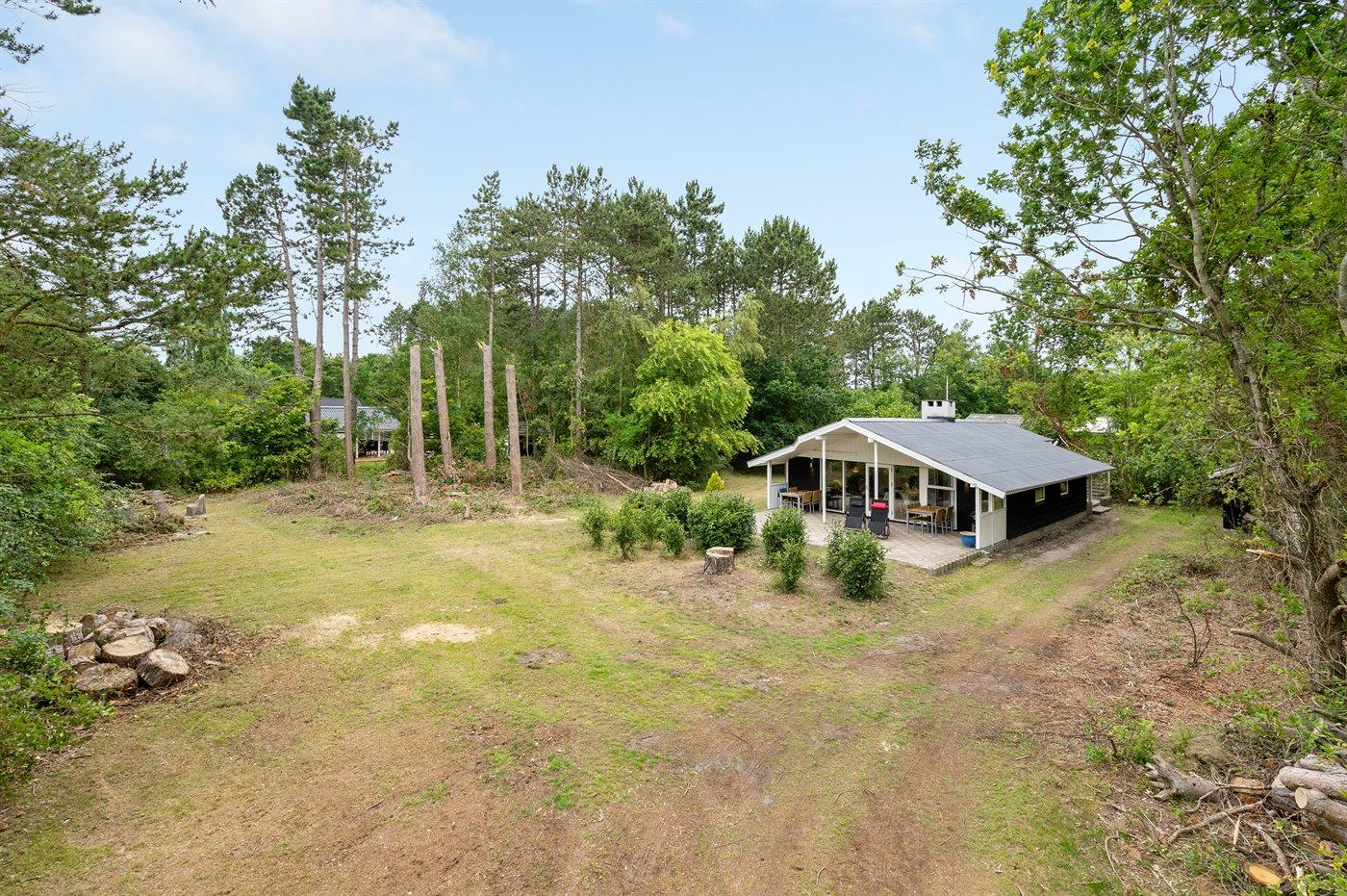 Ferieboligen er beliggende på en 2500 m² stor naturgrund. Der er 300 m til havet. Nærmeste forretning er beliggende i en afstand af 800 m. Til ferieboligen hører 30 m² terrasseareal. Desuden er der 30 m² overdækket terrasse. Sandkasse. Trampolin. Grill til rådighed. Parkering ved ferieboligen.