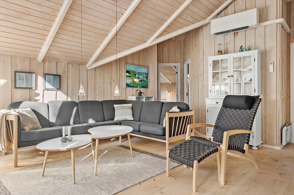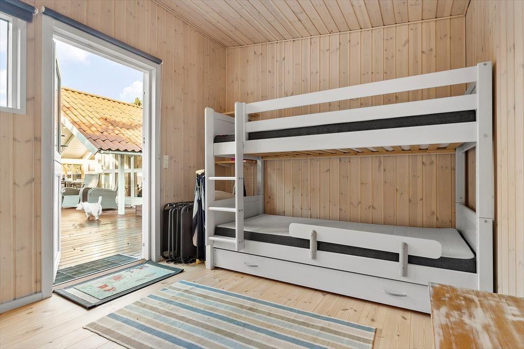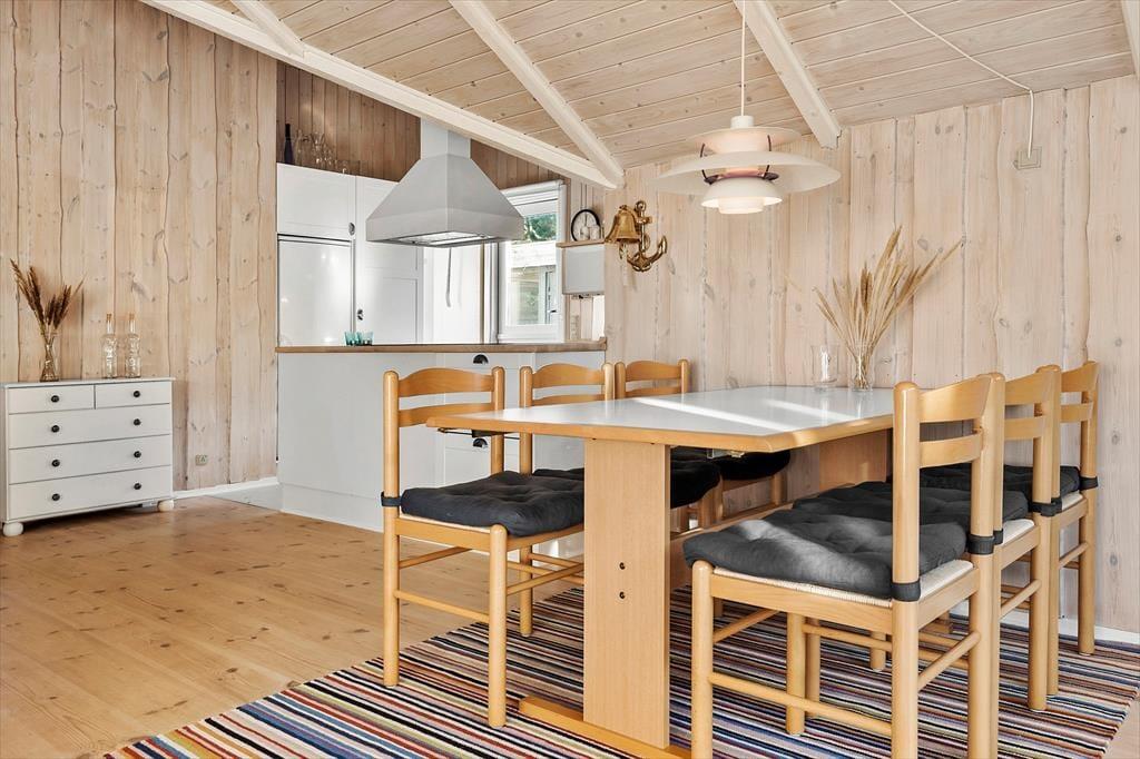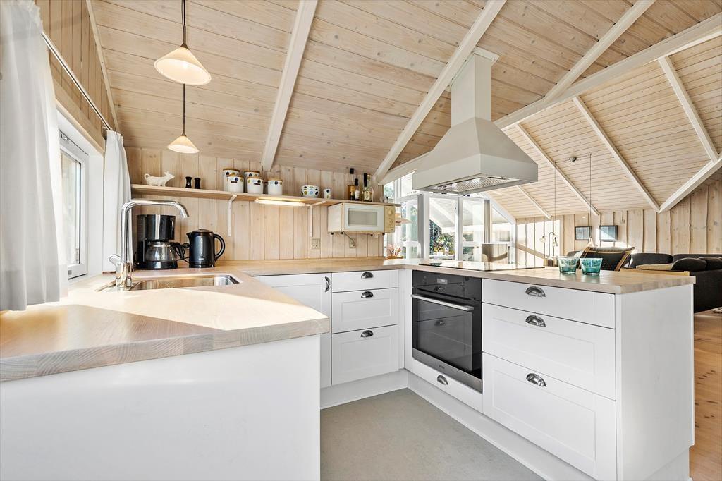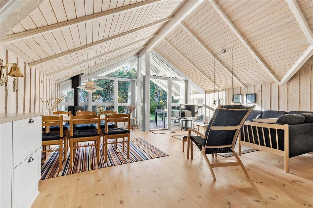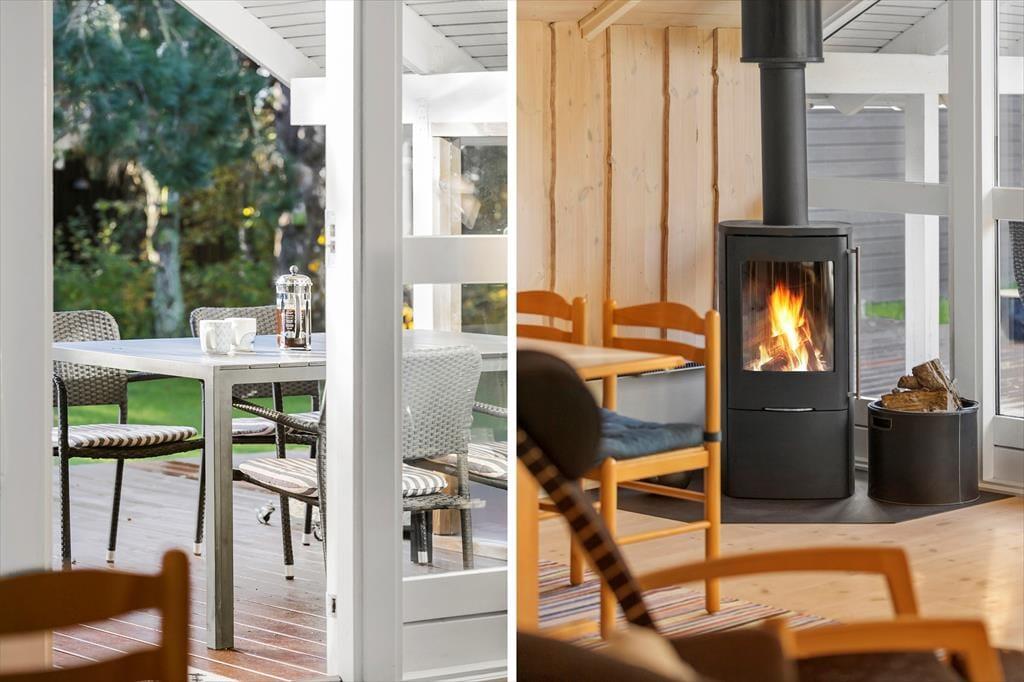Stue, køkken og spiseafdeling er ét lækkert rum, hvor brændeovnen knitrer i det ene hjørne. Køkkenet har gode faciliteter, så du kan tilberede lækre feriemåltider Stuen er indrettet med komfortable møbler, hvor du rigtig kan slappe af og nyde samværet med familien. Fra stuen er der udgang til herlig terrasse, hvor blandt andet udespaen kan nydes. Badeværelset er lyst og lækkert og har dejlig spa og adgang til sauna. 3 gode soveværelser – To med dobbeltsenge og ét med 2 enkeltsenge. Herudover stort anneks med både dobbeltseng og køjeseng.