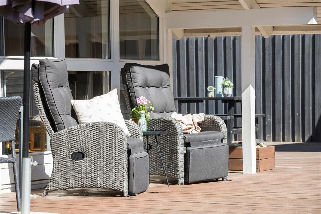 En rigtig dejlig grund med masser af græsplæne, bålplads og en skøn terrasse med dejlige havemøbler, grill og ude spa ikke af forglemme. Her er masser af dejlige steder, hvor du kan sidde og nyde ferien.
