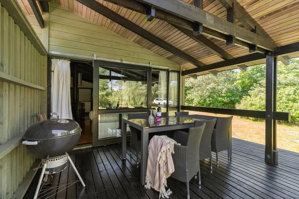Naturen og havet er nærmest er dine nærmeste naboer. Her er du i første række til stranden, som blot ligger 400 meter væk, lige på den anden side af strandengen foran huset. Stranden har det eftertragtede Blå Flag, der lover klart vand og gode badeoplevelser for både store og små. Grunden er næsten 3000 kvadratmeter, så her er masser af plads til at boltrer sig på og du finder nemt din yndlingsplet. Omkring huset er der meget terrasse og masser af sol- og læ kroge, hvor du både kan nyde morgenkaffen og et glas lækker vin og grill til solnedgangen.