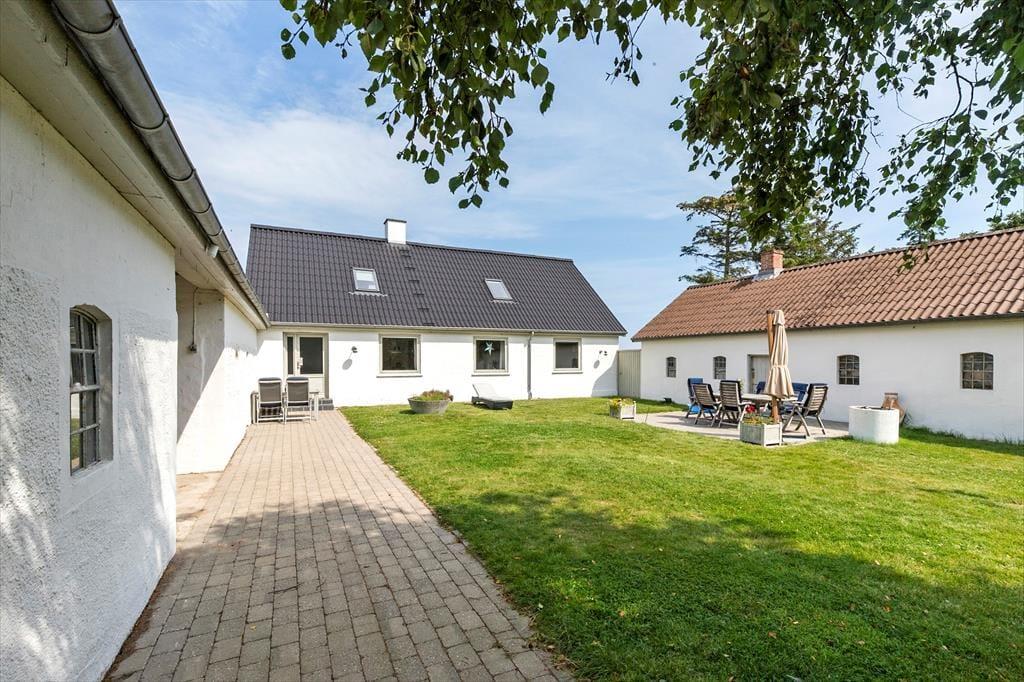 Grunden omkring huset er skabt til udeliv. Den store, velplejede græsplæne giver plads til leg, boldspil og frihed, mens en lille terrasse ved gårdspladsen lokker med læ og en stille stund med en god bog. De smukke, gamle staldvinduer på udlængerne skaber en helt særlig stemning, og imens sørger robotplæneklipperen for, at haven altid står flot, så du bare kan nyde livet.