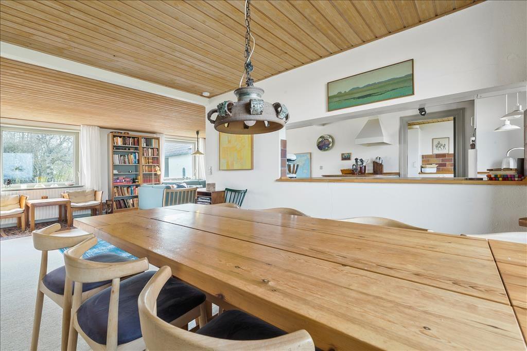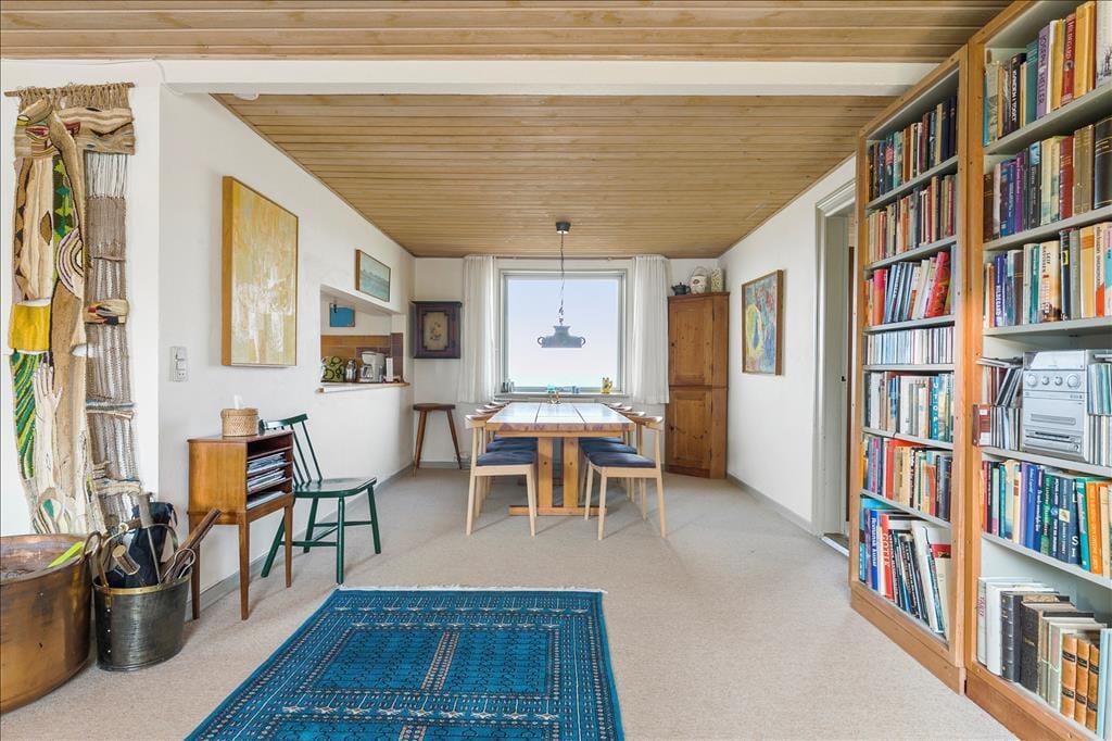 Det charmerende hus i to plan emmer af historie og hygge. I stueetagen bliver du mødt af en stemningsfuld opholdsstue, hvor brændeovnen knitrer og spreder varme på kølige dage. Ved spisebordet kan du nyde måltiderne med en betagende udsigt over Kattegats skiftende farver. Køkkenet er både hyggeligt og funktionelt med alt det, du behøver for at tilberede dagens fangst eller en god middag.