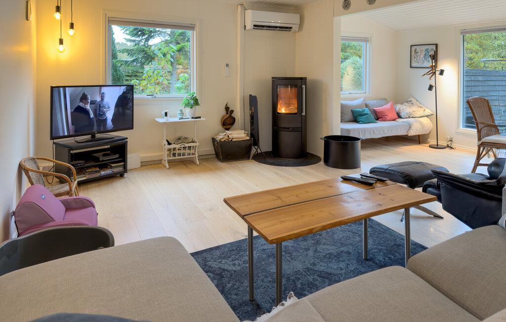 Dette hus byder jer velkommen med en lys og indbydende atmosfære. Store vinduer lukker masser af varmt naturligt lys ind og tilbyder en dejlig udsigt. Uanset om I snakker, læser eller lytter til musik, kan I hurtigt slappe af og lade op her.