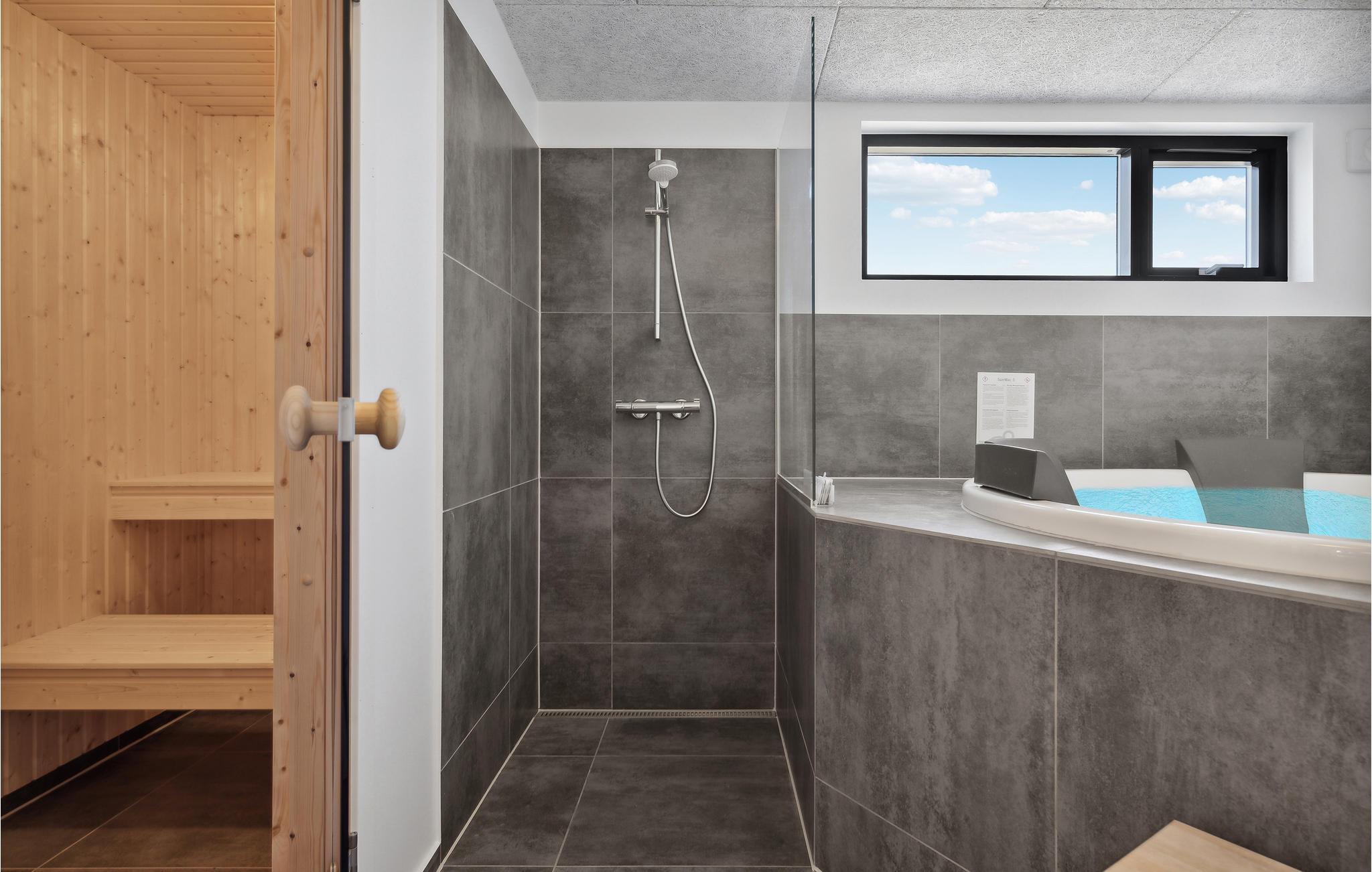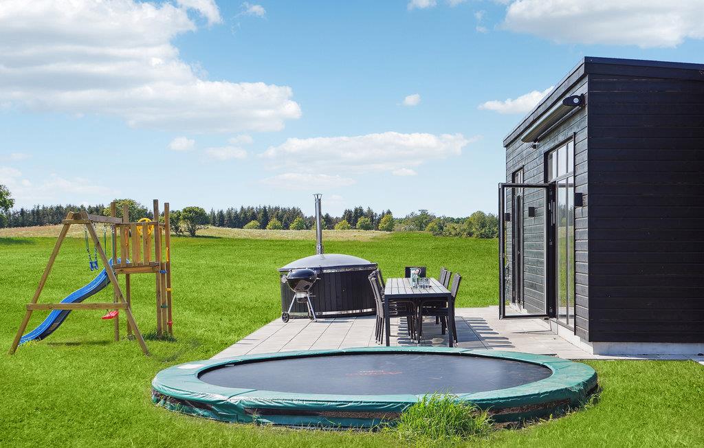 Lyst sommerhus i Gjerrild Nordstrand med wellness, aktivitetsrum og stor terrasse tæt på vandet.