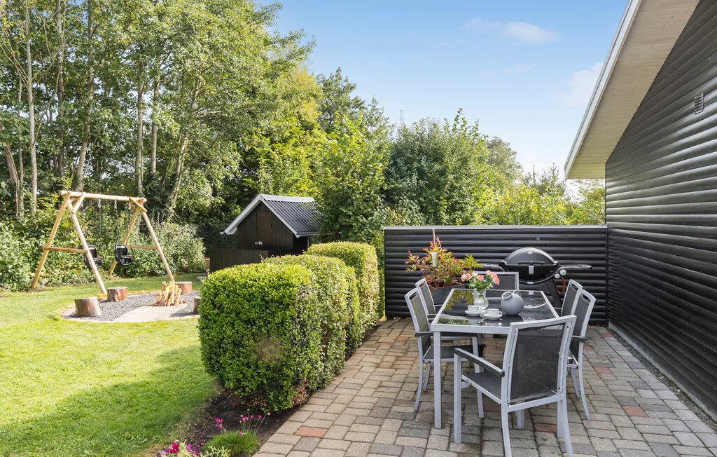 Hyggeligt feriehus tæt på Gl. Løgten Strand med moderne faciliteter og dejlig terrasse i læ.