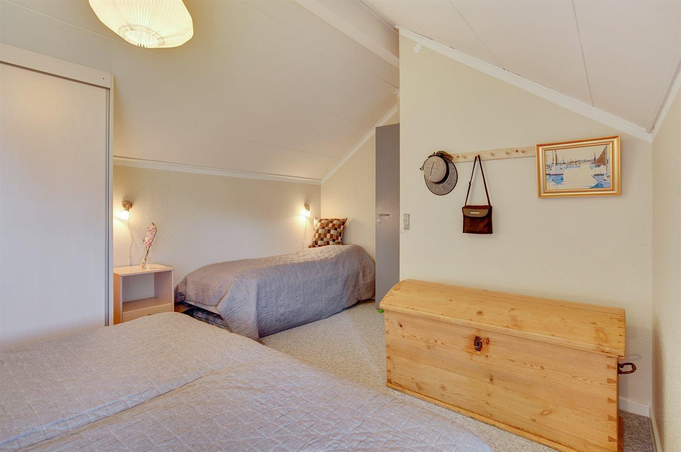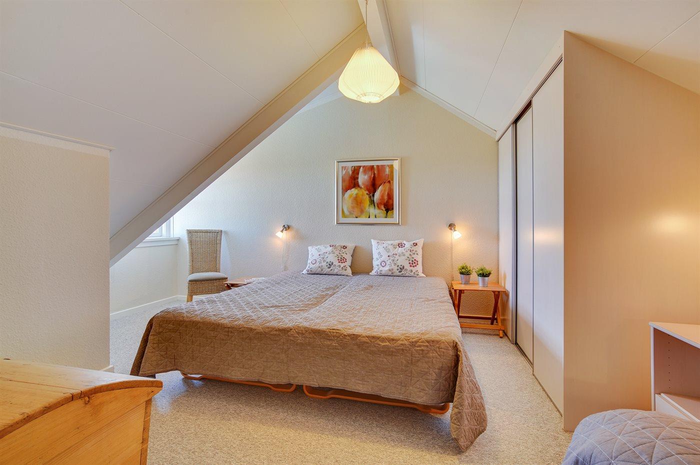 Der er i alt 1 soveværelse. Sovepladserne fordeler sig på: 2 sovepladser i dobbeltseng. 1 soveplads i enkeltseng.
