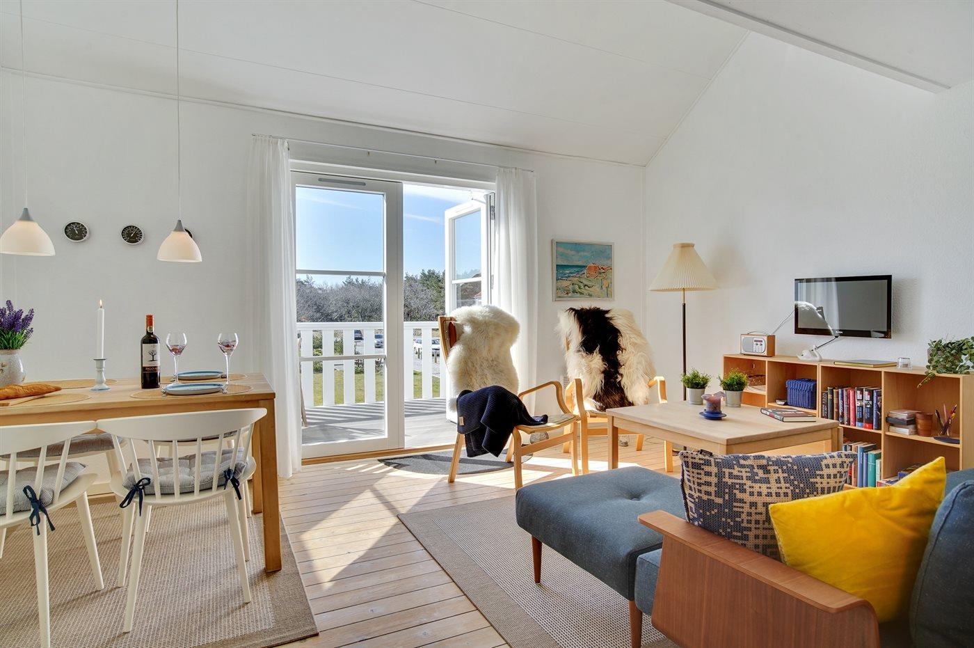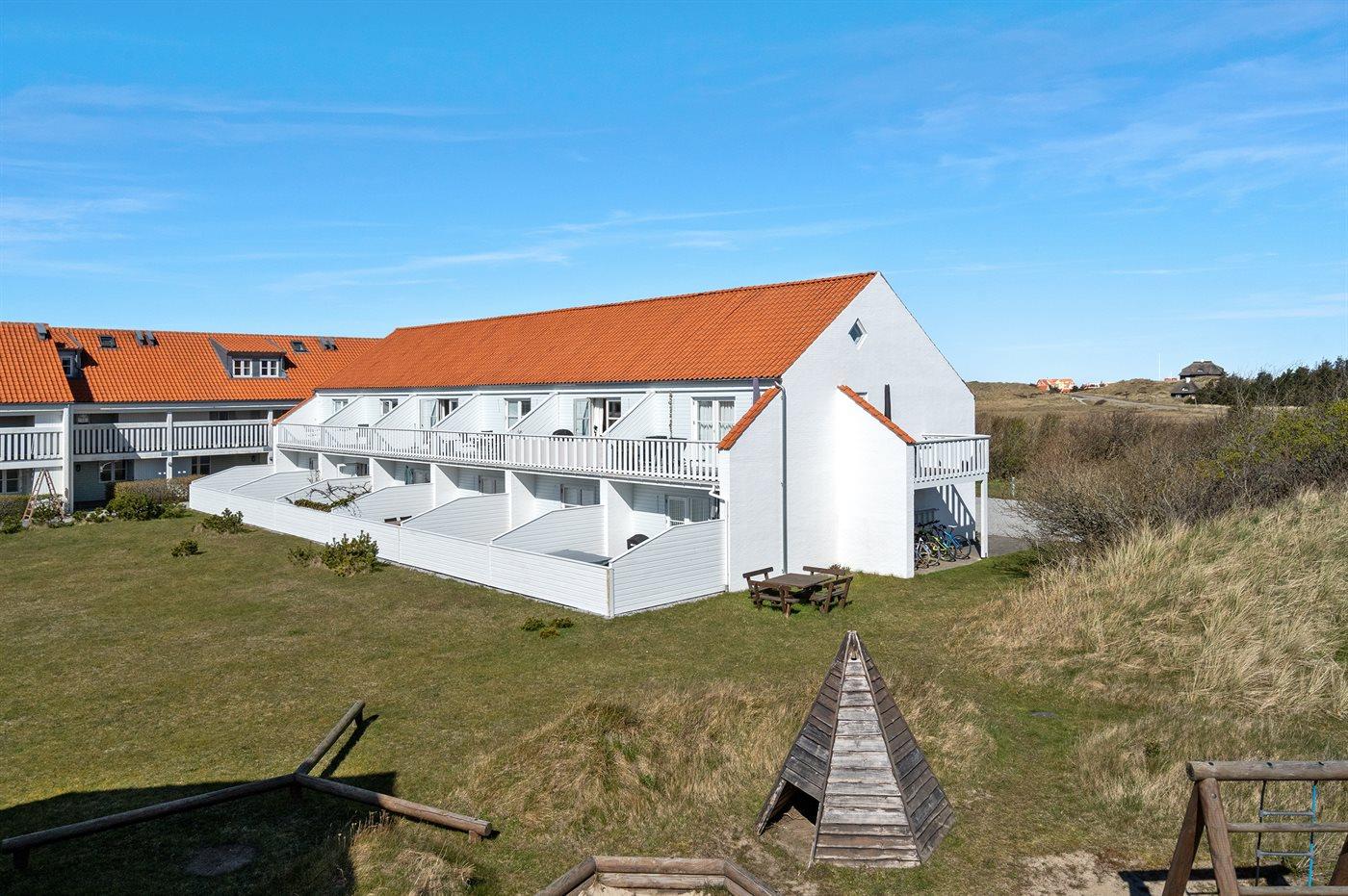 Ferielejlighed i 2 plan beliggende i et smukt og uspoleret naturområde i gåafstand fra Gl. Skagen, strand og skov. Der er fælles legeplads, fodbold- og petanguebane.