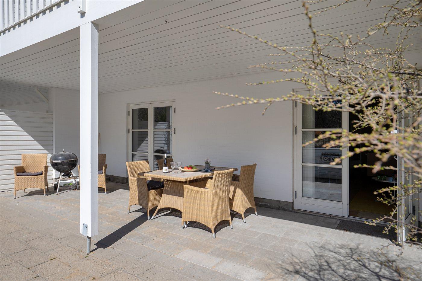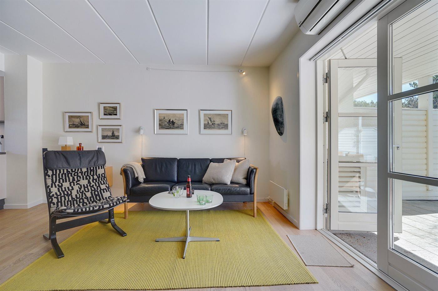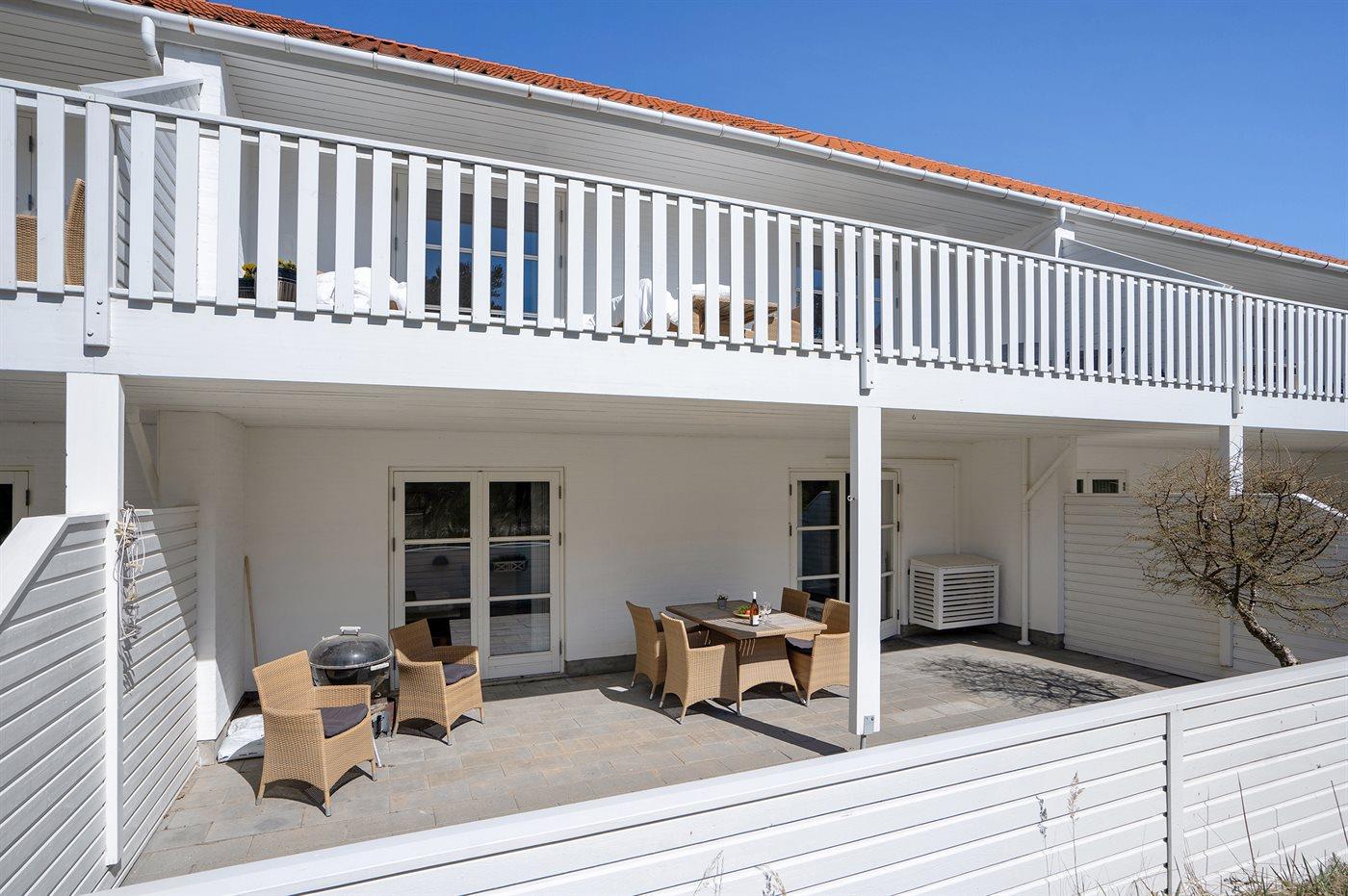 Denne skønne kvalitetslejlighed ligger på en klitgrund i et fredeligt naturskønt område, som inviterer til lange gå- og cykelture. Huset ligger nær vandet og tæt på det idylliske Gl. Skagen. Til lejligheden hører en stor indhegnet delvis overdækket terrasse med havemøbler. I området findes der desuden legeplads, fodbold- og petanquebane.
