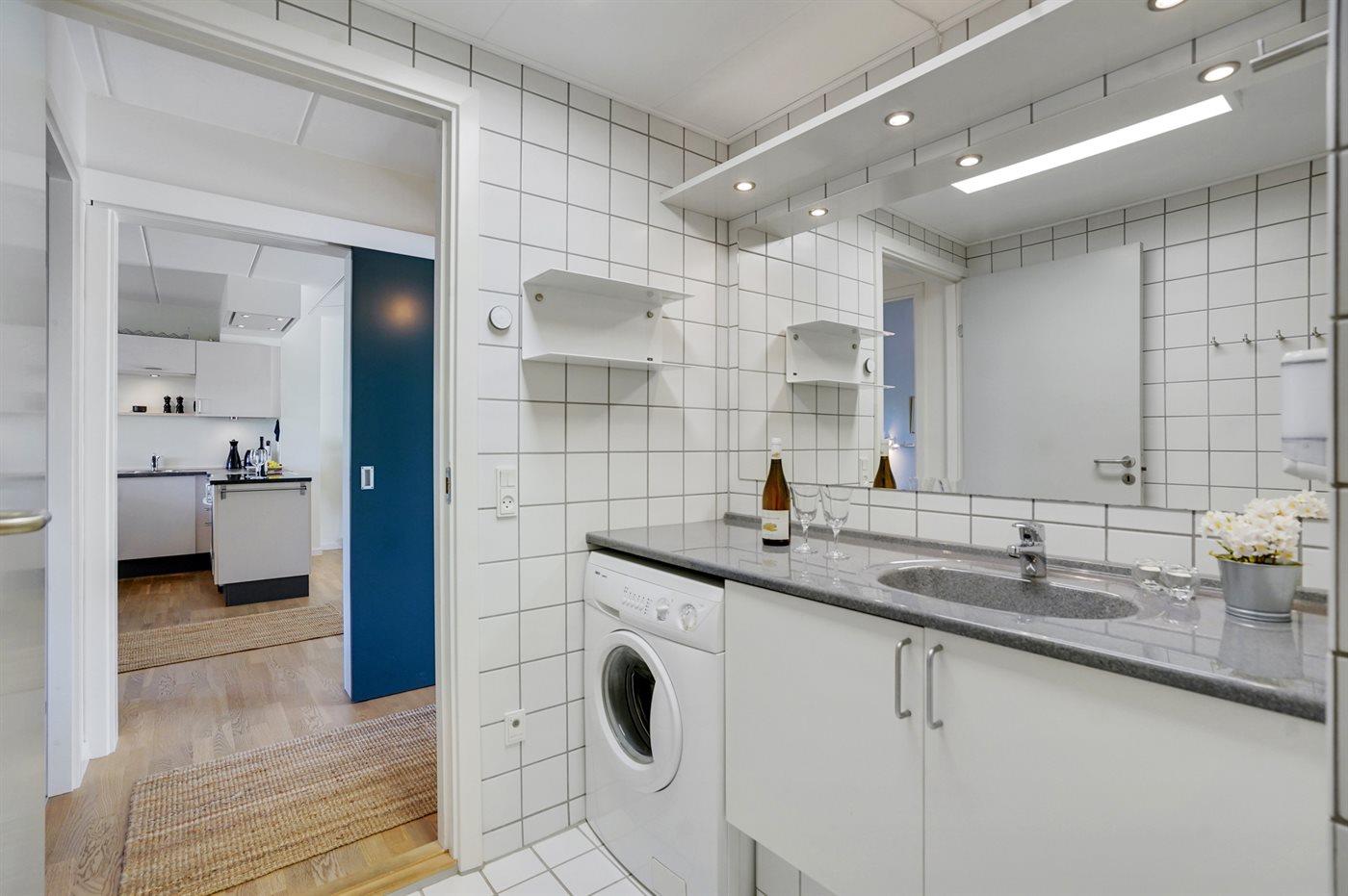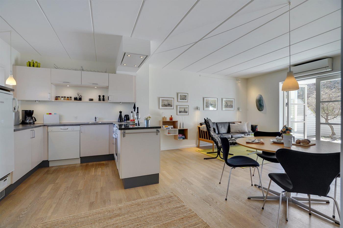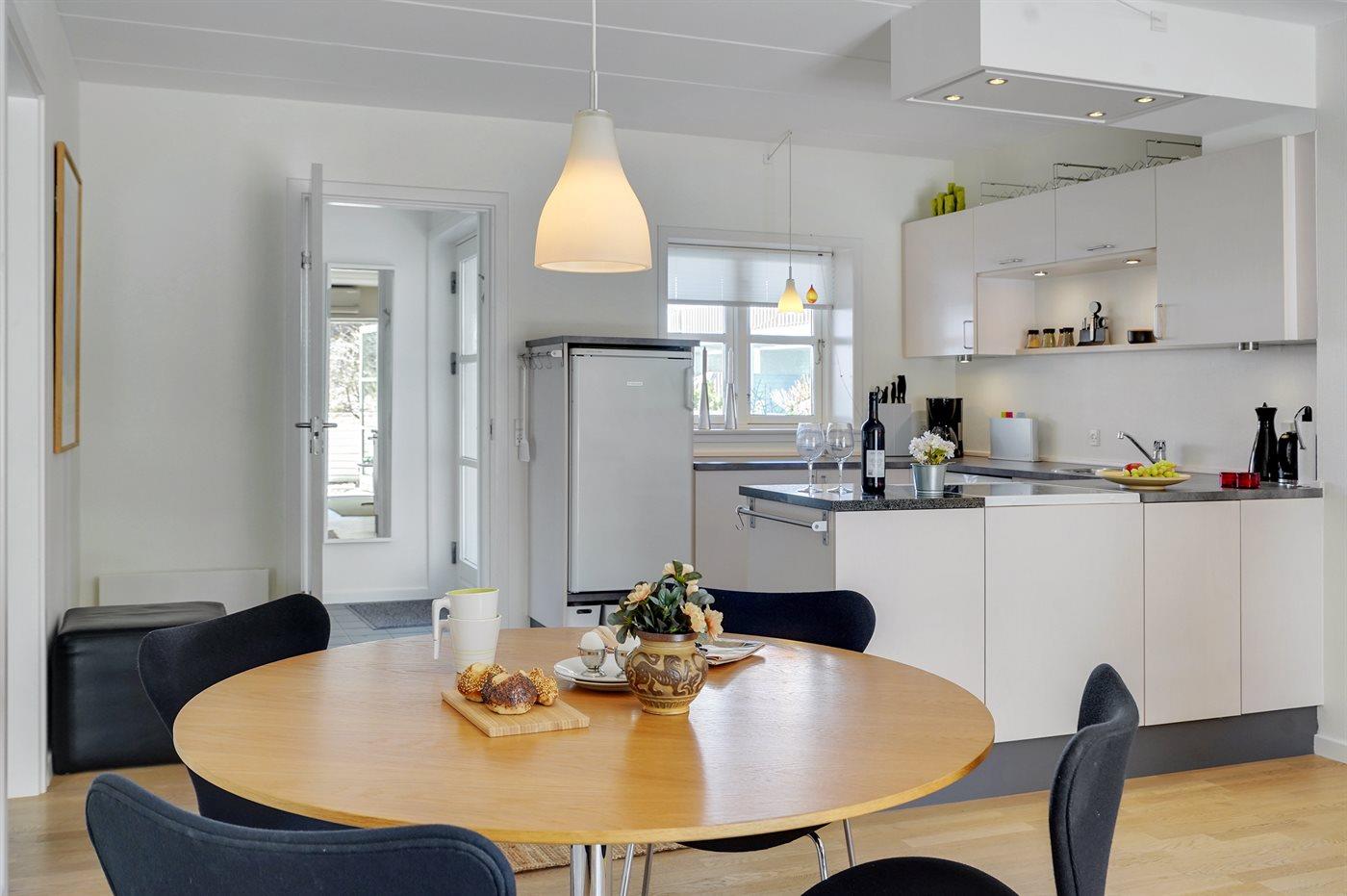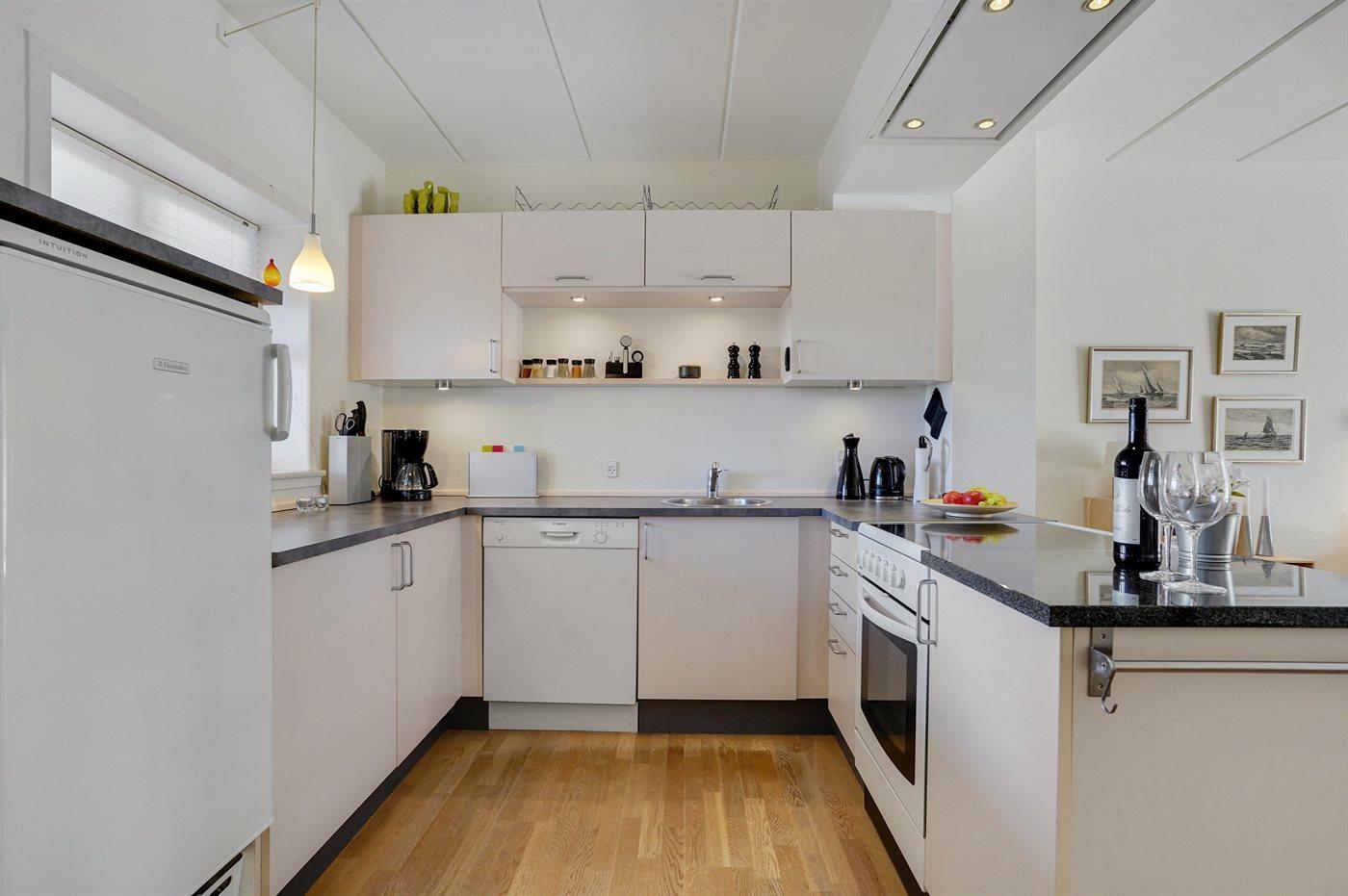 Køkkenet er udstyret med 1 køleskab. Der er 4 keramiske kogeplader, varmluftovn samt opvaskemaskine.