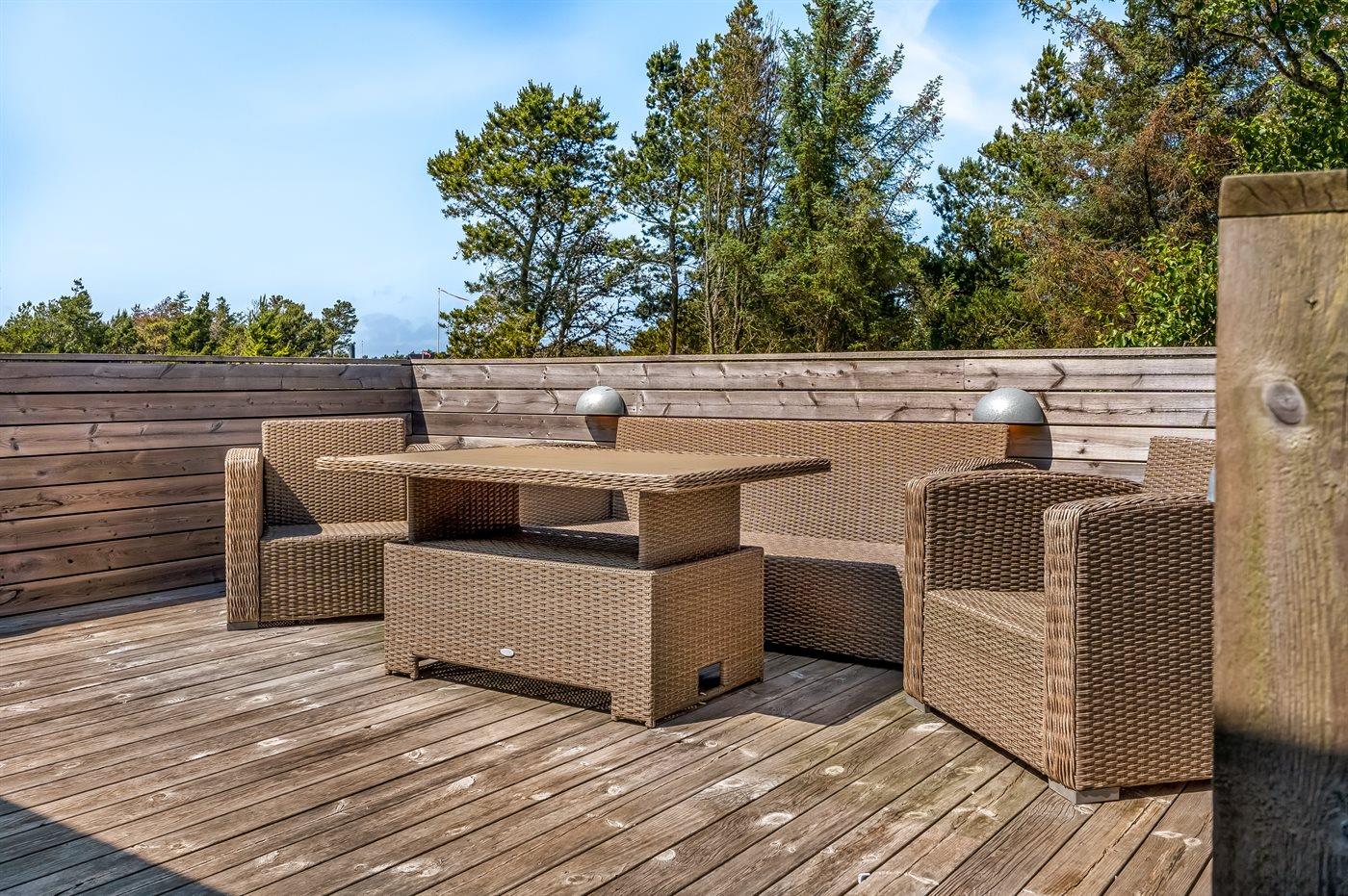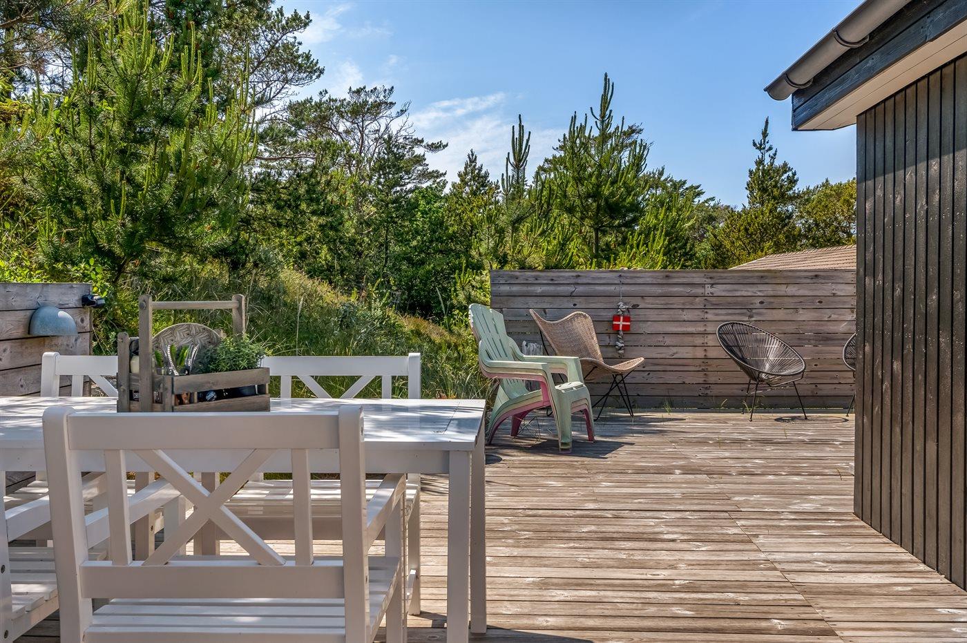 Ferieboligen er beliggende på en 3552 m² stor klitgrund. Der er 800 m til havet. Nærmeste forretning er beliggende i en afstand af 500 m. Til ferieboligen hører 45 m² terrasseareal. Der er redskabsrum. Der er installeret stik til opladning af elbil. Parkering ved ferieboligen.