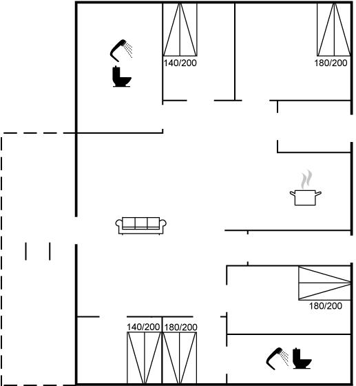 Der er i alt 5 soveværelser. Sovepladserne fordeler sig på: 10 sovepladser i dobbeltsenge. Derudover er der 1 stk. barneseng.