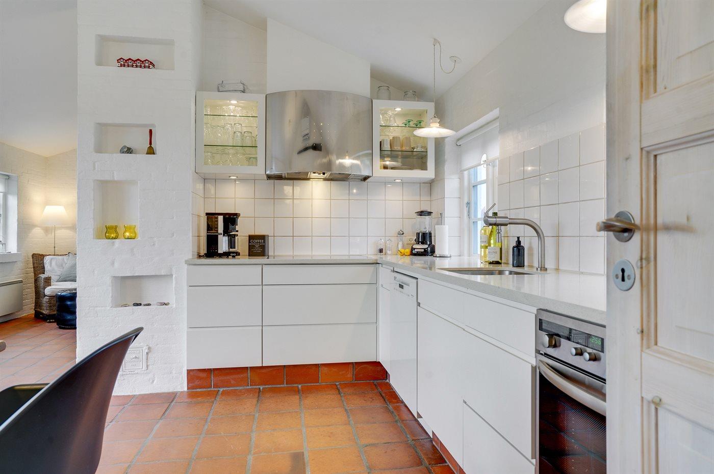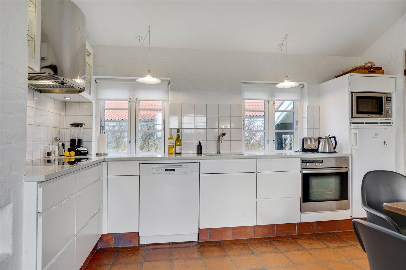 Køkkenet er udstyret med 1 køleskab. Der er 4 keramiske kogeplader, varmluftovn, mikrobølgeovn samt opvaskemaskine.