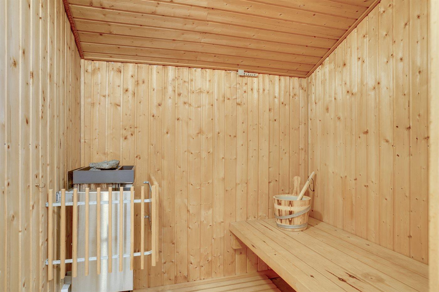 Der er 1 badeværelse med bruseniche og 1 toilet.. Der er gulvvarme på 1 badeværelse. I saunaen er der mulighed for afslapning.