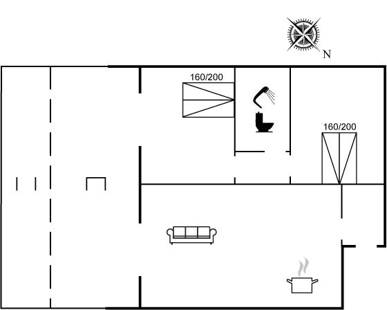 Der er i alt 2 soveværelser. Sovepladserne fordeler sig på: 4 sovepladser i dobbeltsenge. Derudover er der 1 stk. barneseng.