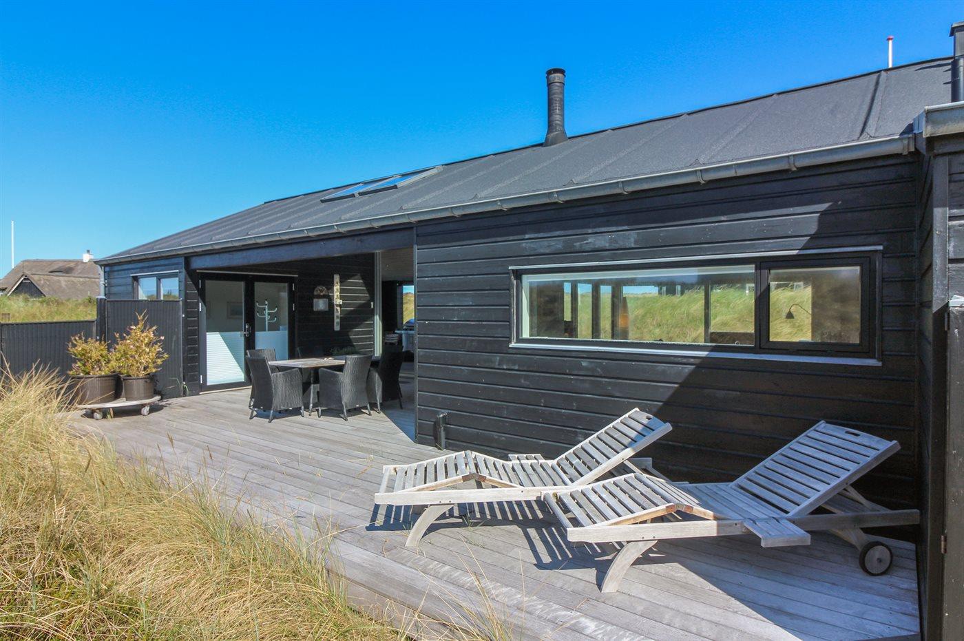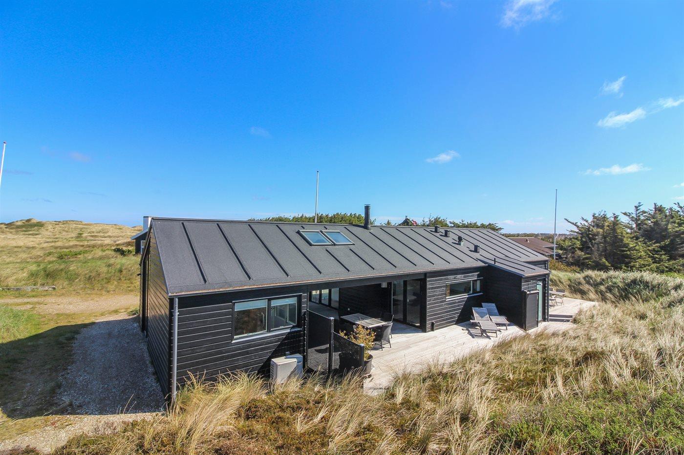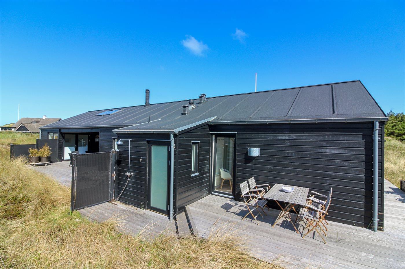 Ferieboligen er beliggende på en 1200 m² stor naturgrund. Der er 150 m til havet. Nærmeste forretning er beliggende i en afstand af 700 m. Til ferieboligen hører åbent terrasseareal. Desuden er der overdækket terrasse. Udendørs bruser. Grill til rådighed. Der er installeret stik til opladning af elbil (ladekabel forefindes). Parkering ved ferieboligen.