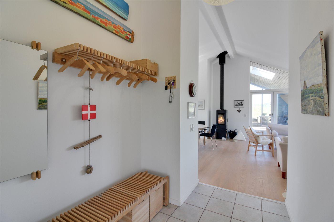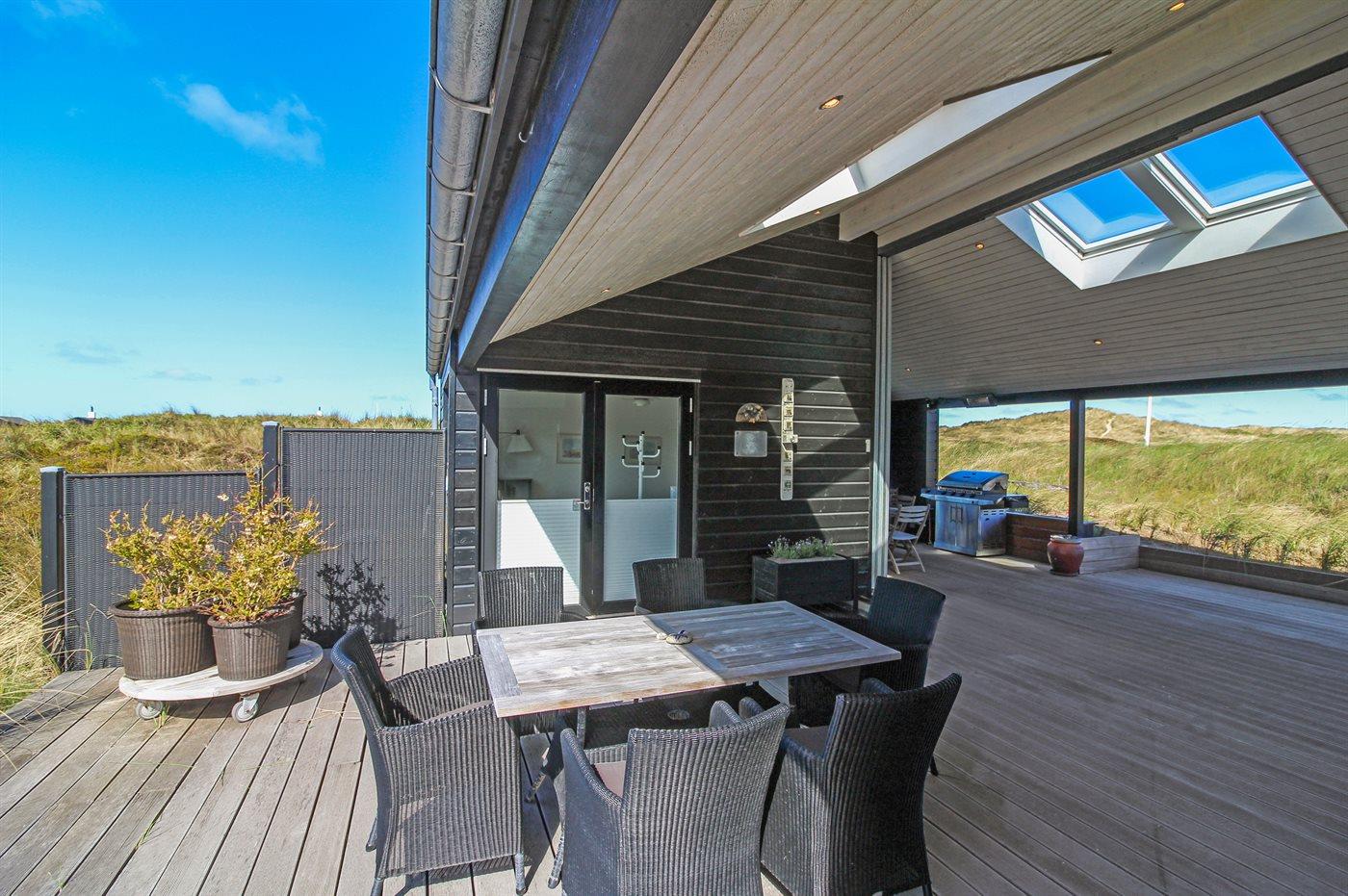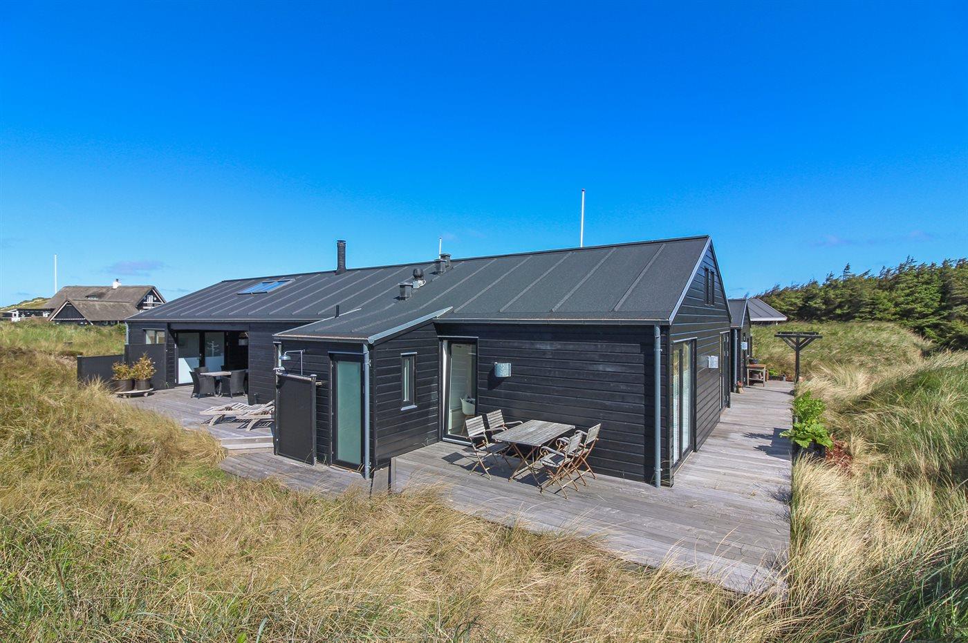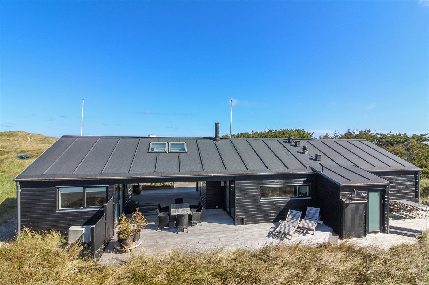 Ferieboligen er beliggende på en 1200 m² stor naturgrund. Der er 150 m til havet. Nærmeste forretning er beliggende i en afstand af 700 m. Til ferieboligen hører åbent terrasseareal. Desuden er der overdækket terrasse. Udendørs bruser. Grill til rådighed. Der er installeret stik til opladning af elbil (ladekabel forefindes). Parkering ved ferieboligen.