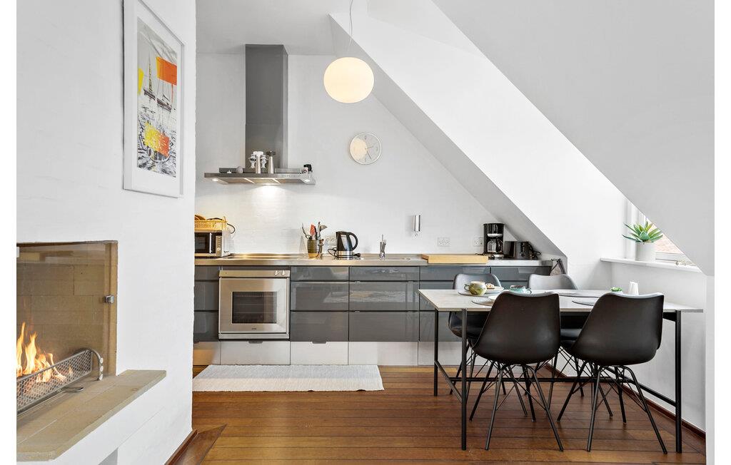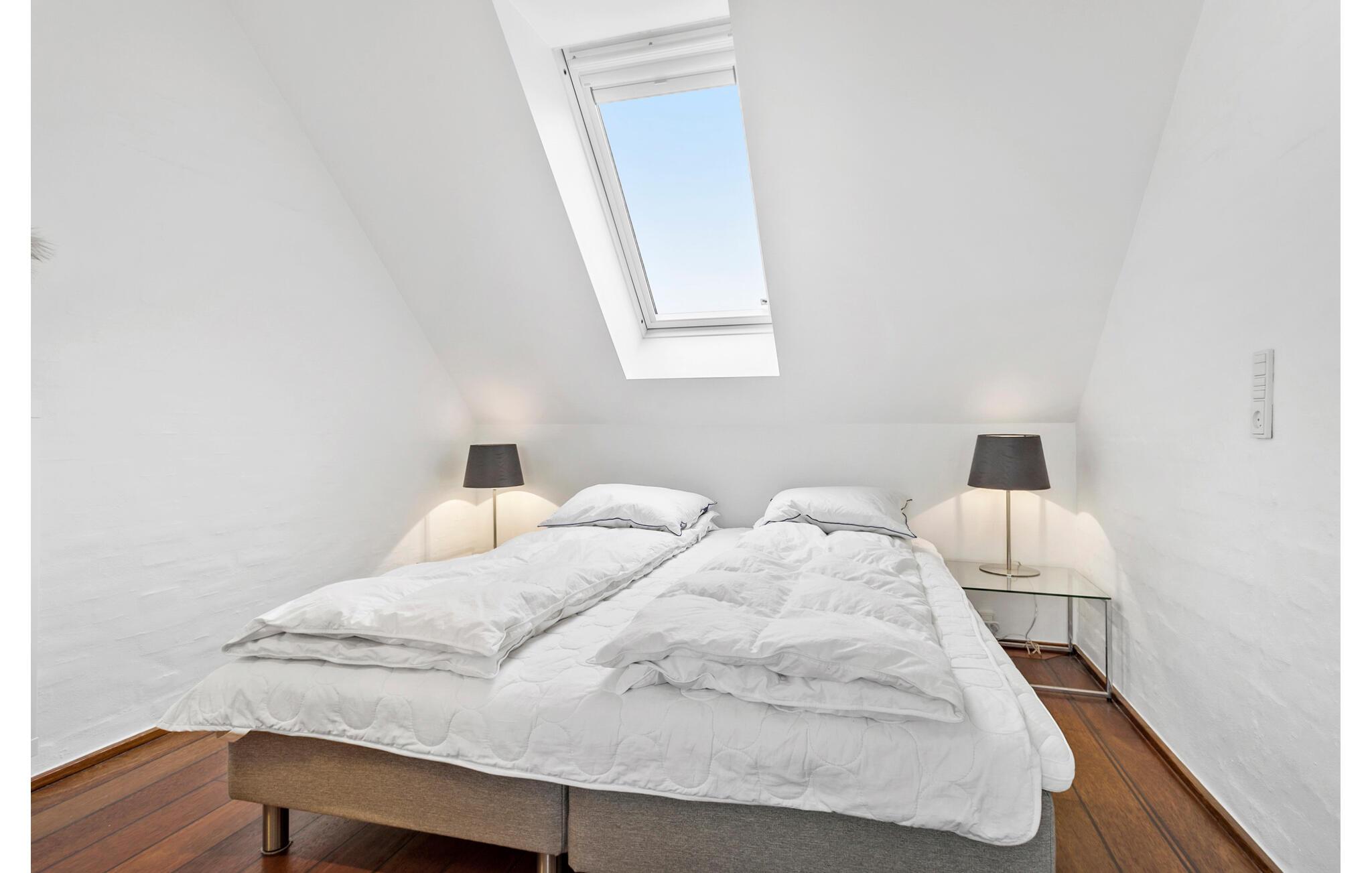 Indretningen fremtræder lyst og lækkert med gode møbler og faciliteter, der giver jer alt, I behøver for at komme ned i tempo. Tag jer god tid til madlavningen i køkkenet med et glas vin, inden I finder jer godt til rette i sofaen med hver jeres bog eller en god film. For en ekstra hyggelig stemning kan I tænde op i brændeovnen og nyde dens varme og knitren, mens I lægger planer for de kommende dage. Soveafdelingen er forbundet med stuen.