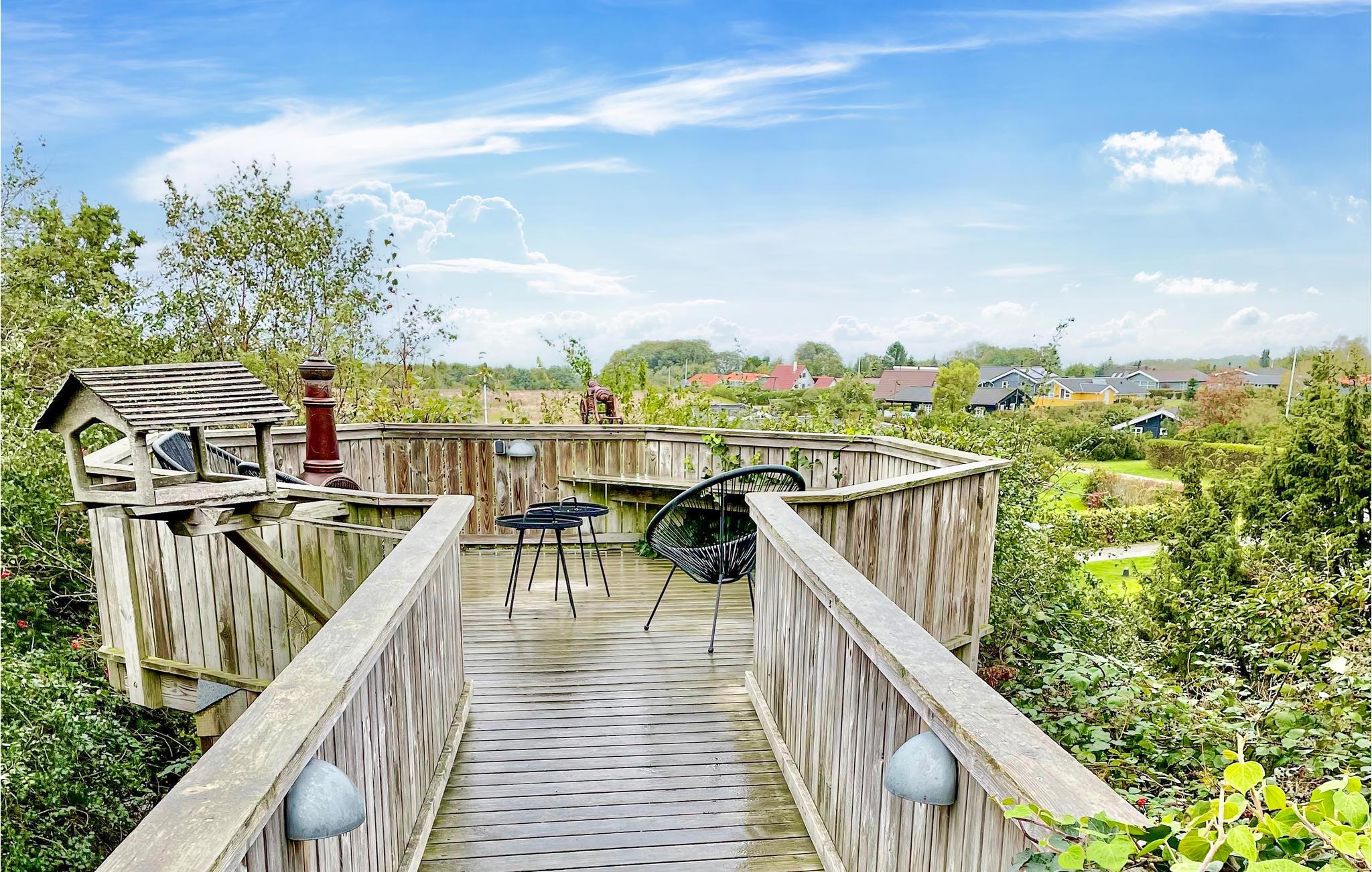 Hyggeligt bjælkehus med panoramaudsigt, aktivitetsrum og strand i gåafstand ved Glesborg.