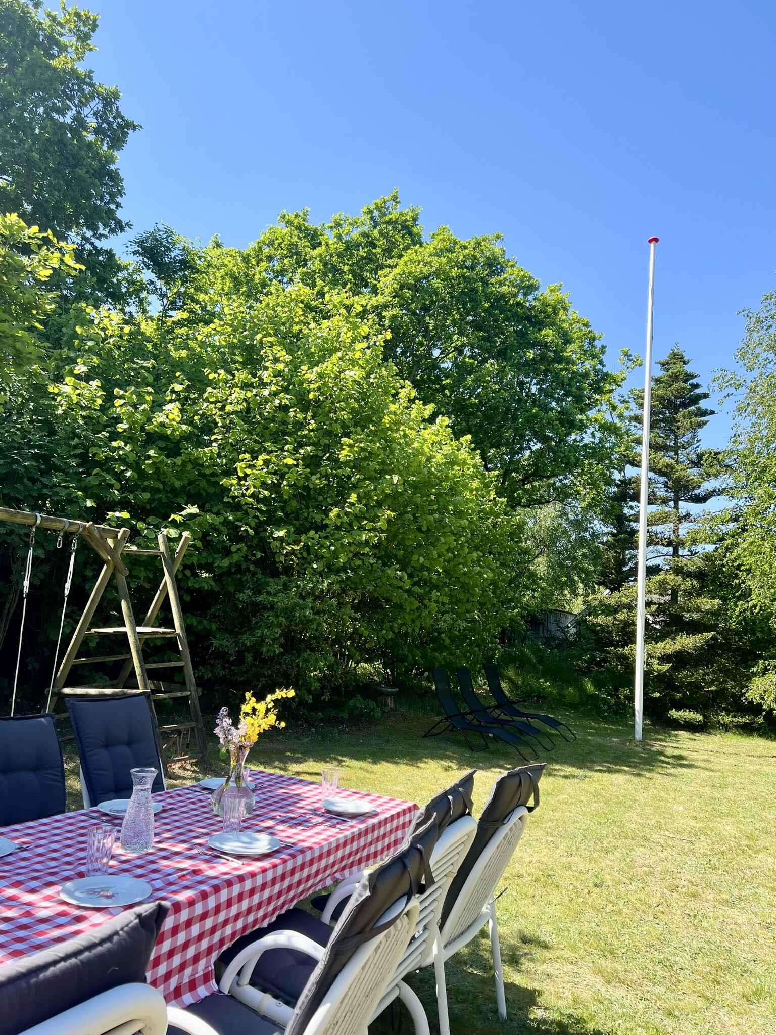 Skønt sommerhus beliggende for enden af en blind vej med kun 200 m. til børnevenlig strand. Privat grund omkranset af høje træer og buske. Faciliteter som brændeovn, A/C, nyt køkken, fjernsyn med AppleTV, internet, opvaskemaskine, vaskemaskine mm.