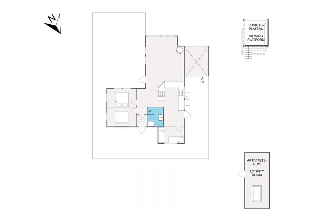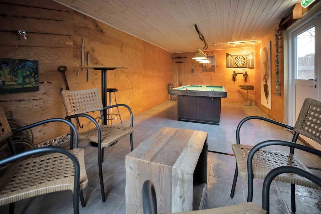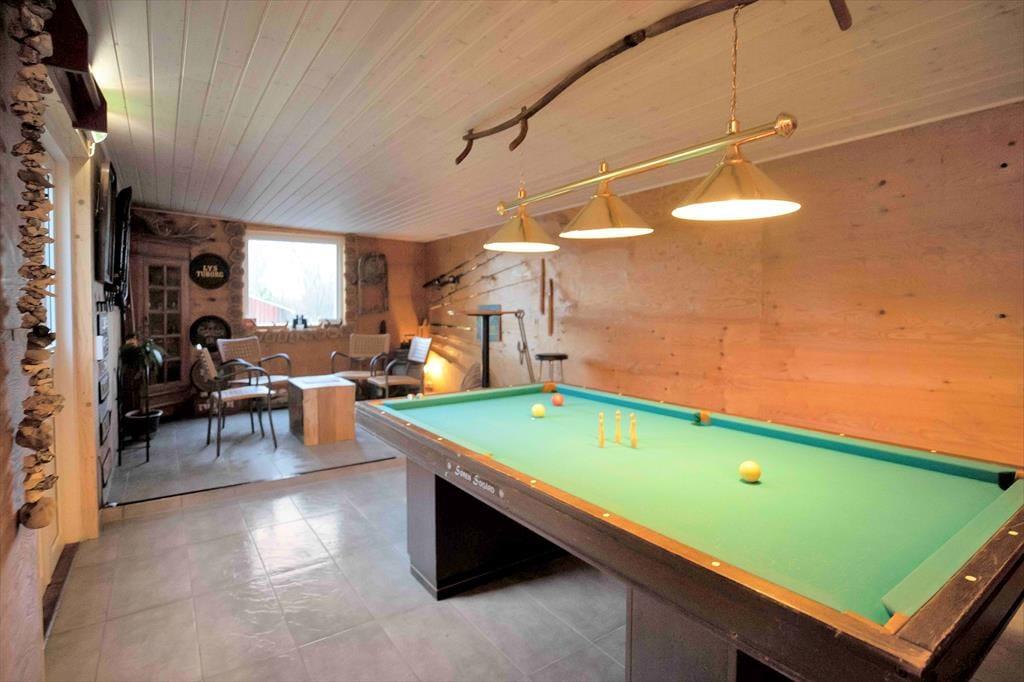 I stuen, er der mulighed for at hygge med en god kop kaffe eller nyde en dejlig frokost i den hyggelig spiseafdeling. Fra stuen er der adgang til husets fantastiske terrasse, hvor du både kan tage et svalende bad under den dejlige udebruser eller tilberede maden på det fine udekøkken, hvis du foretrækker bål mad er det også en mulighed. Du kan også bare vælge at nyde solen og den skønne udsigt mod havet. Er du god til at kokkerere, er der et særdeles lækkert åbent køkken til din disposition. Der tilhører tre skønne soveværelser og herudover er der et dejligt badeværelse med brus. Husk også et spil billard eller dart i aktivitetsrummet eller nyd stjernehimmelen fra den tilhørende shelter. Alt i huset fremstår særdeles indbydende, lyst og lækkert, det er nænsomt opført i de bedste materialer. Ungdomsgrupper er ikke velkomne.